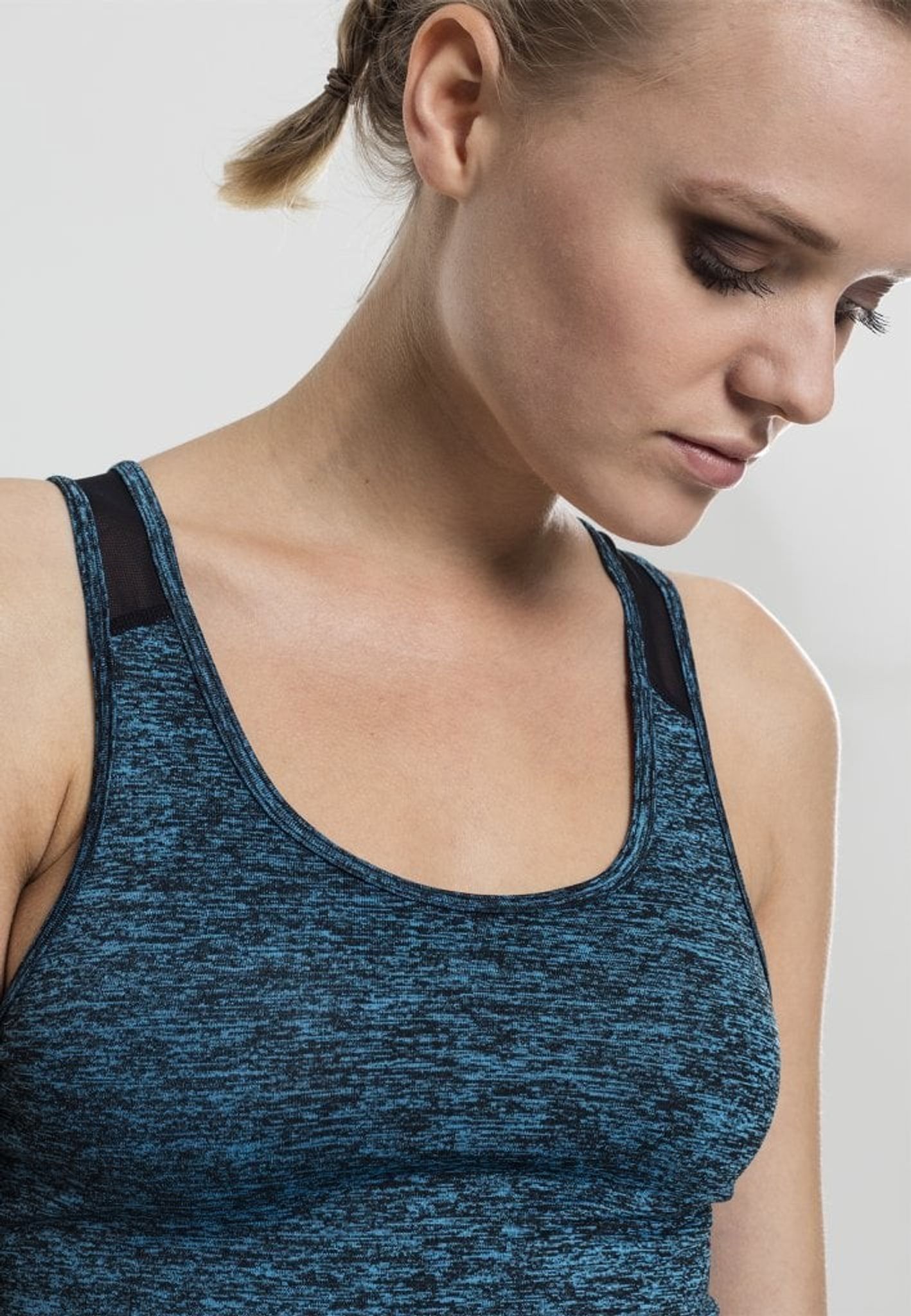 At the gym or on the street - with Ladies Active Melange Exercise top, you'll look great wherever you go. Netting on the back and side seams with slightly accentuated color. The fabric breathes, which makes the linen dry and comfortable. Elastic fabric.