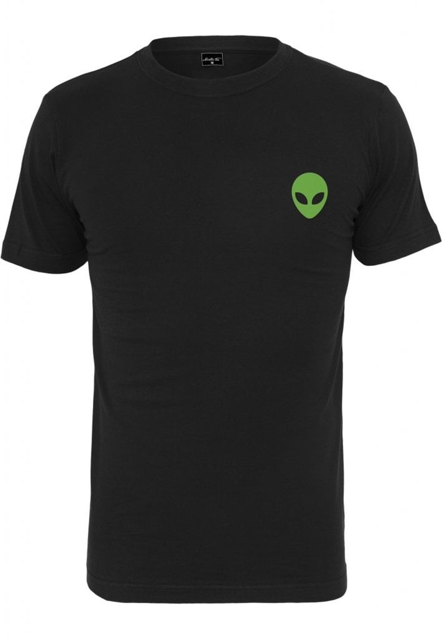 A black T-shirt in really nice quality and with a small green alien head printed on the chest.