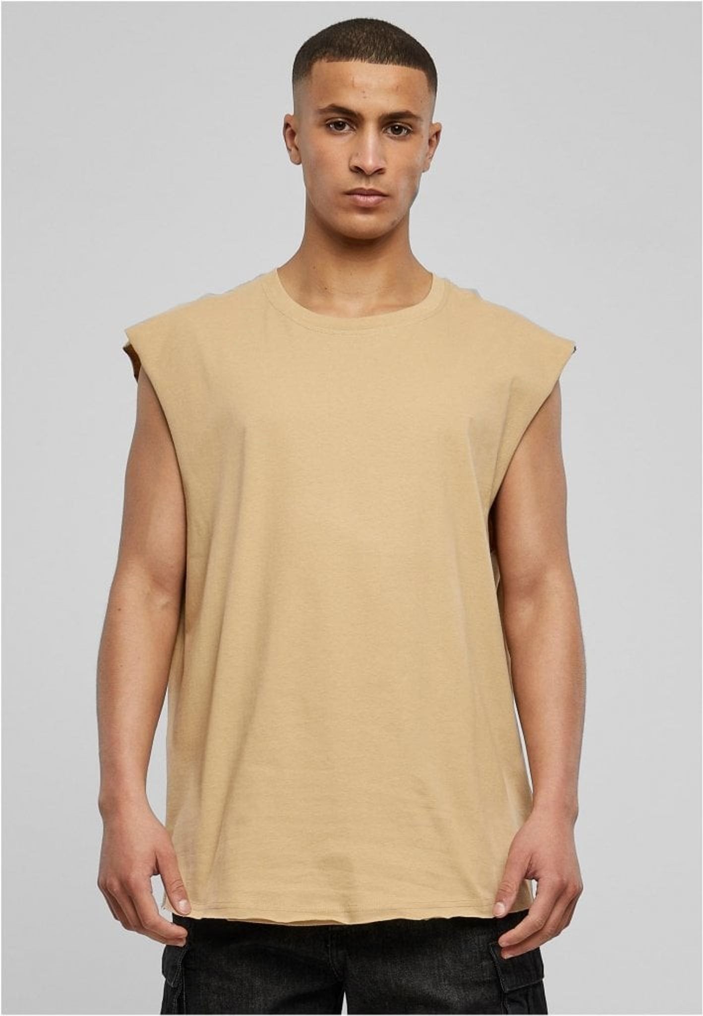 Summer is the time for sleeveless shirts, and the Sleeveless t shirt from Urban Classics is the perfect addition to your wardrobe. This sleeveless t-shirt has a discreet used look that gives character to your everyday outfits. The round neckline and rolled hems give it a sporty look that's perfect for any occasion.