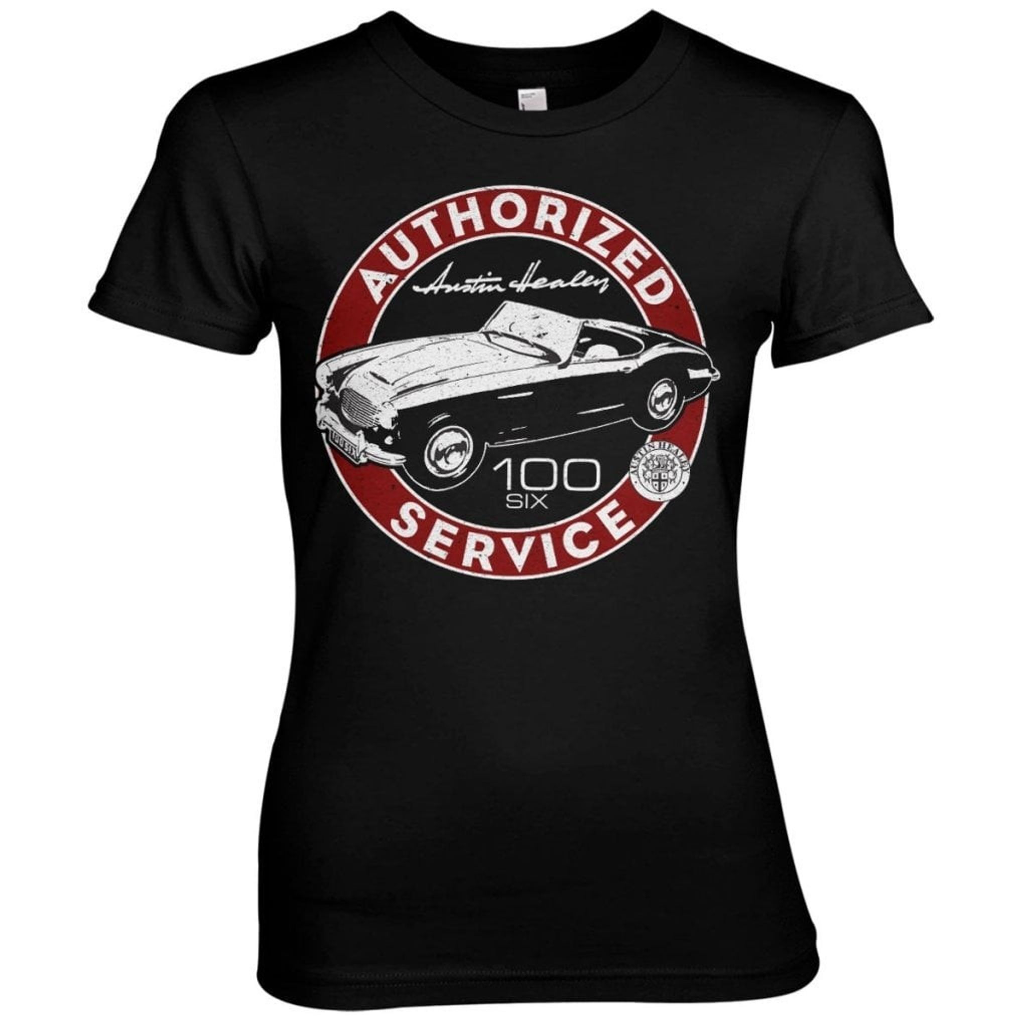 Are you a fan of the classic Austin Healey cars? Then you'll love the Authorized Service Shirt, made from 100% cotton and officially licensed merchandise. This black t-shirt is specially designed for women, with sizes from S to XXL.