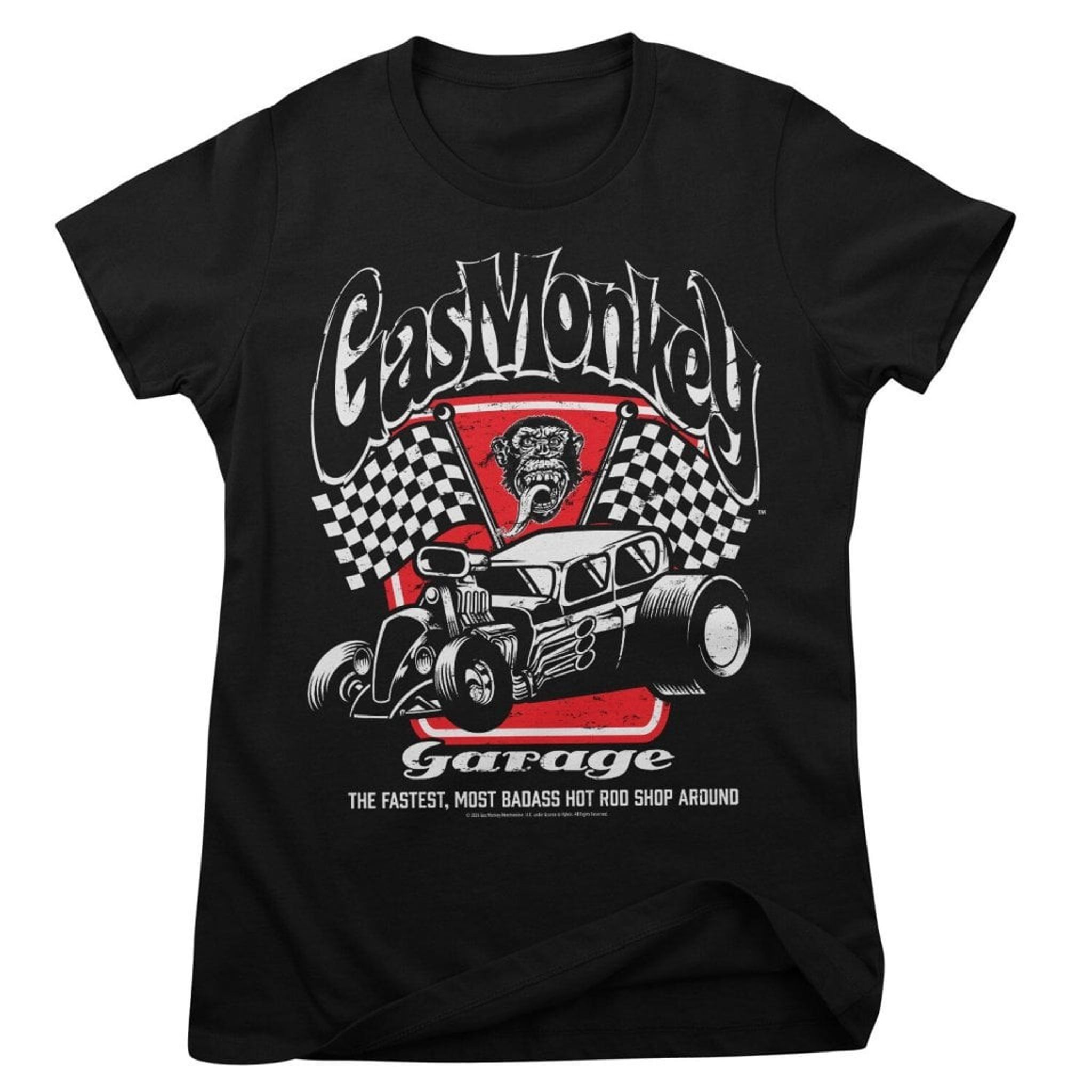 The text "Gas Monkey" hovers over the motif in a large, undulating font that almost looks like it was written by the wind itself. Underneath the car, in a more rounded font, is written "Garage", giving the feeling that this is the place where the magic happens.