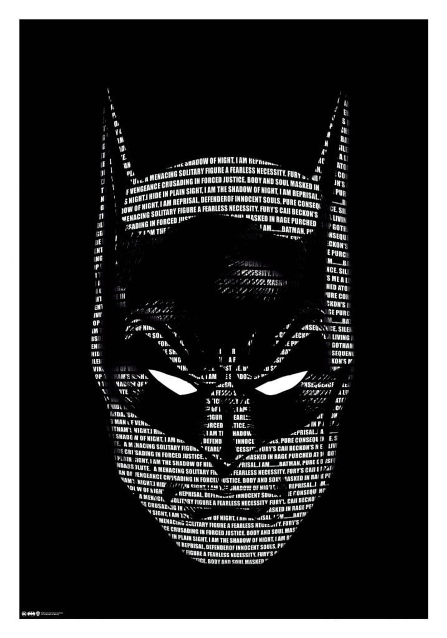 Create a slightly darker atmosphere in your room with this officially licensed Batman Word's poster. The high quality poster is printed on 200gr fine paper and shows the silhouette of Batman's face, formed by different words in white text. A really cool and unique detail for all Batman fans out there!