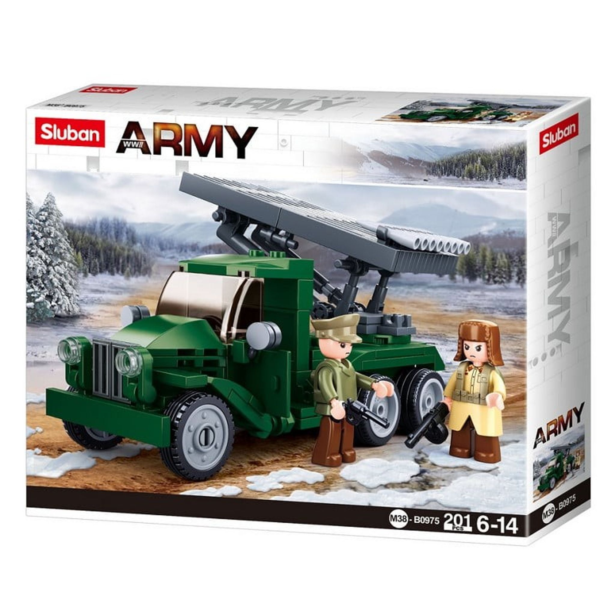 Discover the Sluban Army series with this kit depicting a classic military truck equipped with rocket launchers. The set is designed for young builders and military enthusiasts who appreciate action-packed models.