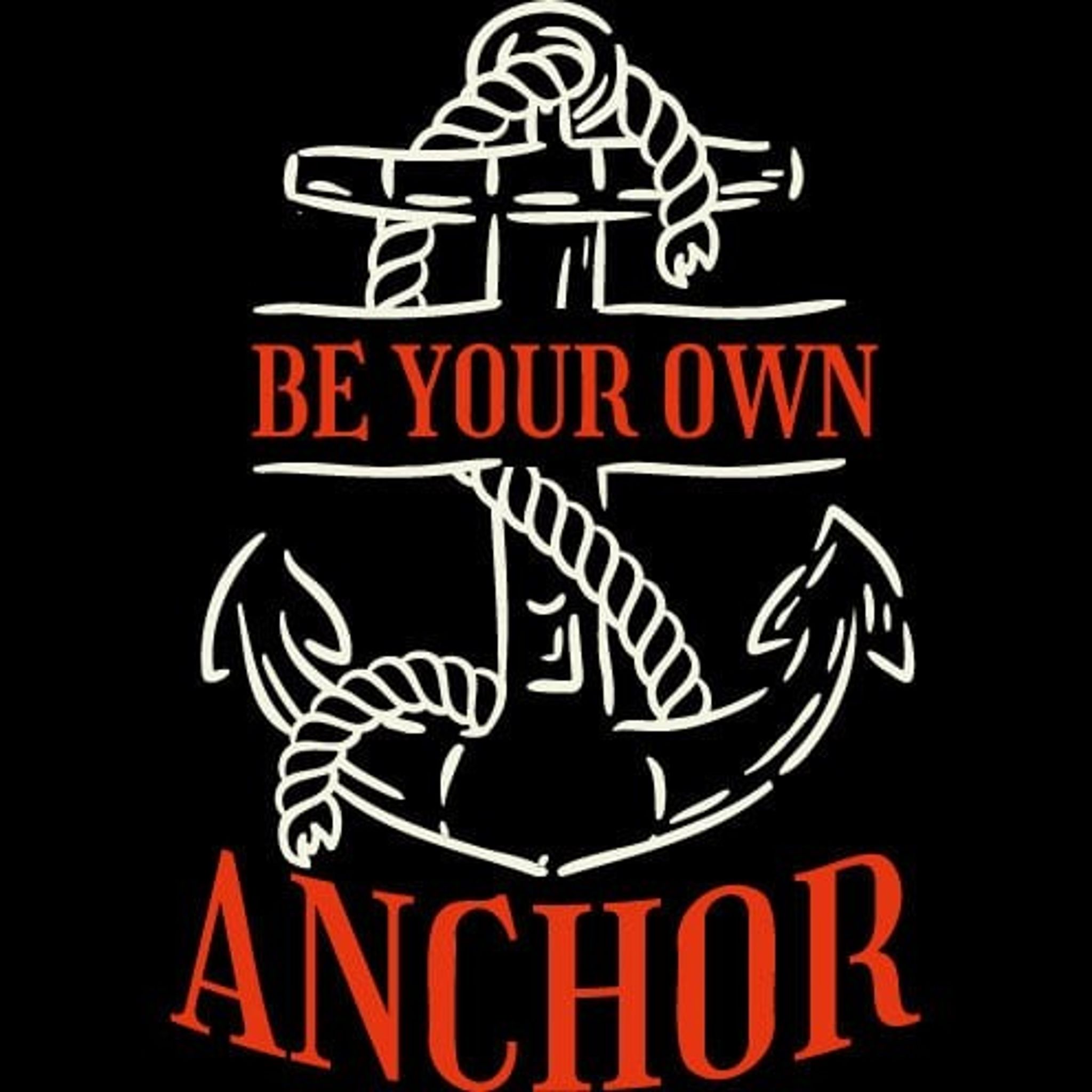 A pair of really nice and high-quality jogging pants with the contours of an anchor and the text "Be your own anchor".