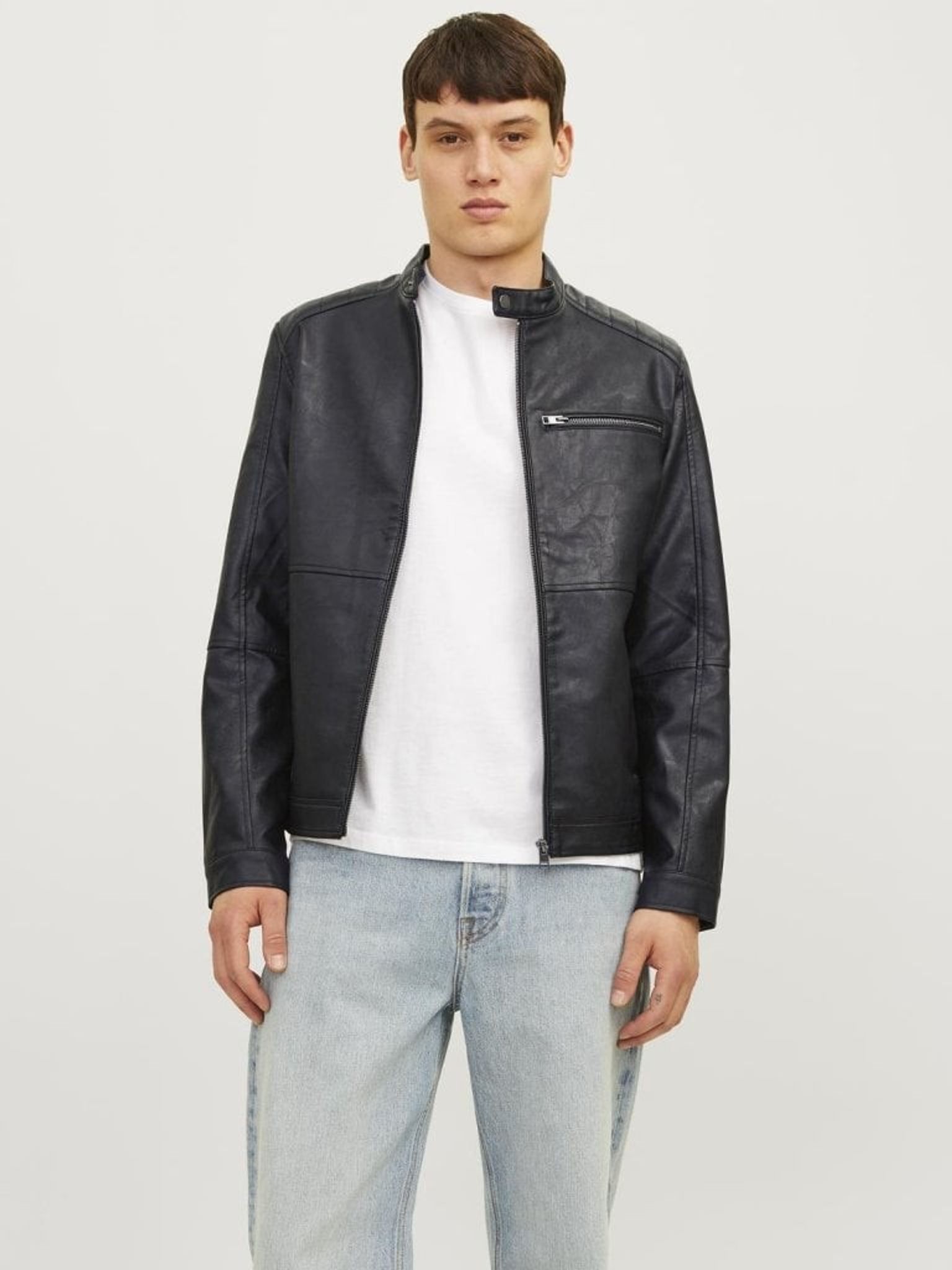 Discover a stylish faux leather biker jacket, perfect for relaxed days. The hard-wearing polyurethane construction makes the jacket resistant to the elements, making it a practical choice for everyday use.