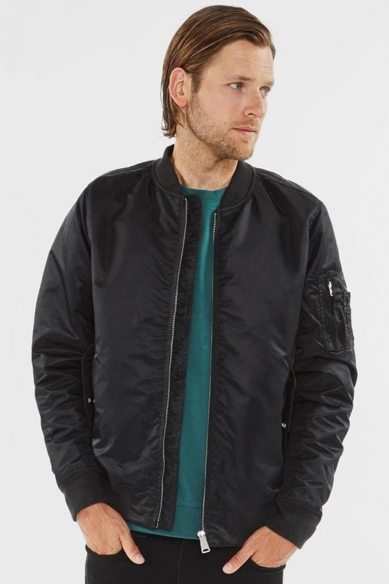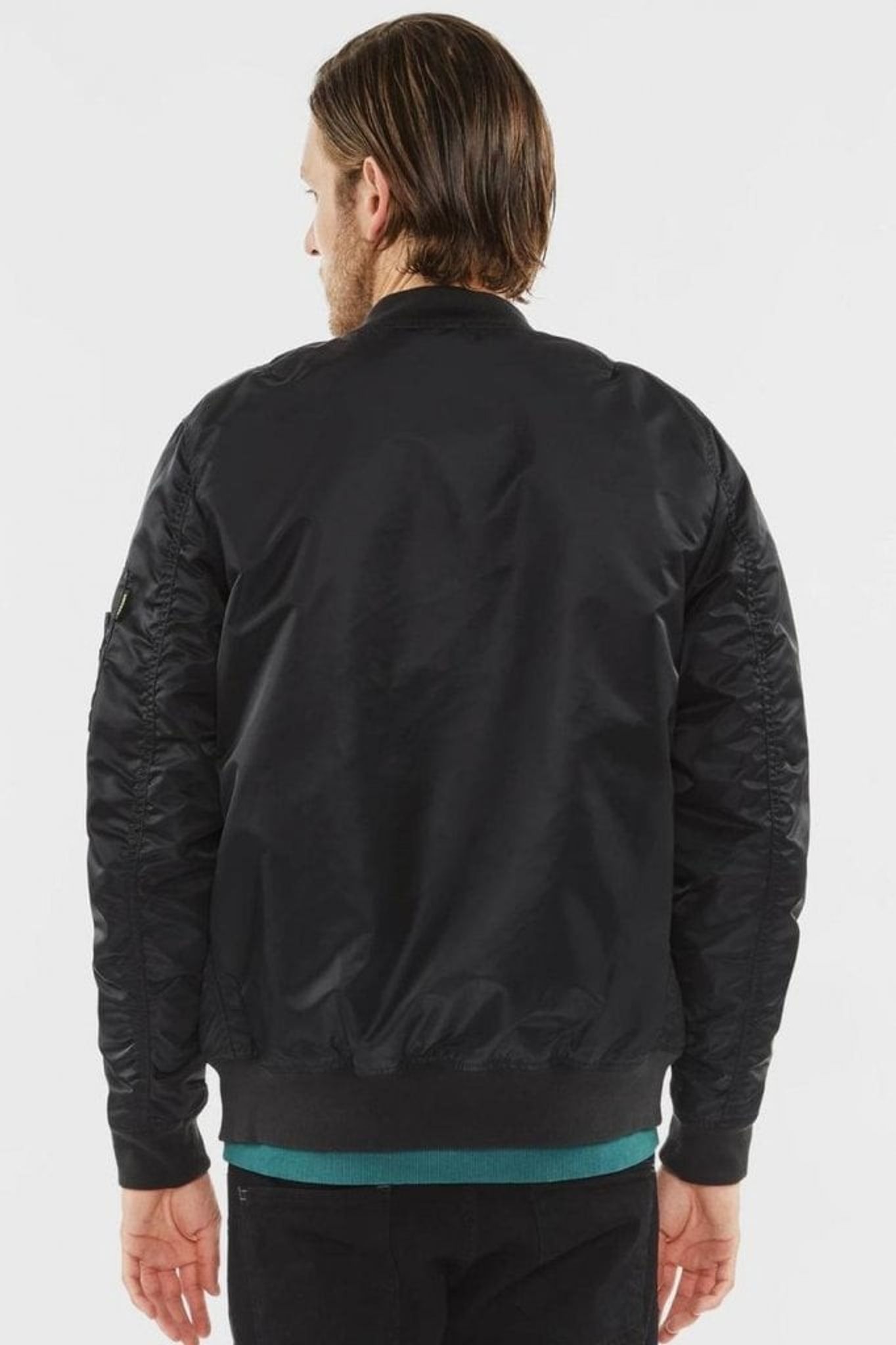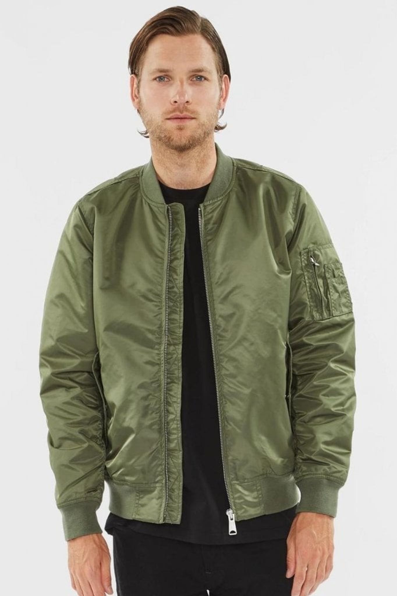 This bomber jacket is made to be used for most of the year with a lighter stuffed lining and a wind and water resistant nylon fabric.