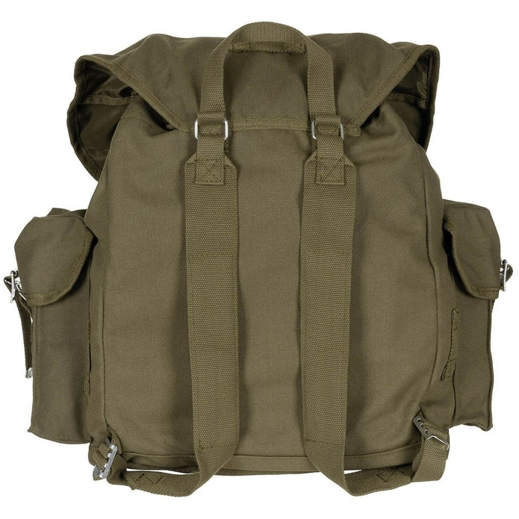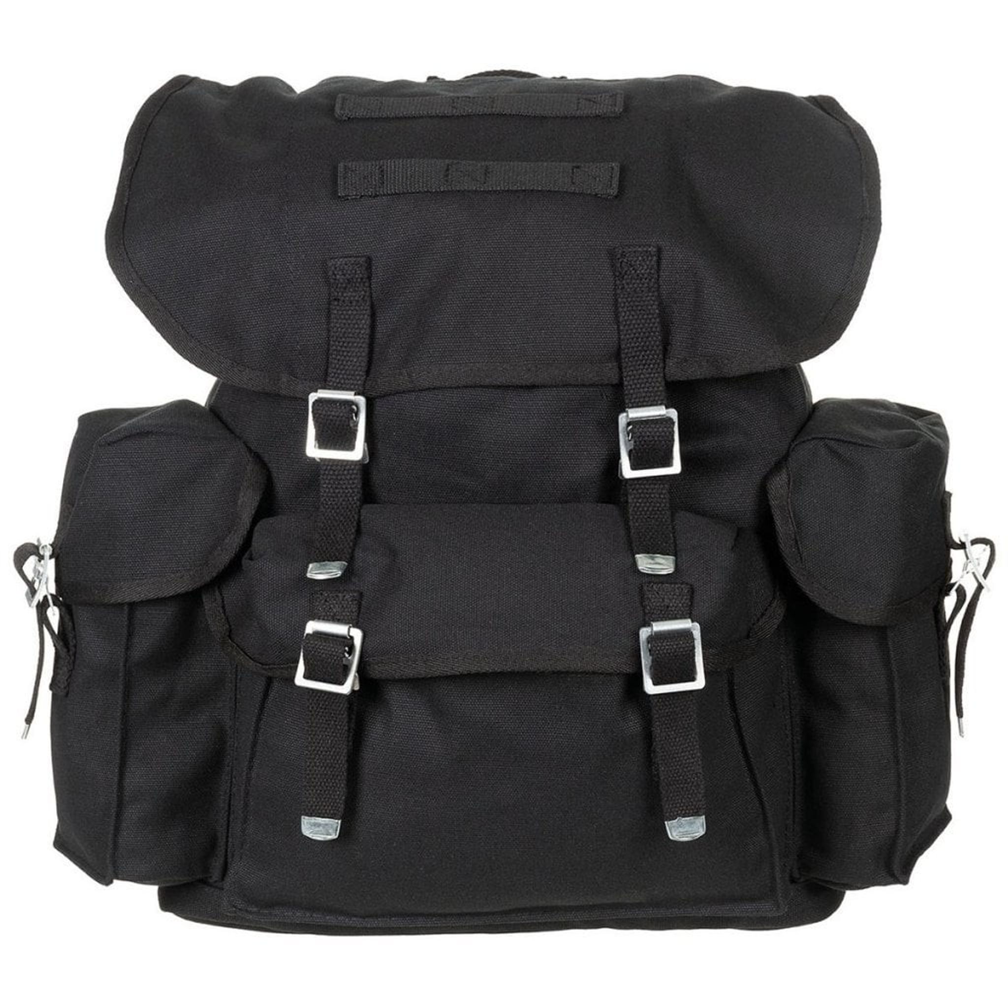 BW canvas backpack.