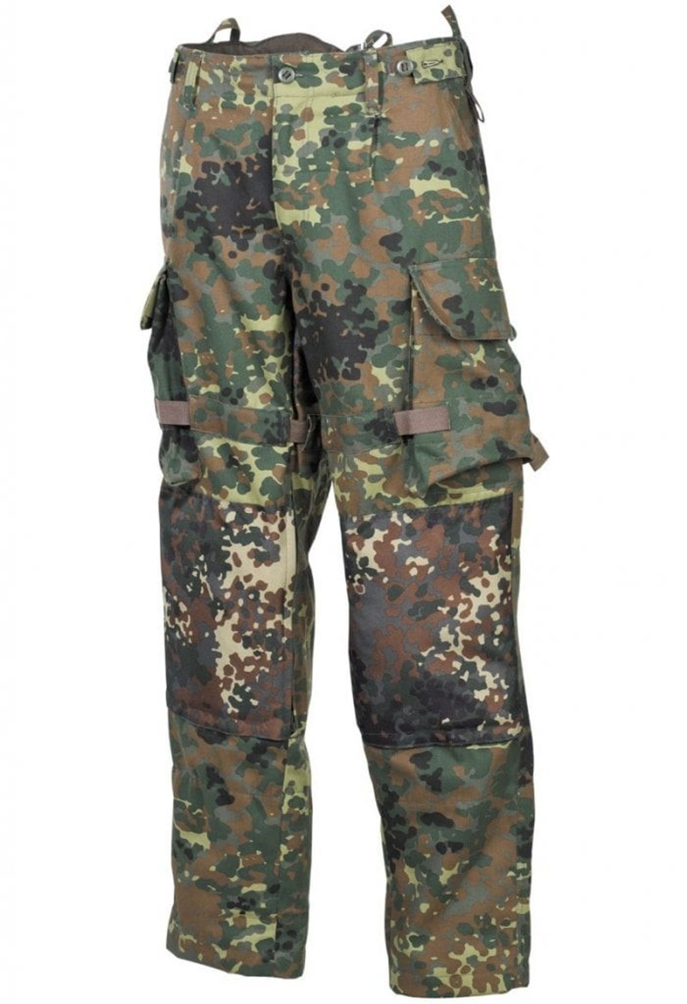 These modern combat trousers, adapted for today's Bundeswehr (German armed forces), combine functionality with durability. The pants are equipped with a front zipper and an adjustable drawstring at the waist to ensure a comfortable and customizable fit. For additional functionality, the pants include two side leg pockets with flaps and buttons, as well as an inner knife pocket on the right leg pocket for extra gear.