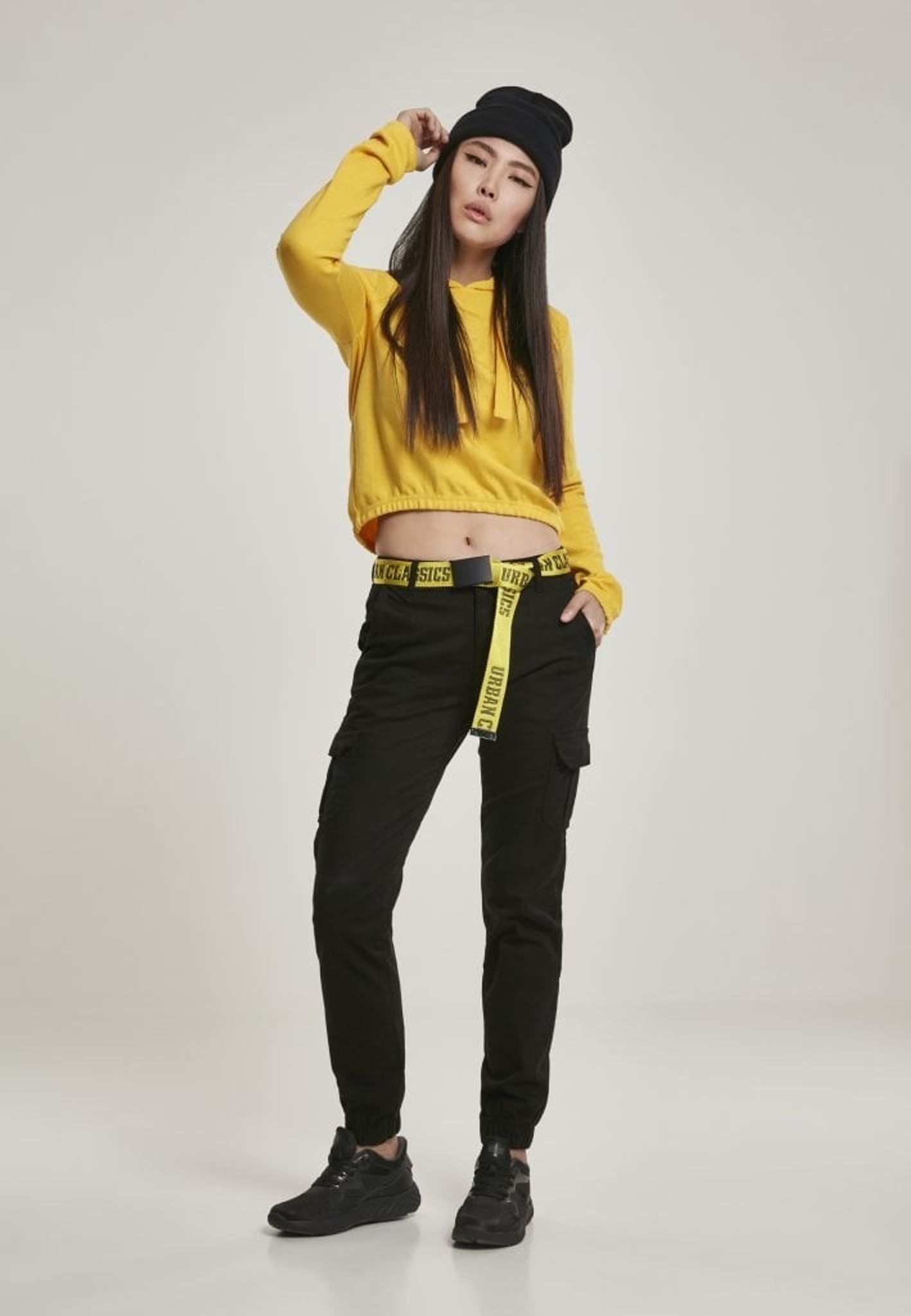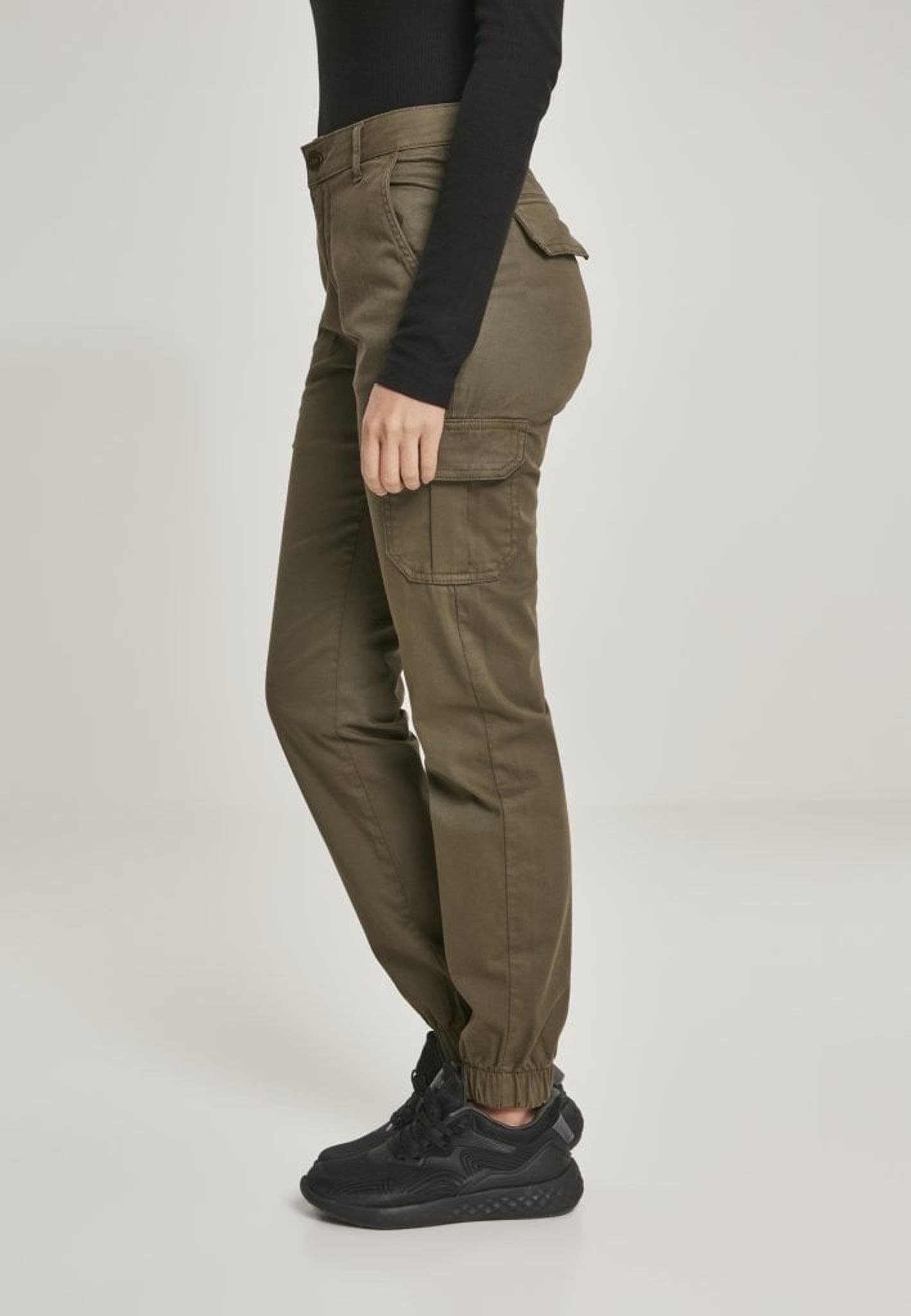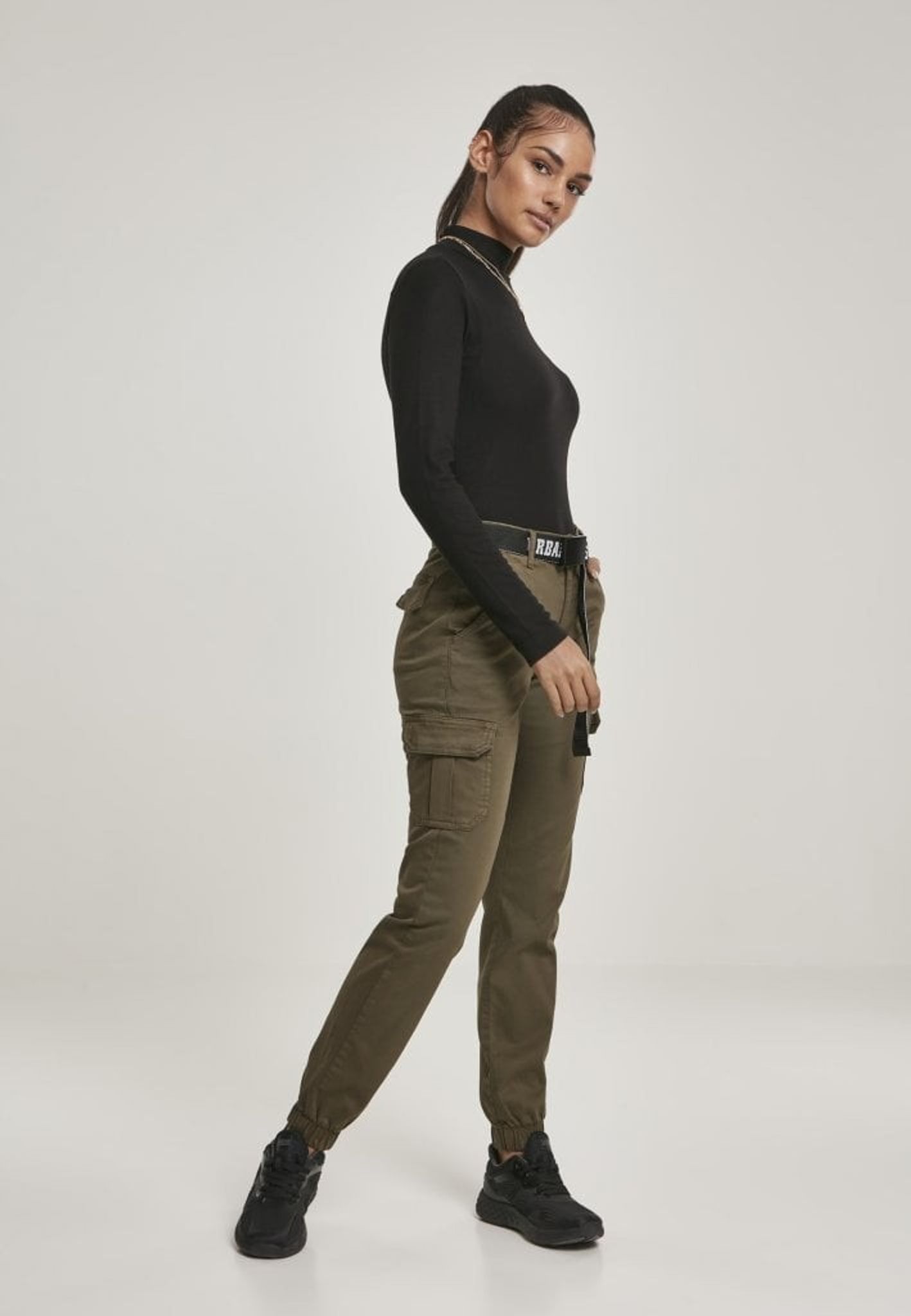 A practical trouser with leg pockets and a waistband. The pants are stylish and comfortable with a high waist. At the waist there is a waistband with hobs.