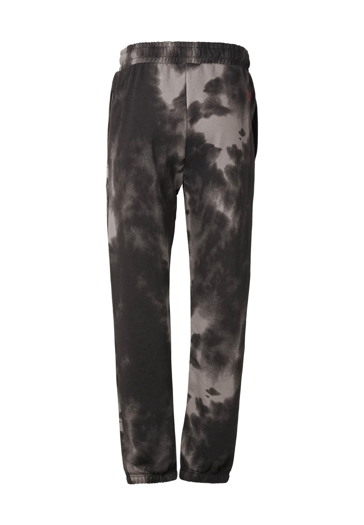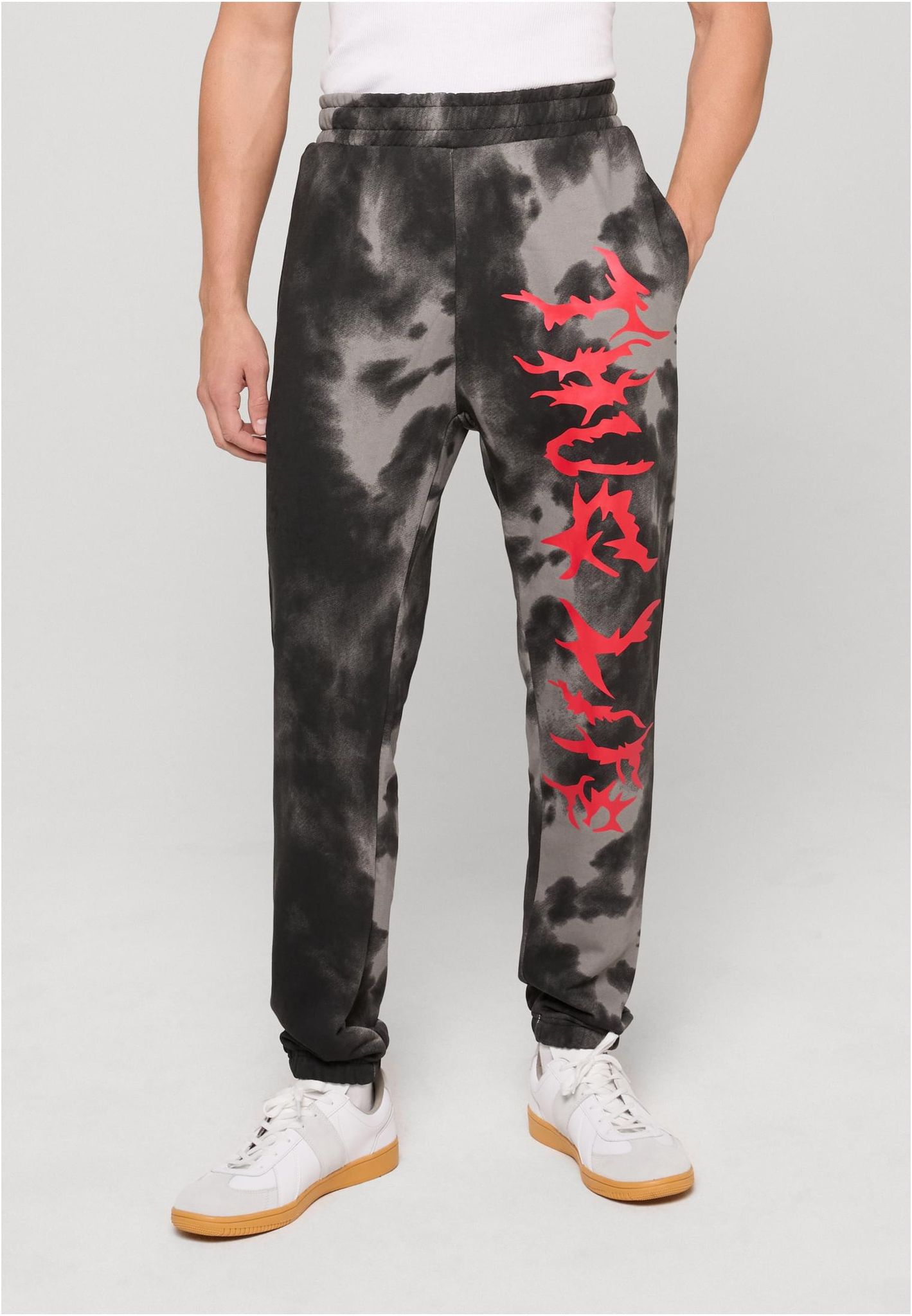 Dessa joggingsbyxor kombinerar en modern design med en avslappnad look. De har ett stilrent svart och grått mönster med en iögonfallande röd text på sidan som ger en unik karaktär.