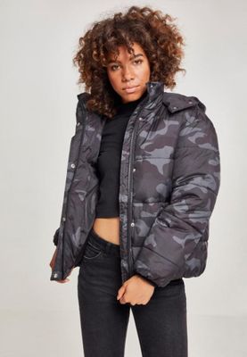 A thick padded jacket in a trendy camouflage look. The fabric is soft and comfortable to wear. The zip with extra button closure, elastic rib stitches on the sleeves and an elastic drawstring in the case keeps the wind away. Hood with drawstring and button neck. Side pockets are closed with zipper.