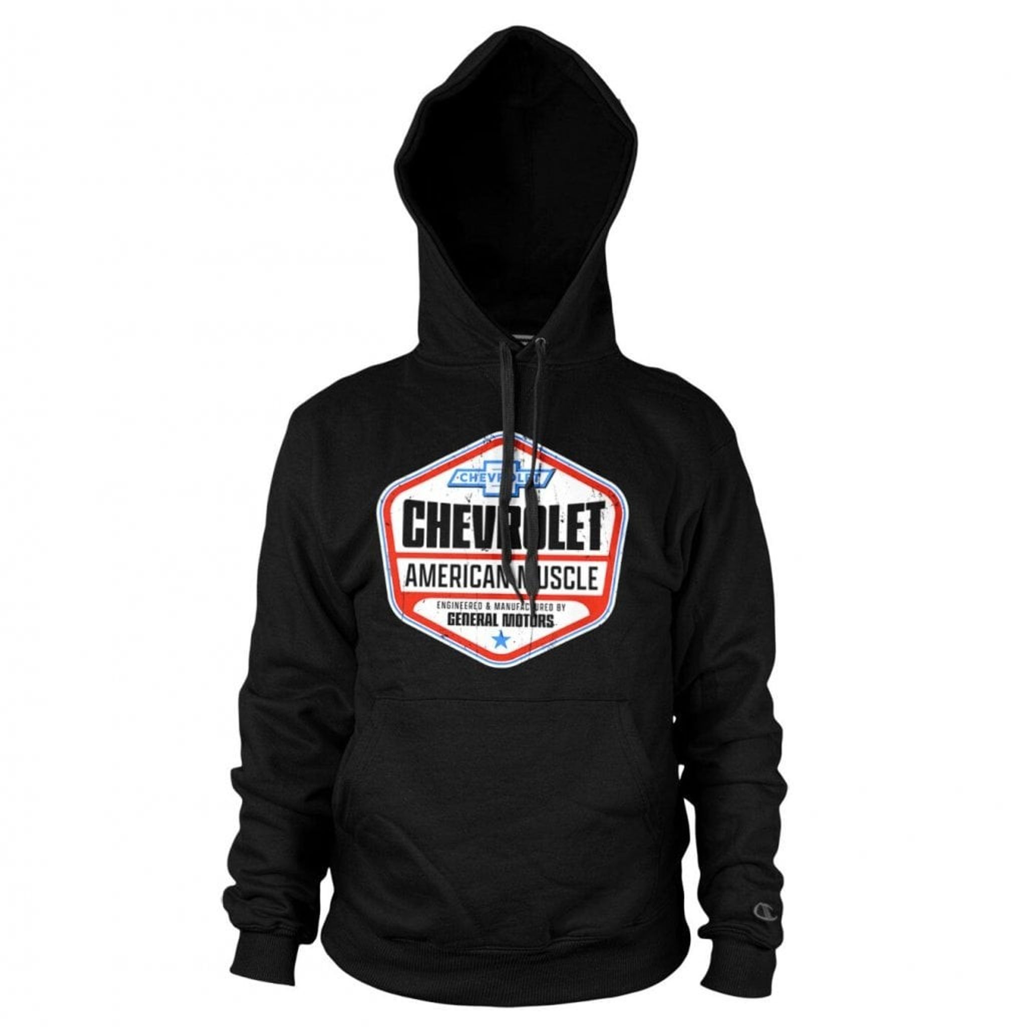 Our hoodie for men is not only stylish and comfortable, it also has a really cool design. The motif on this cool shirt depicts a shield that pays tribute to Chevrolet, the iconic American car brand. "CHEVROLET" stands proudly at the top of the design, as a reminder that you are near a real source of power. Underneath the big name is "AMERICAN MUSCLE", which says it all about this car - it's built with strong will and freedom in mind.