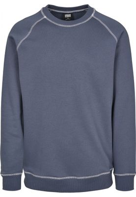 A sweatshirt crewneck in vintage blue fabric with seams in white contrast colors.
