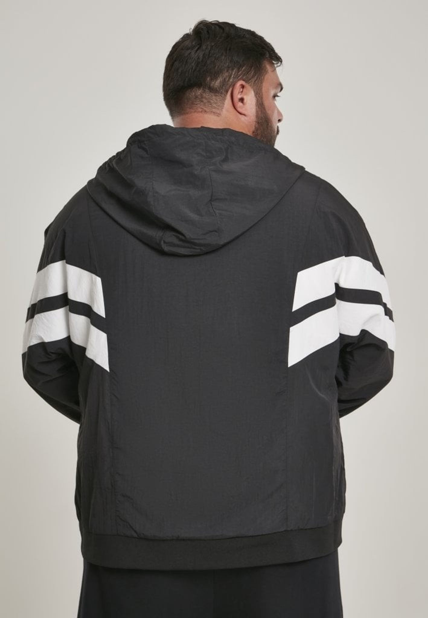 A sporty jacket in thin wrinkled fabric. The jacket has a high neck with zipper and zipper in the hood.