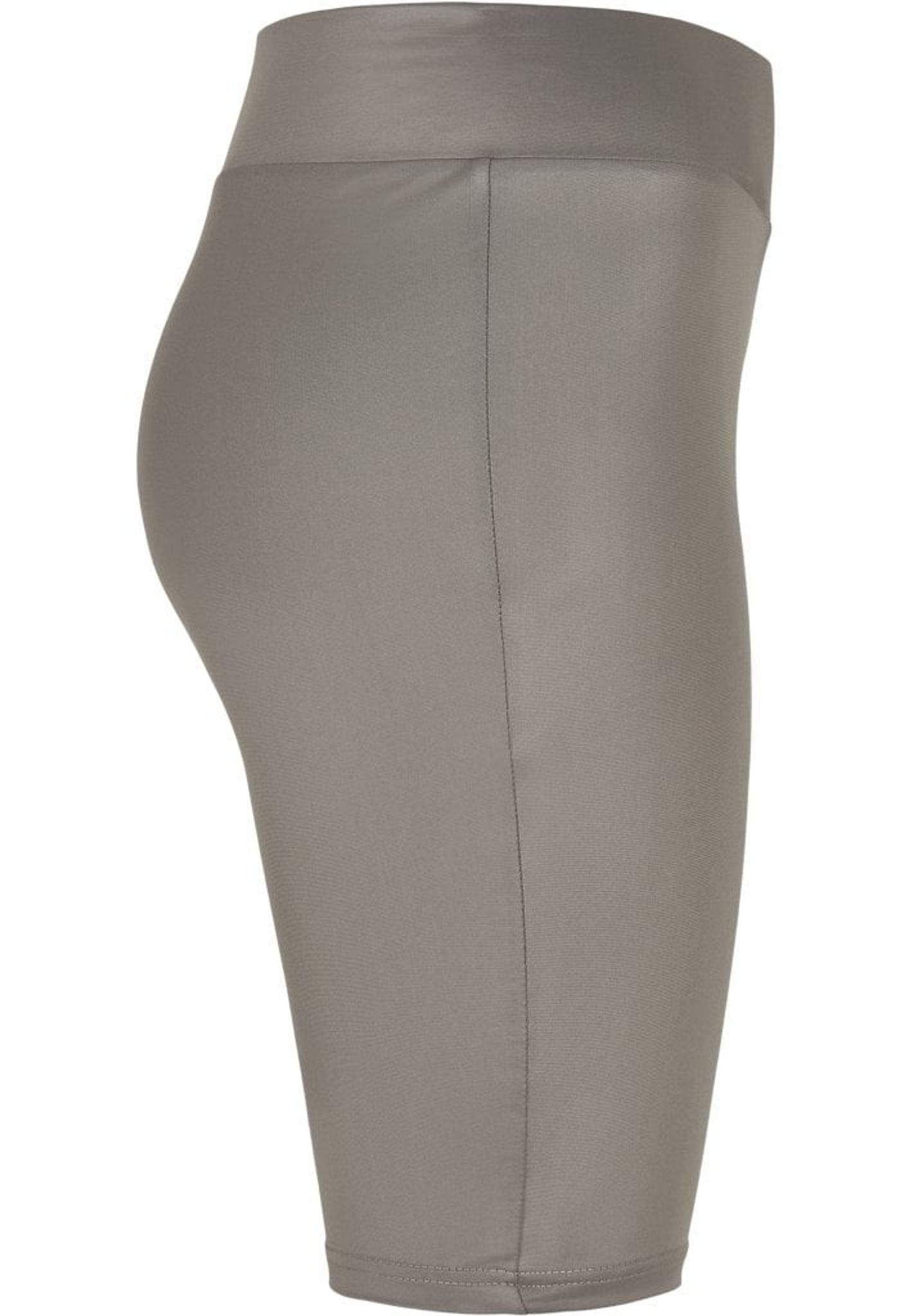 A pair of stylish and tight cycling pants in a matte but shimmering imitation leather. The trousers have a high waist and an elastic waistband to provide a comfortable and comfortable fit.
