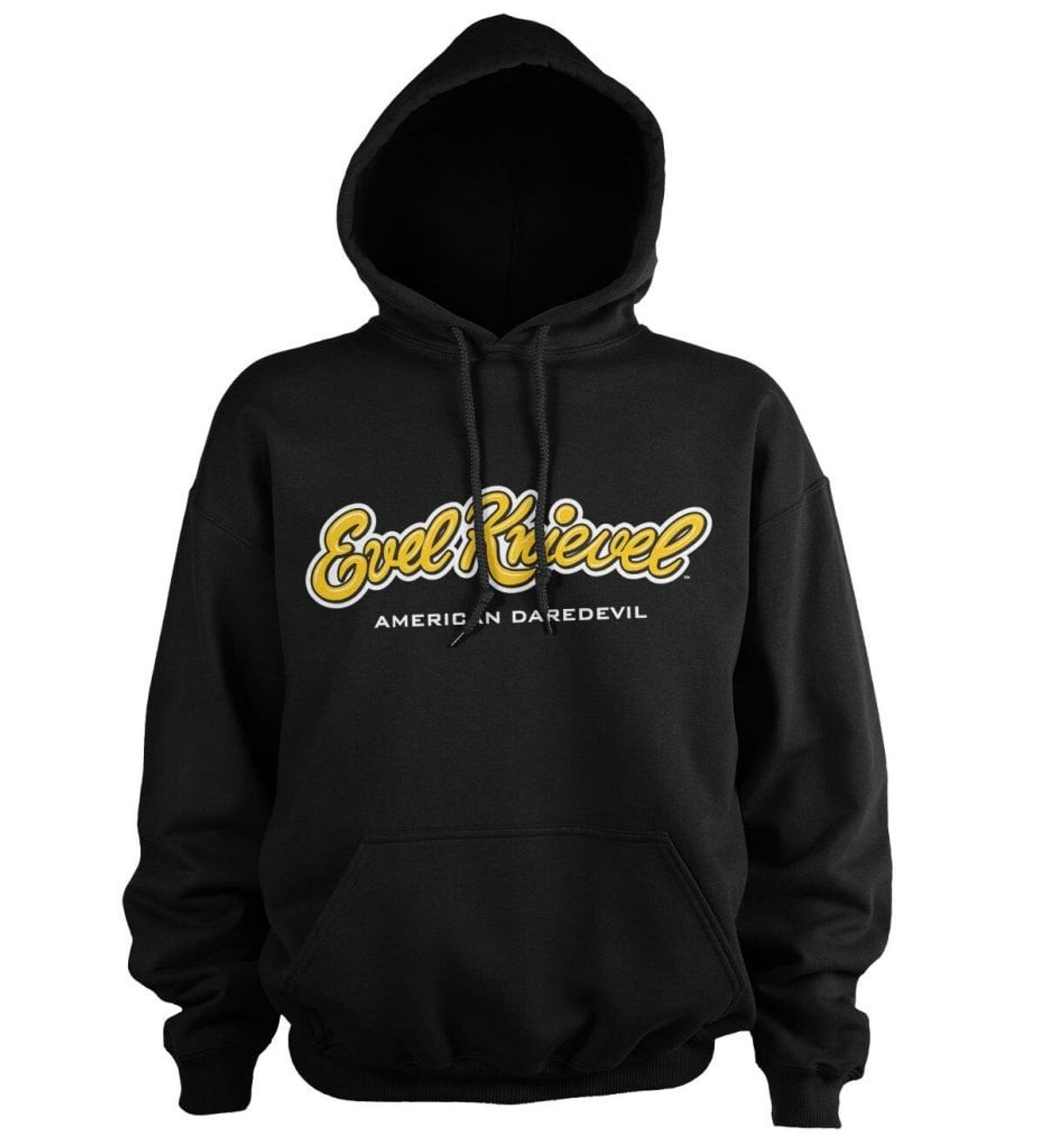 Evel Knievel-Logo Hoody is the perfect addition to your wardrobe and is just as good for everyday life. Sure, you will draw everyone's attention when you rock this stylish sweater with the legendary stunt driver's signature pressure.
