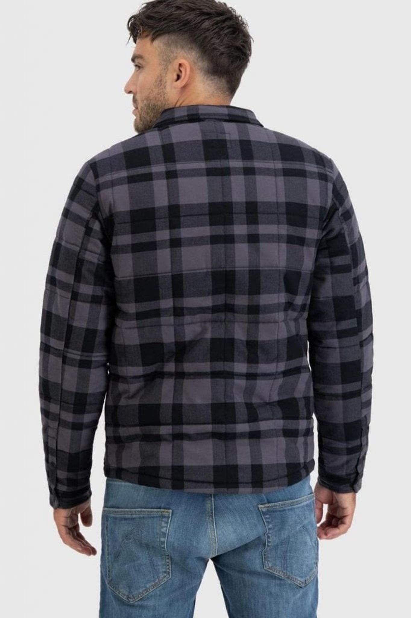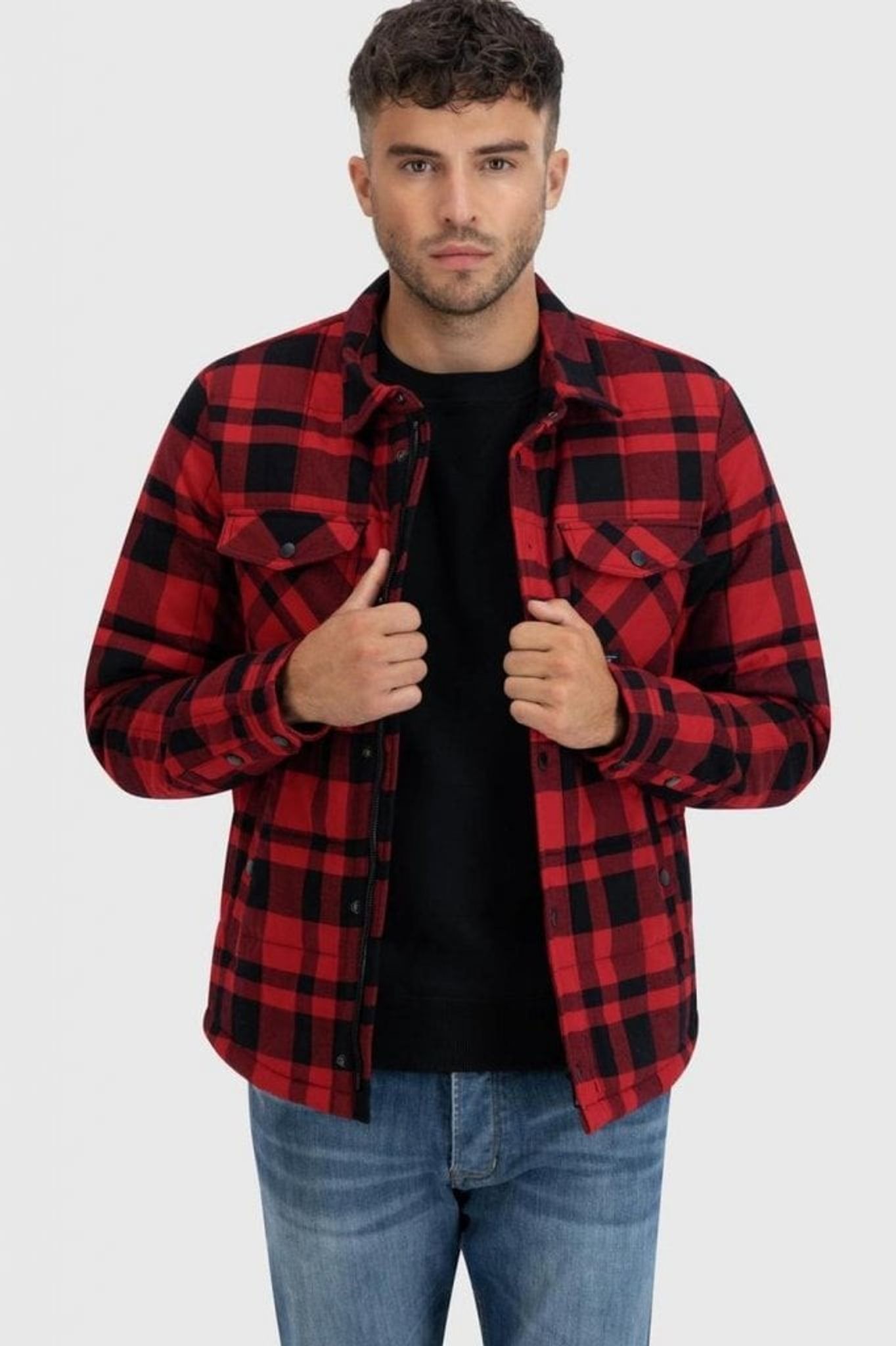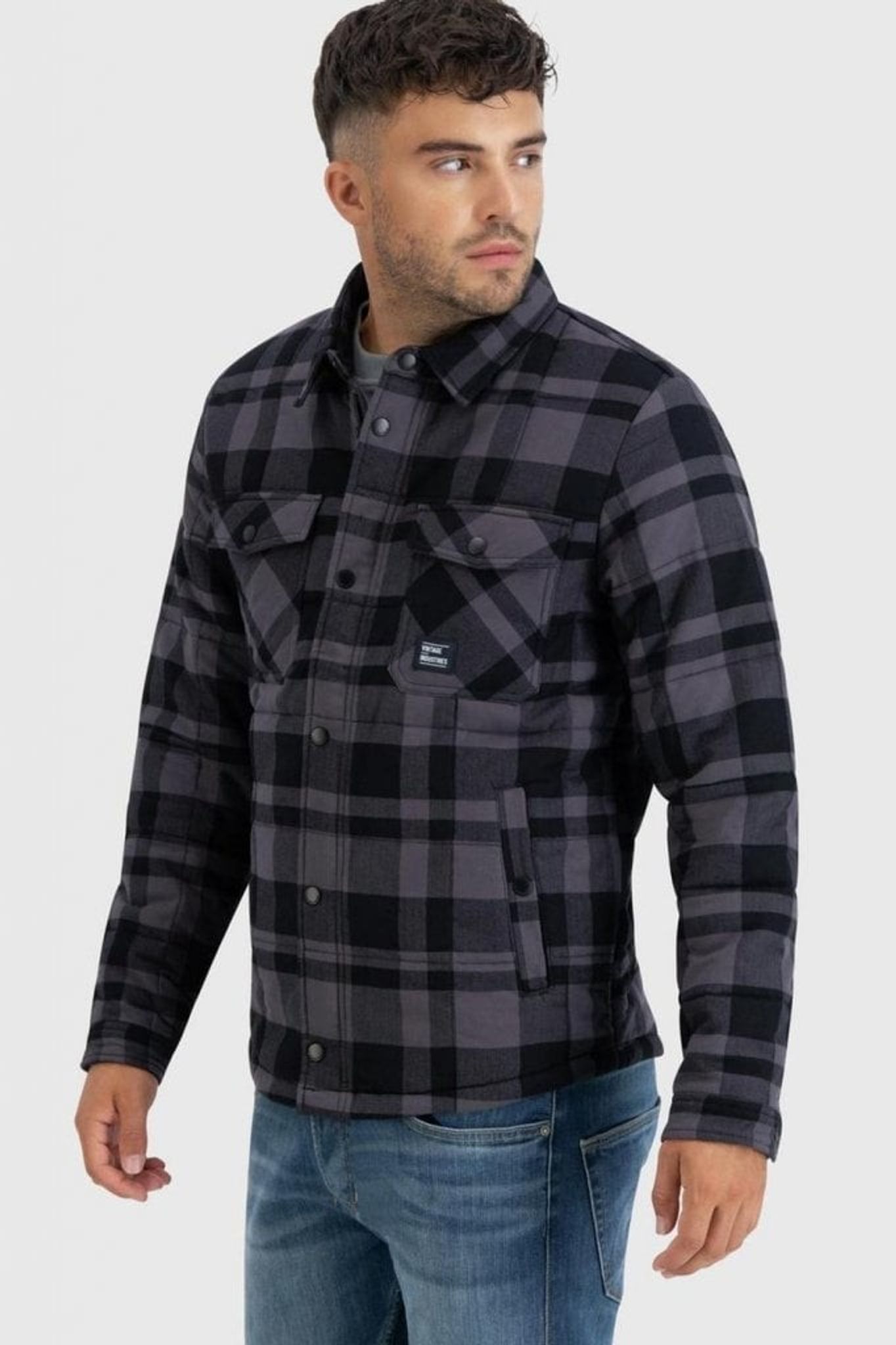 A roomy flannel jacket with chest pockets and side pockets. The jacket closes with a zipper in the front which is hidden by a storm flap with press studs. The inside is covered in a polyester lining.