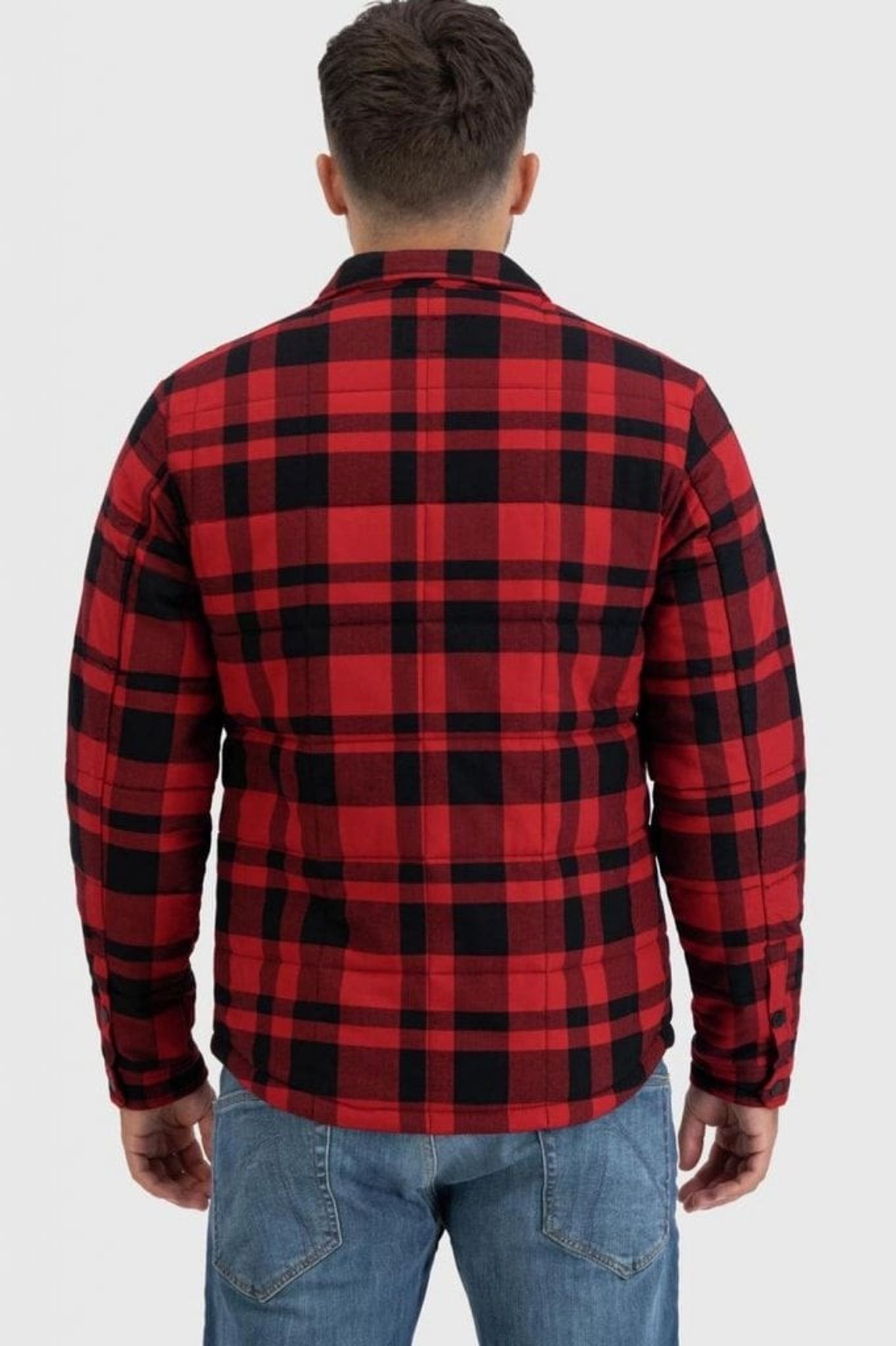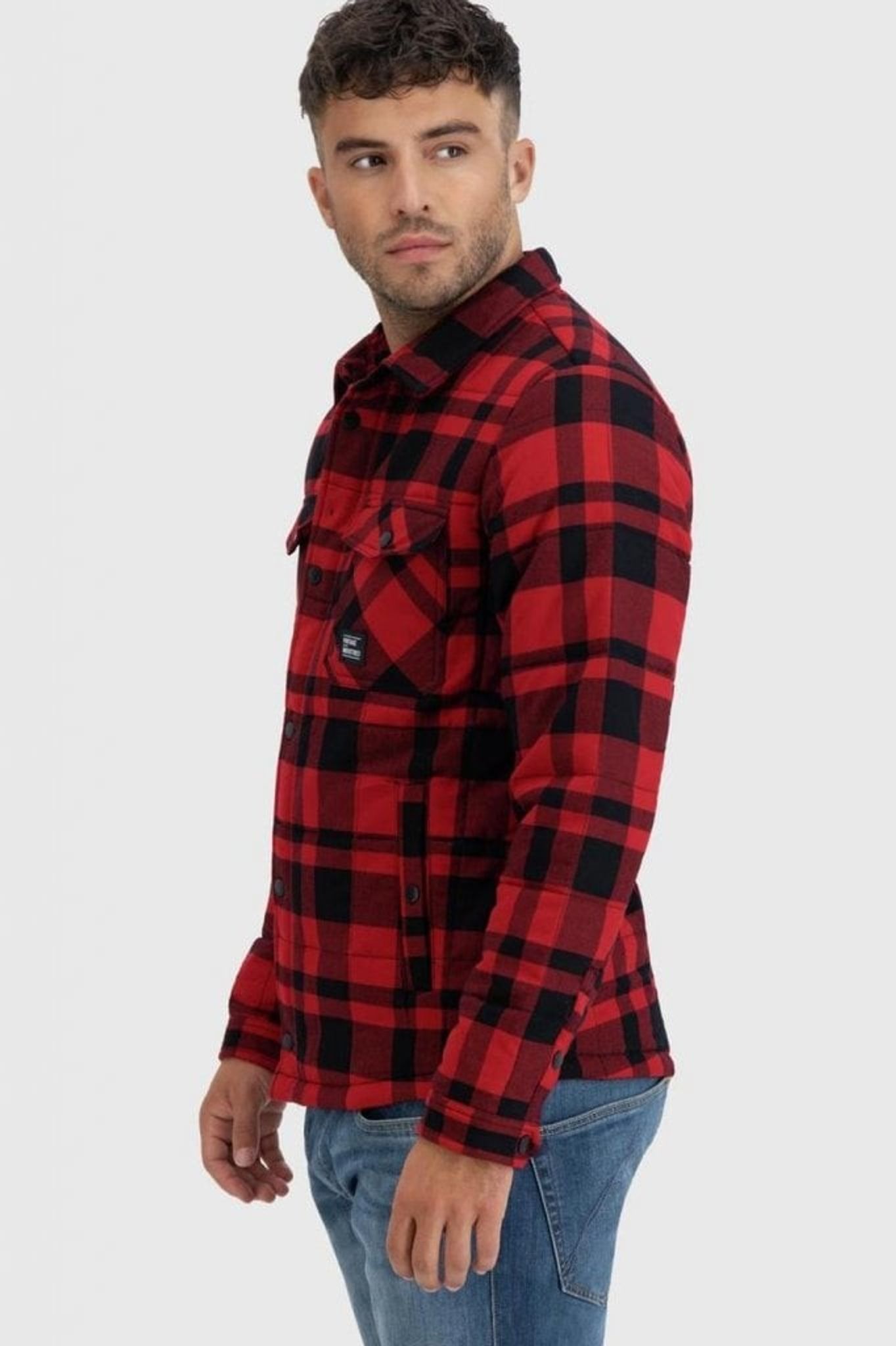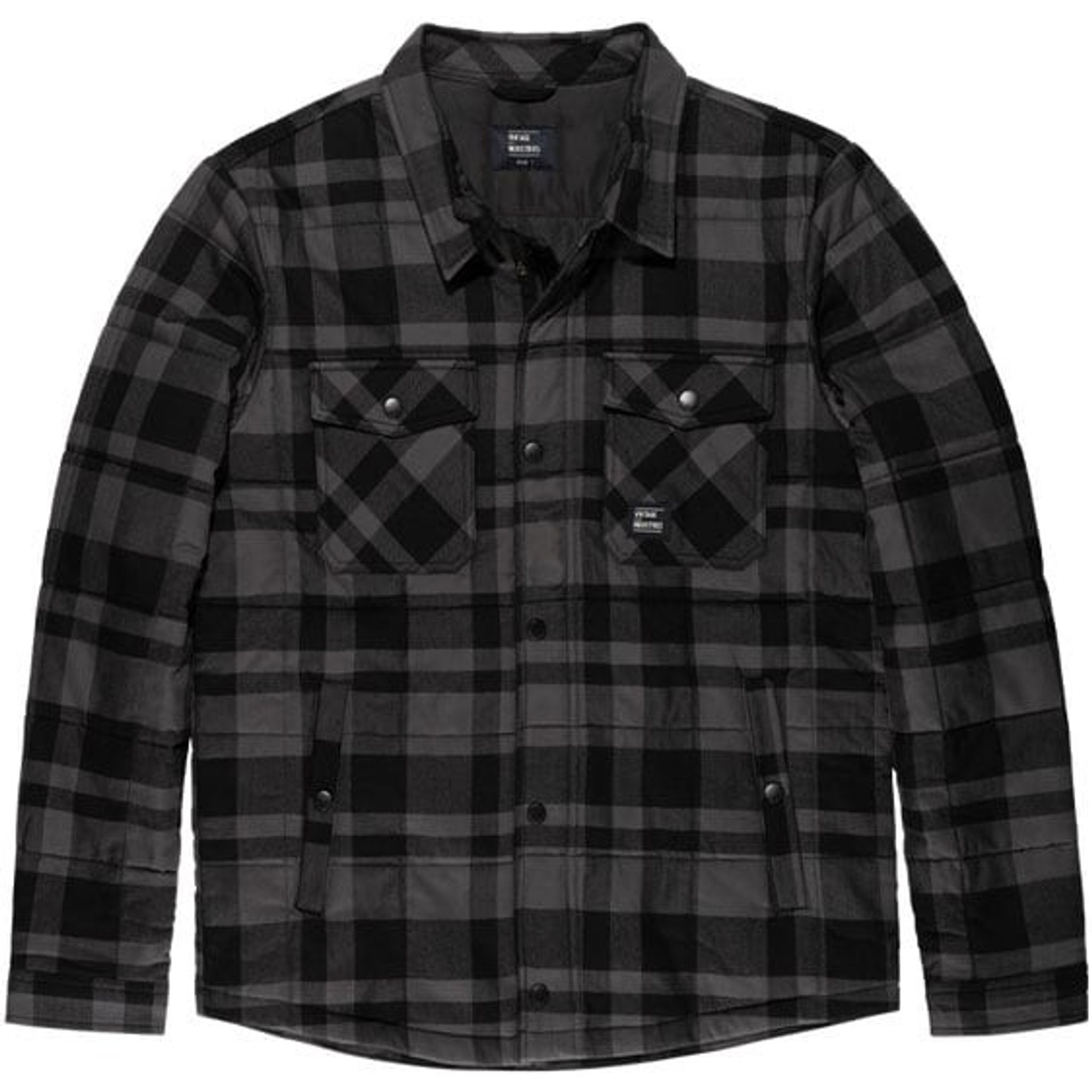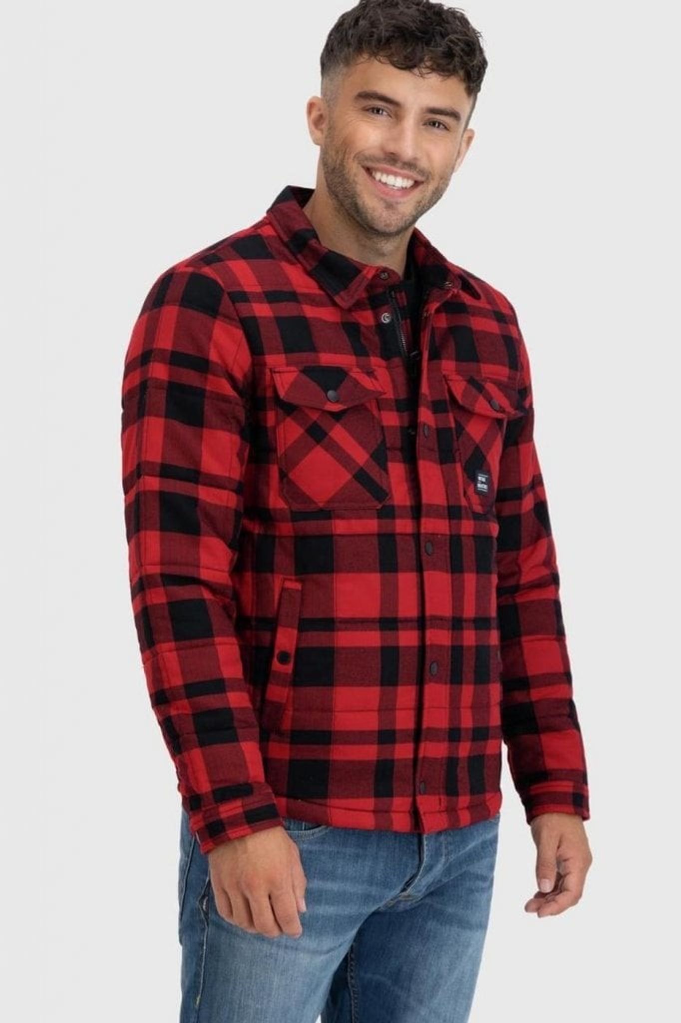 A roomy flannel jacket with chest pockets and side pockets. The jacket closes with a zipper in the front which is hidden by a storm flap with press studs. The inside is covered in a polyester lining.