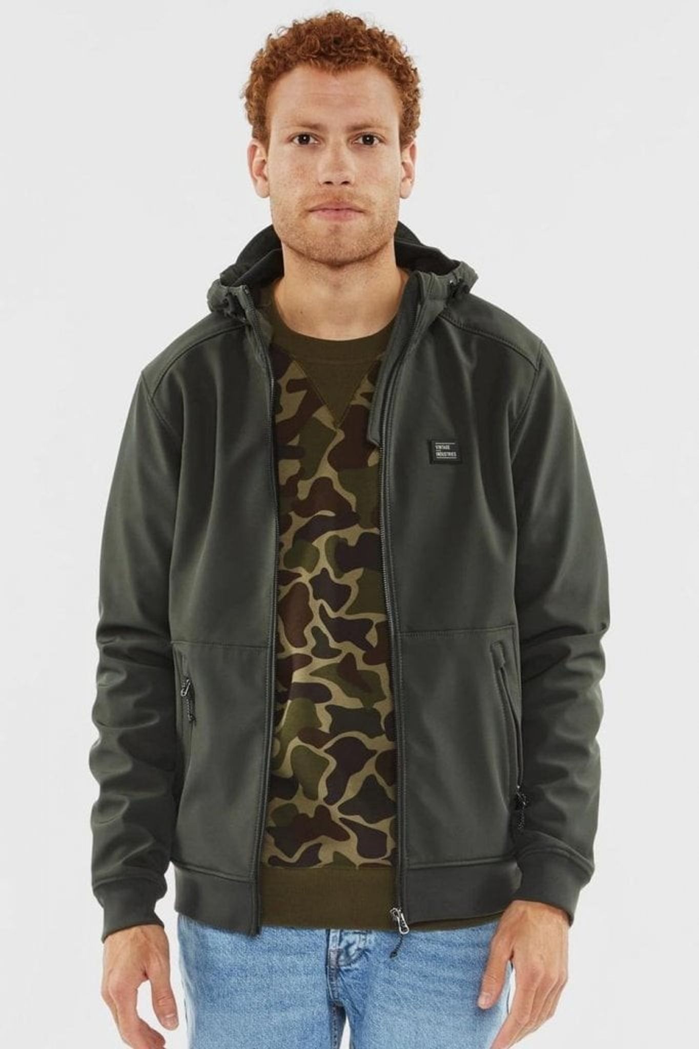 A functional softshell jacket whose inside is covered in a warm fleece lining. The jacket has an adjustable hood and knitted cuffs at the waist and cuffs.