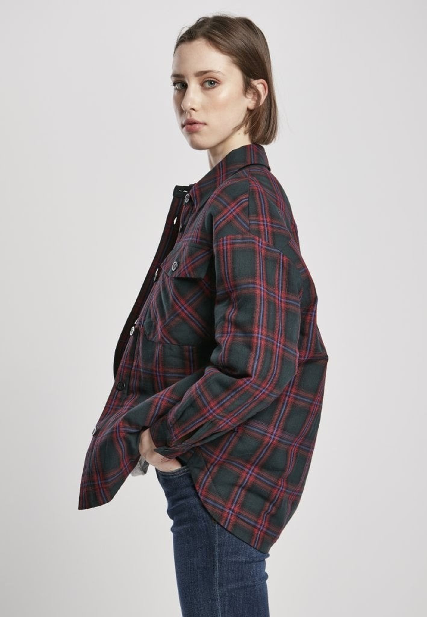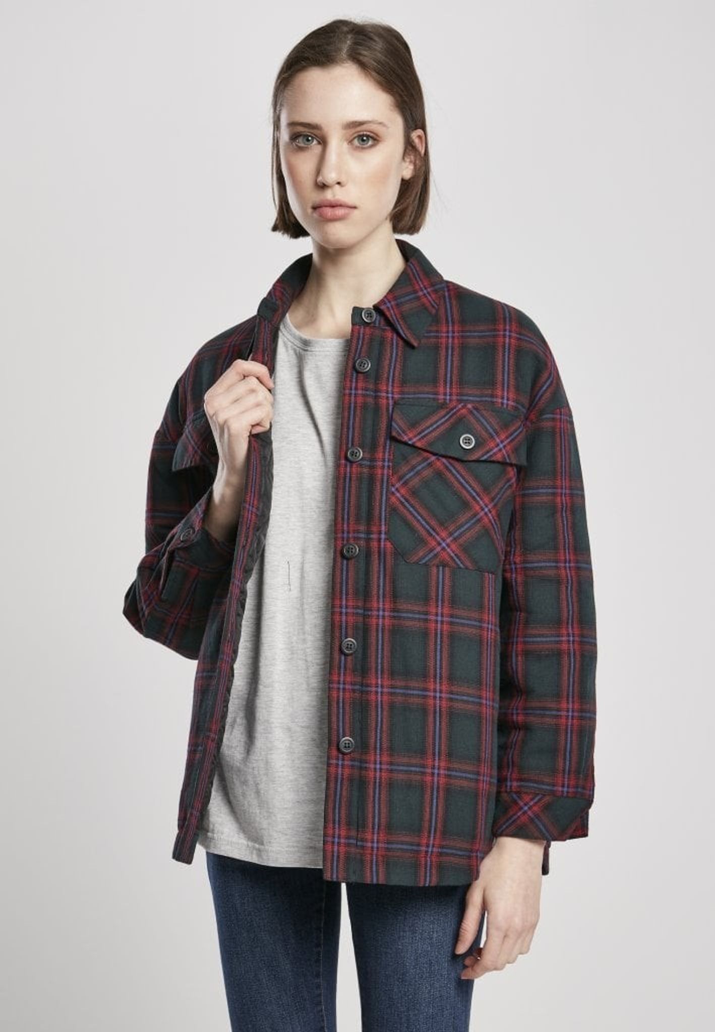 Lined checkered shirt lady