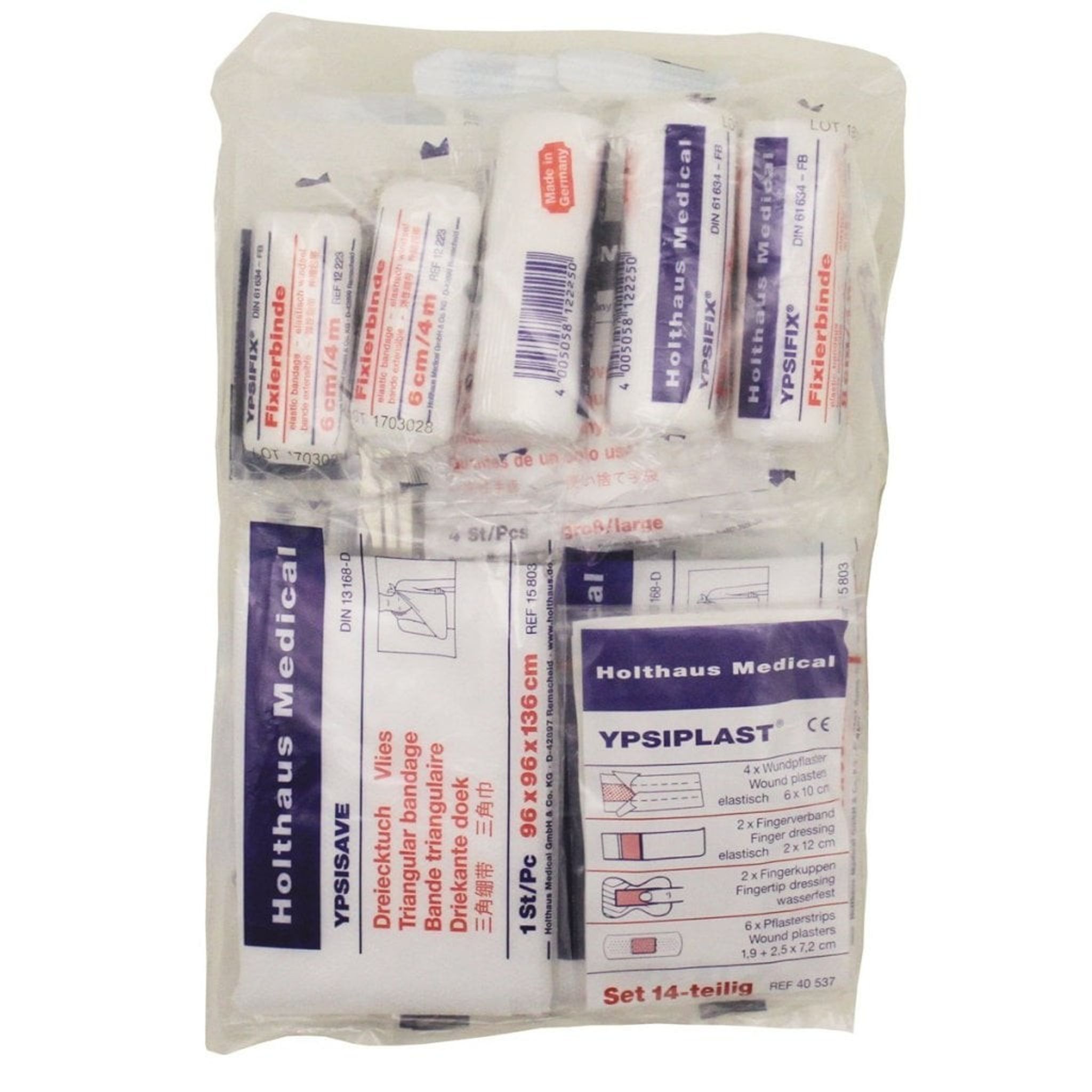 In Germany, for example, there are rules that all motor vehicles must have a first aid kit and what this must contain. This kit is designed to contain exactly everything that this regulation requires and is therefore designed in accordance with DIN-13164:2022.