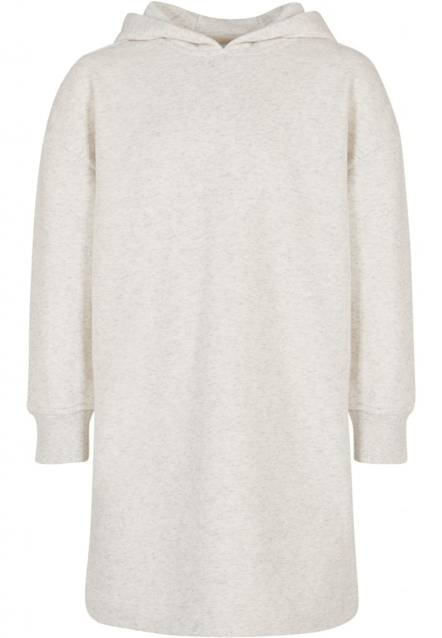 An extra long hoodie that is more like a dress with a hoodie in really cozy sweatshirt material. You have a straight finish at the bottom and wider cuffs along the cuffs.