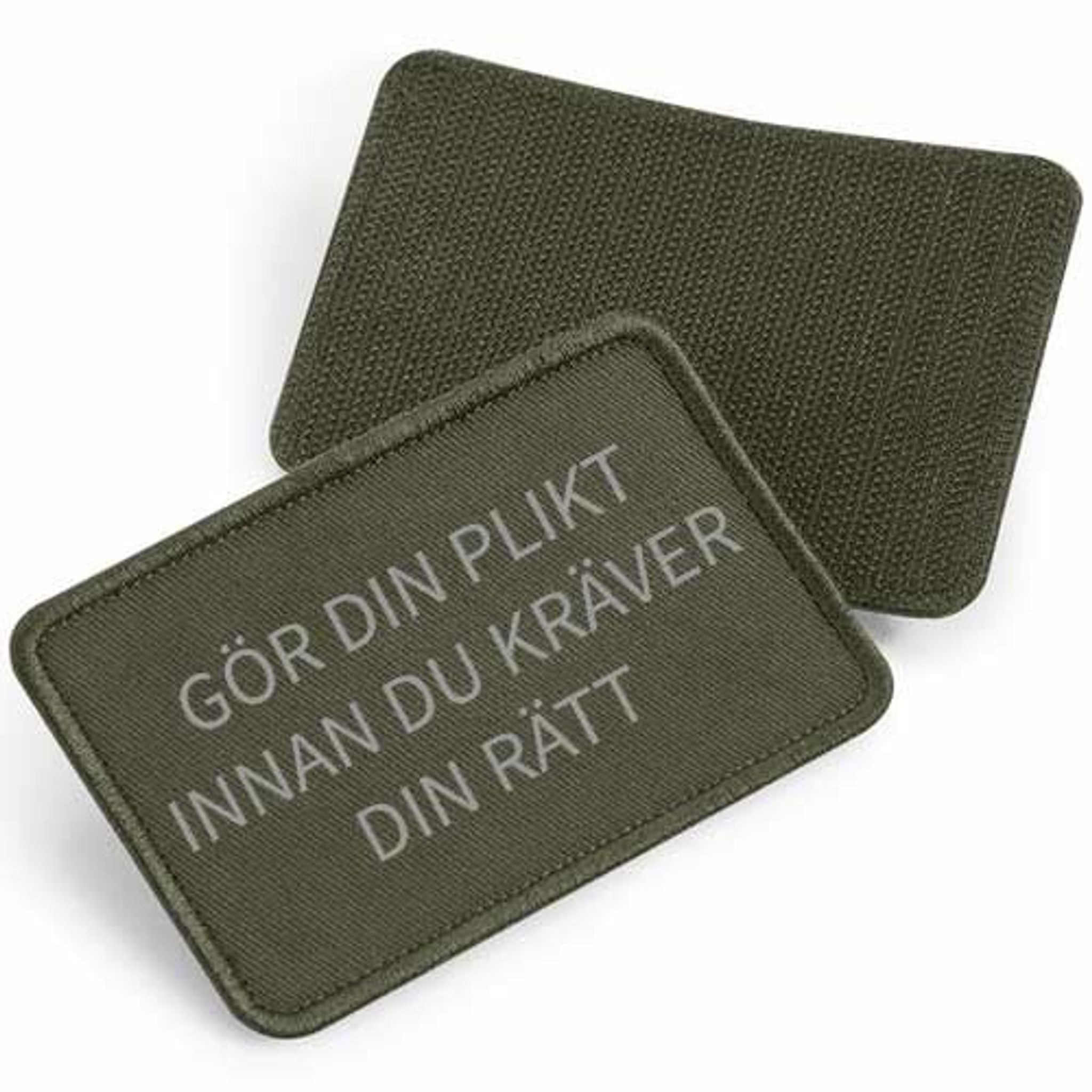 This stylish fabric patch with the clear message "DO YOUR DUTY BEFORE YOU CLAIM YOUR RIGHT" is a symbol of responsibility and sacrifice.