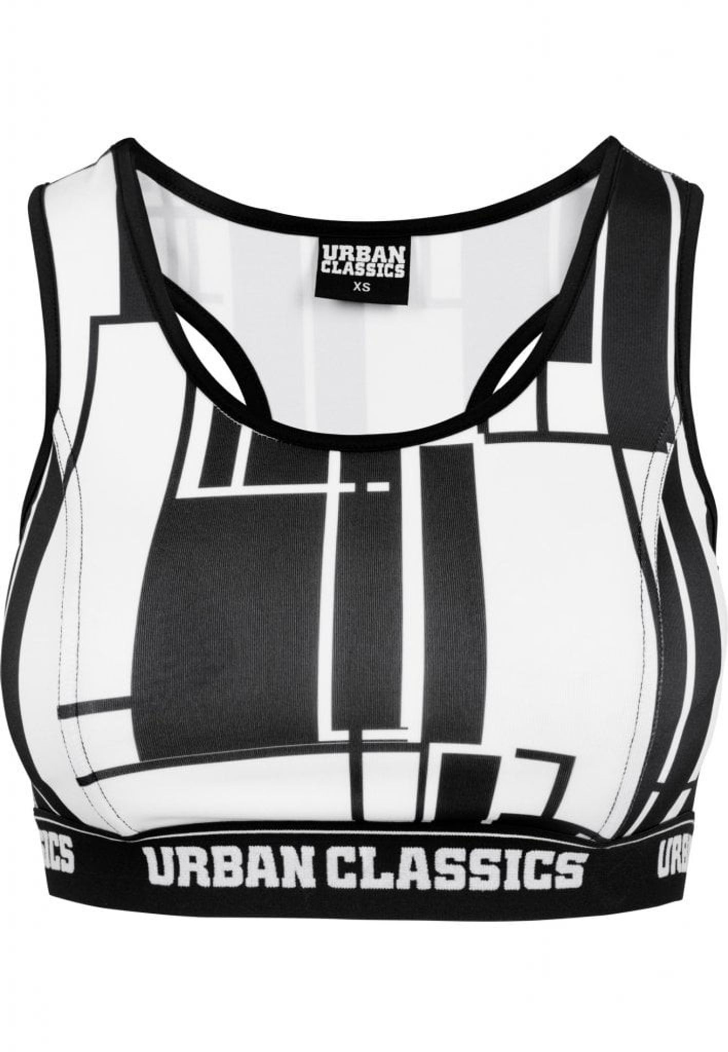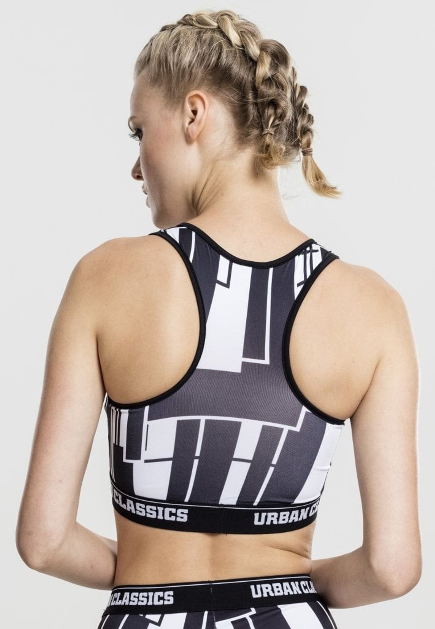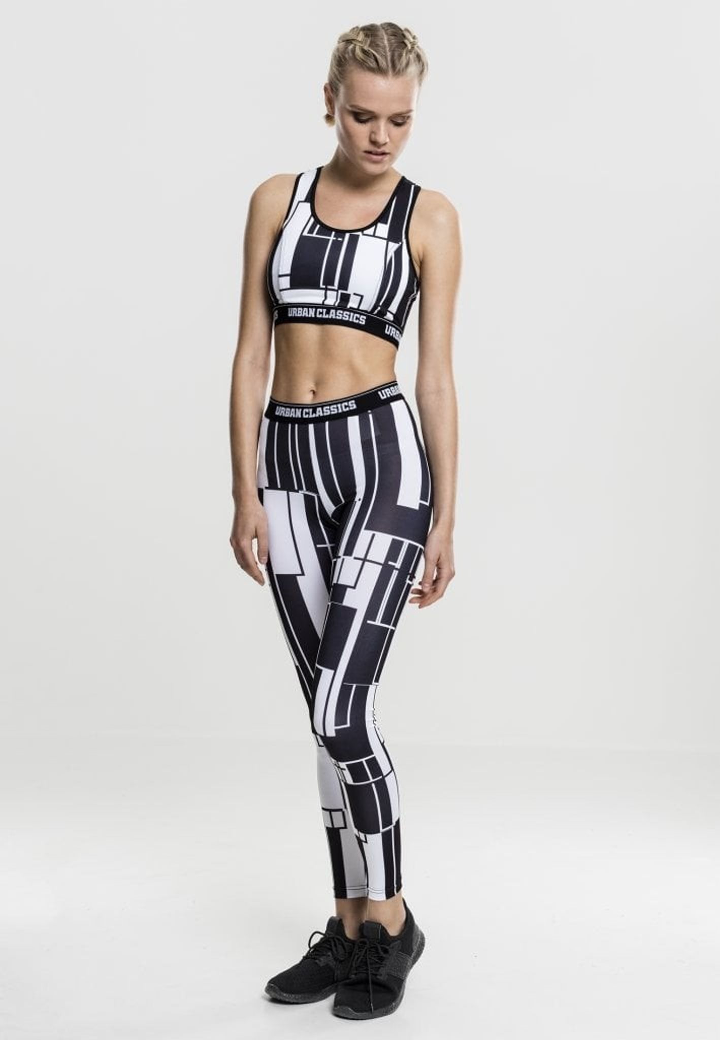 A stylish workout with graphic pattern in black and white. Under the bust you have a wide logo band that gives a good support and makes it comfortable to wear.