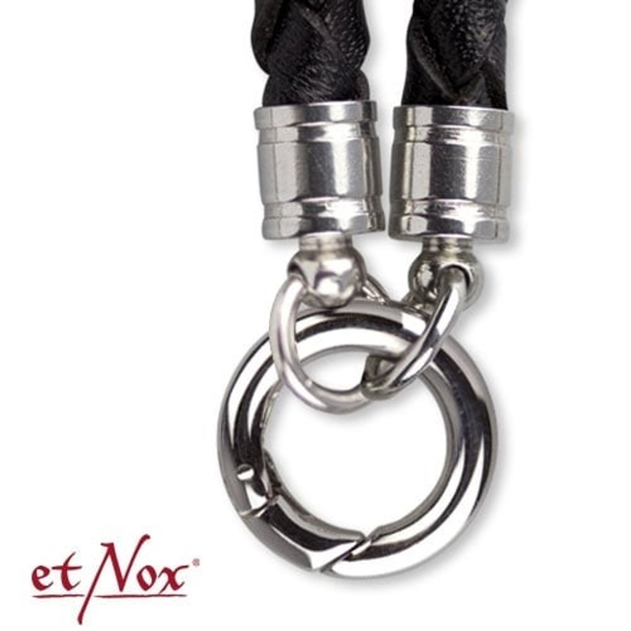 A necklace that is 6 mm thick and made of leather and stainless steel. On the round ring it is excellent to hang on a necklace. For example, SK4039.