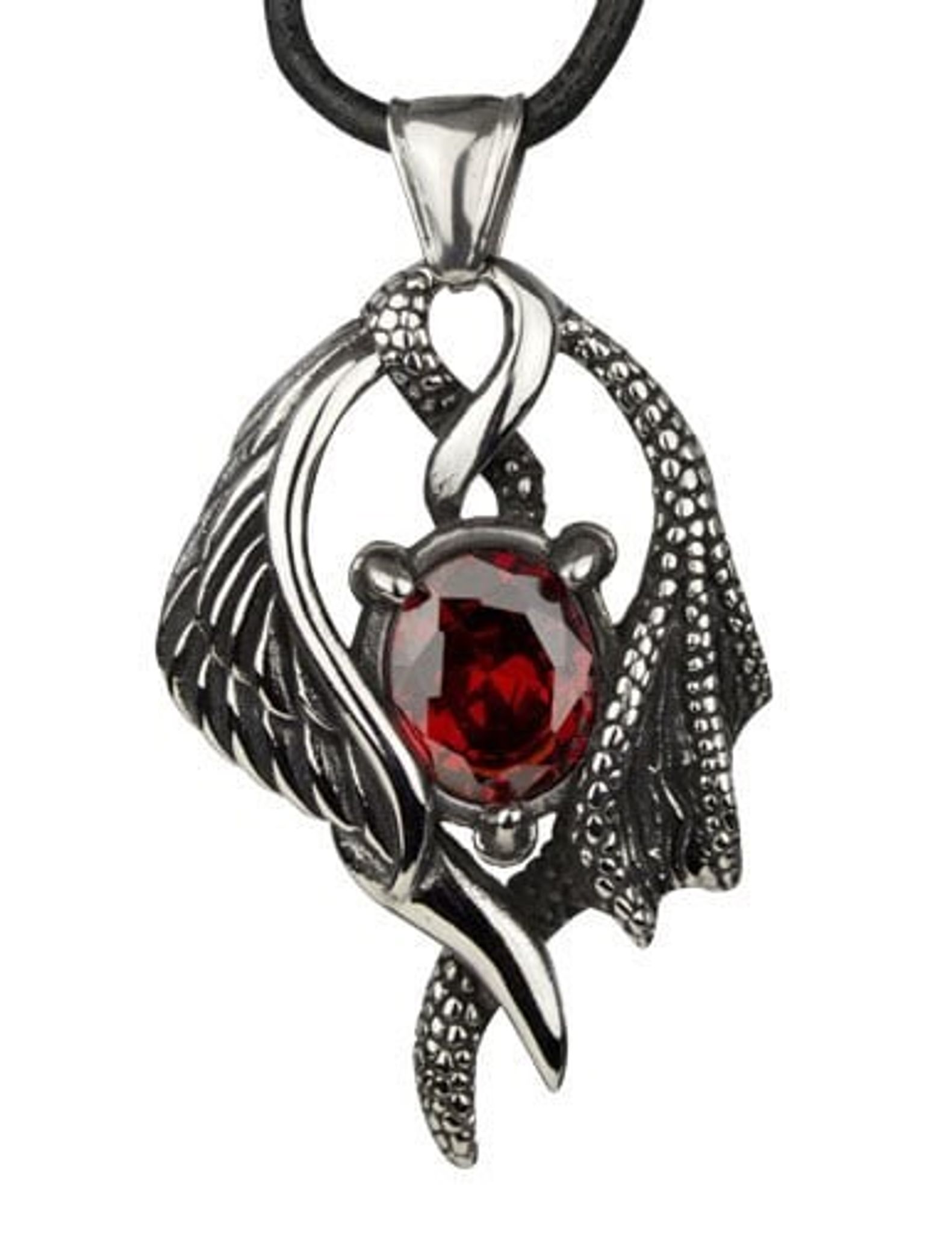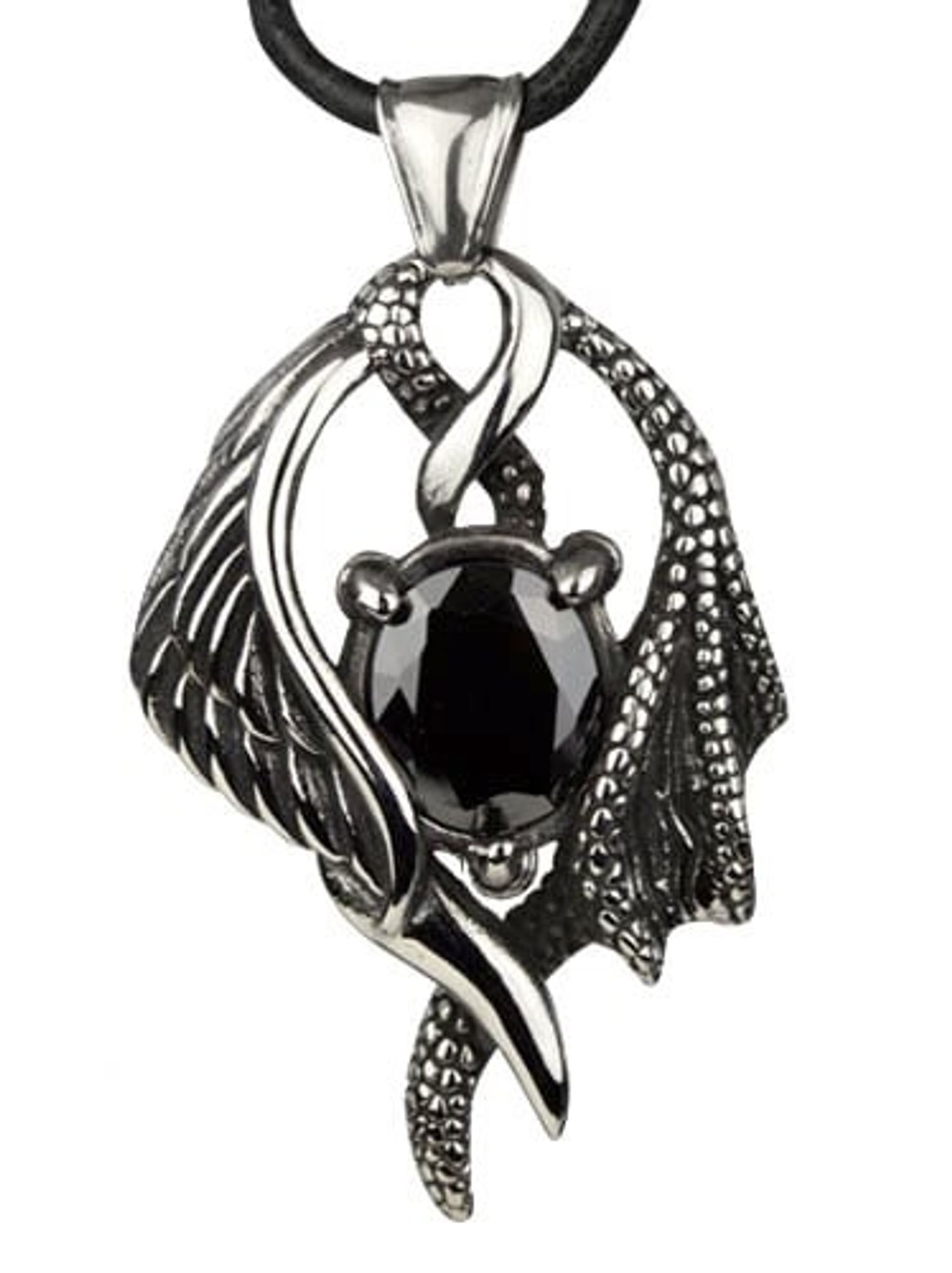 The necklace carries with it a deep symbolism of the balance between light and dark, and the two opposites that exist in each individual. The detailed demon wing and angel wing meet and intertwine in an artful way, symbolizing the eternal battle between heaven and hell that takes place within us all. In the midst of this meeting of contrasts, a zirconia stone in any color shines, highlighting the focus of the necklace and adding a touch of sparkling beauty.