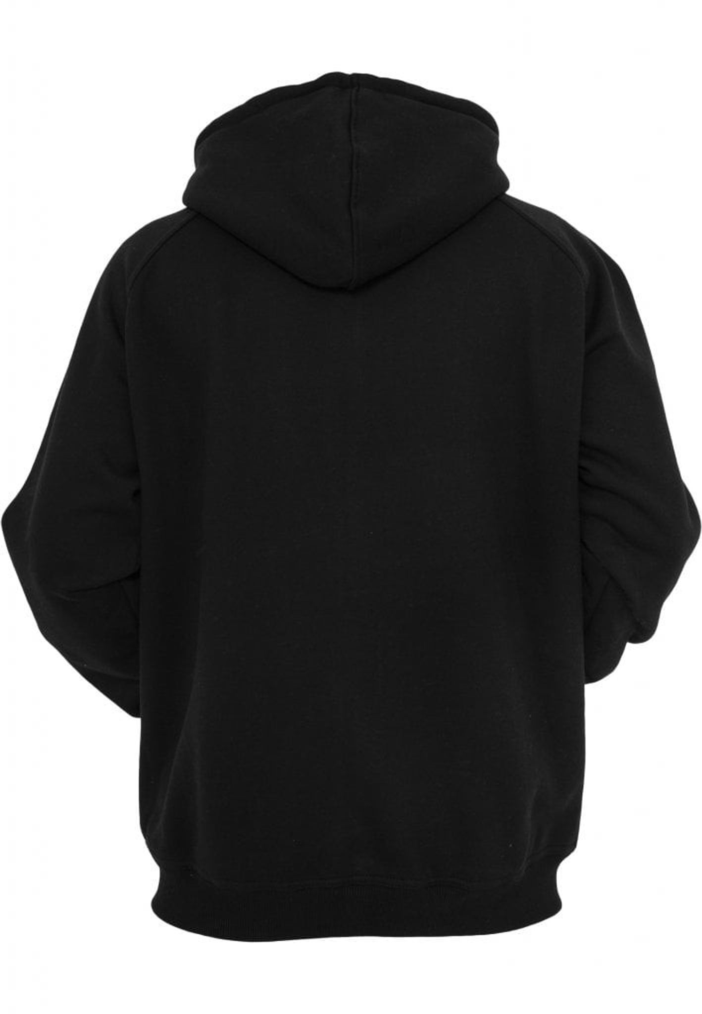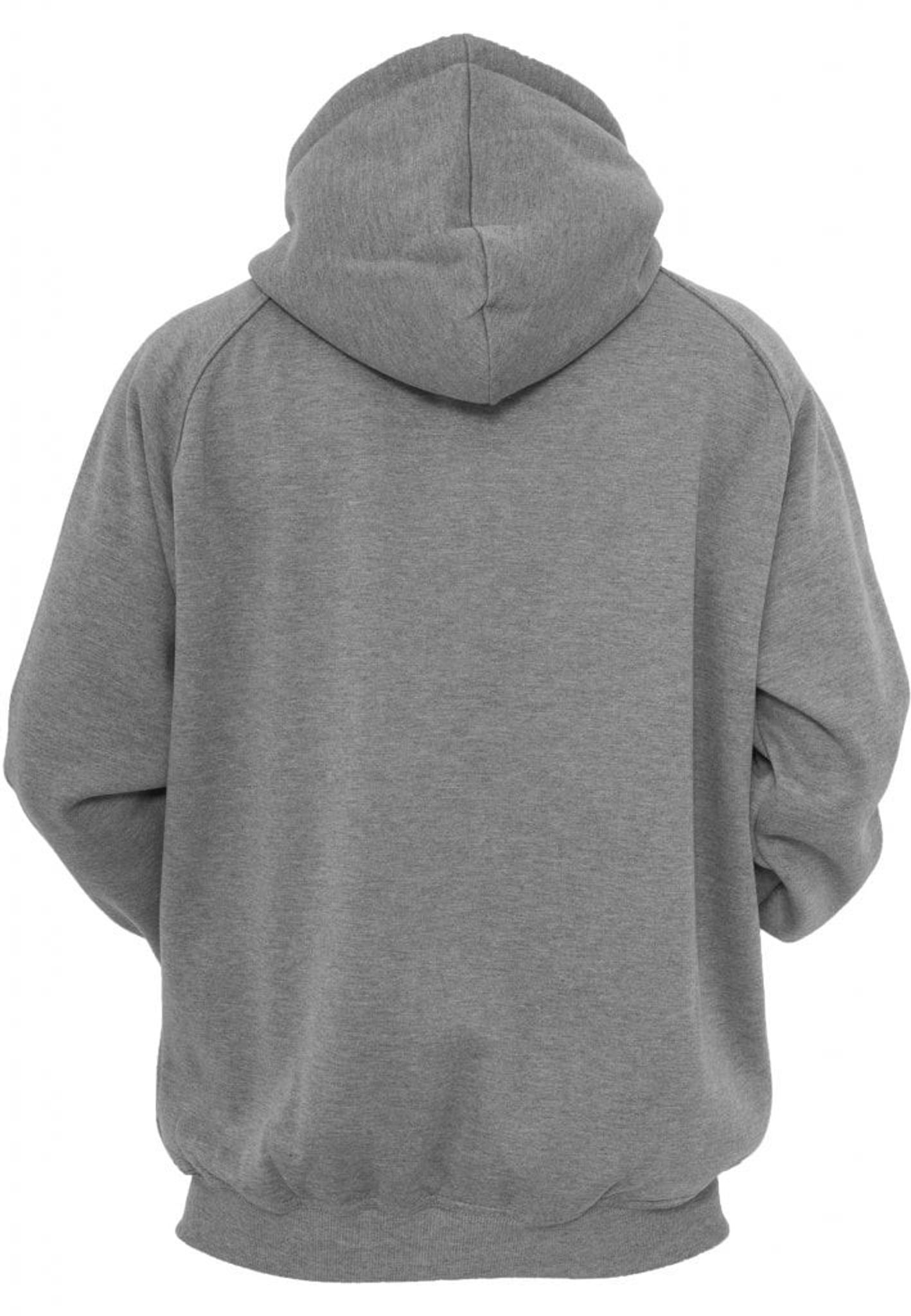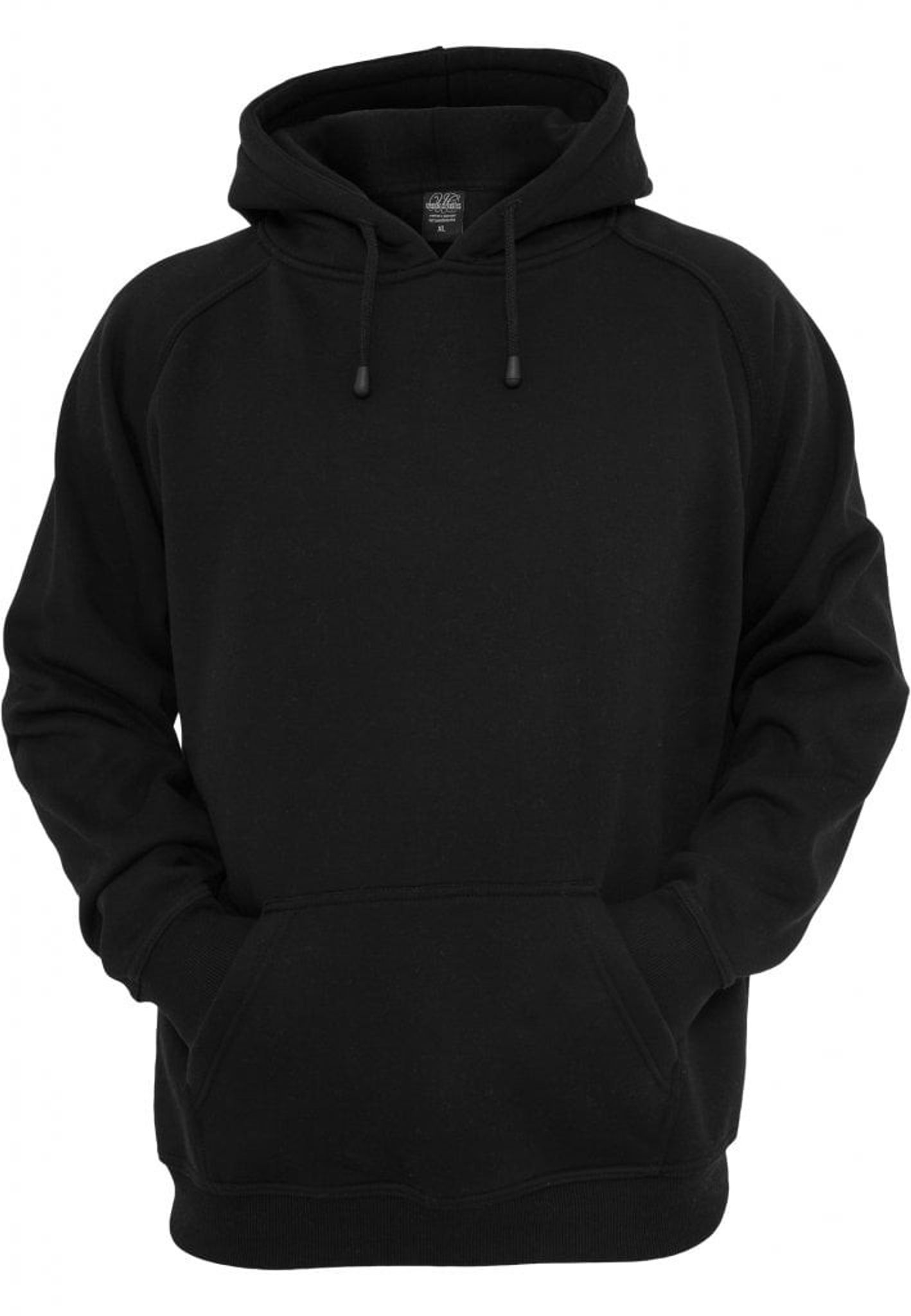 The hoodie ends with a cuff at the bottom and the armholes have a cuff.
