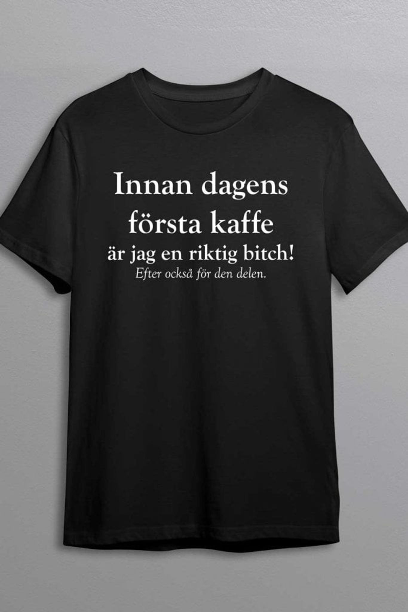 Vi alla känner den personen som inte fungerar utan sin morgondos av kaffe. Och om du inte känner den personen... kanske det är du? Introducerar den perfekta t-shirten för alla kaffeälskare med en twist av humor: "Innan dagens första kaffe är jag en riktig bitch! Efter också, för den delen."
