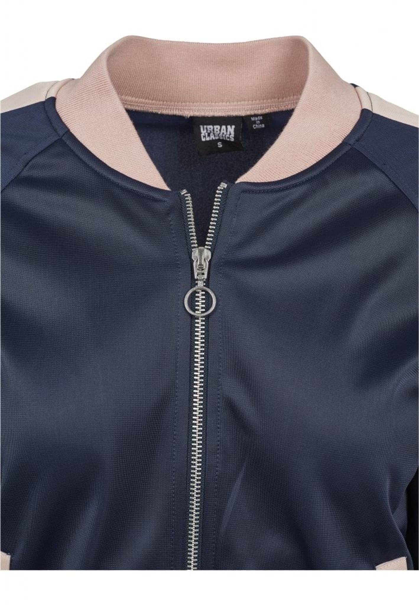 A waist short jacket that closes with a zipper at the front and has a collar in college style.