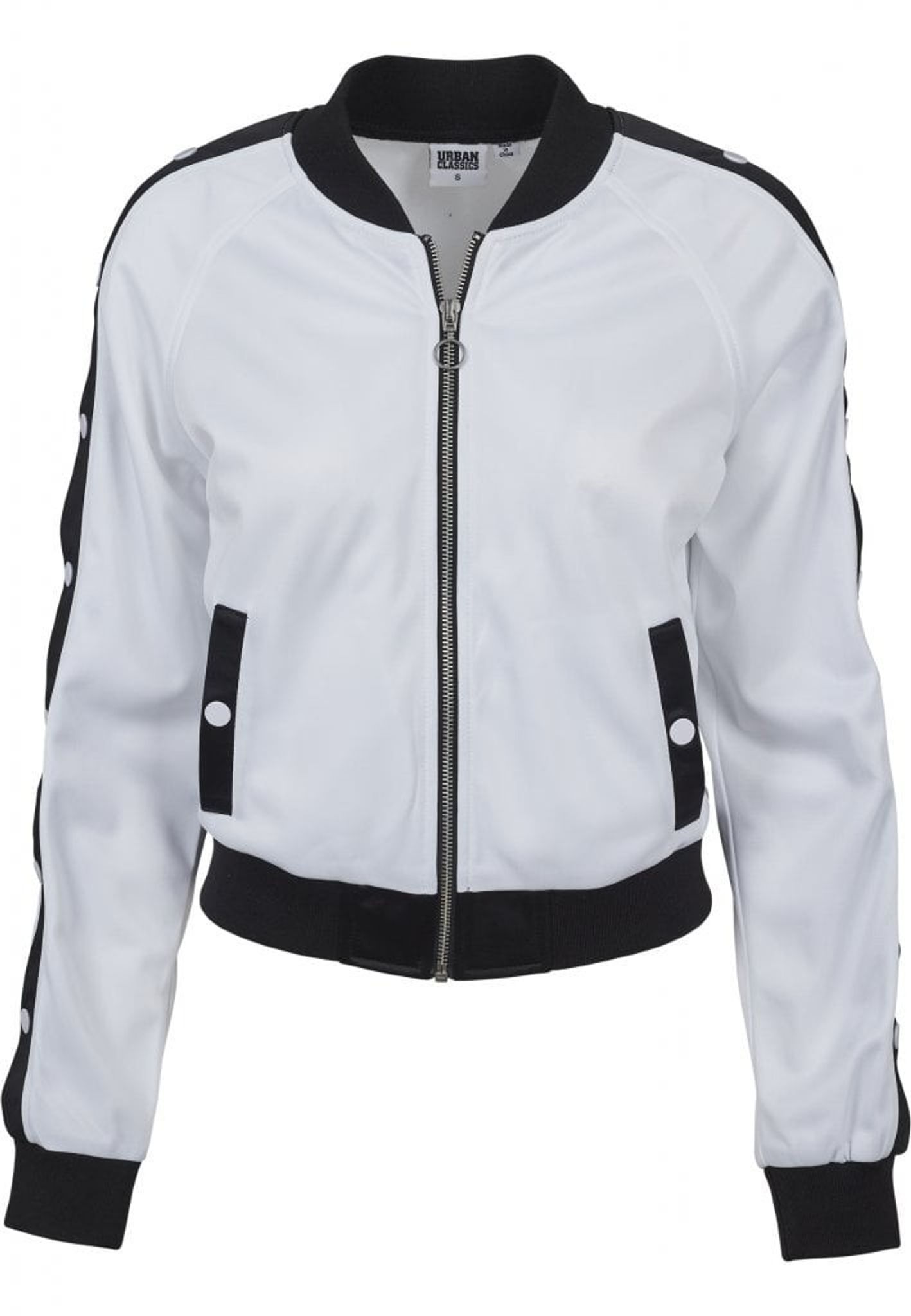 Jacket with push buttons on the arms of the lady