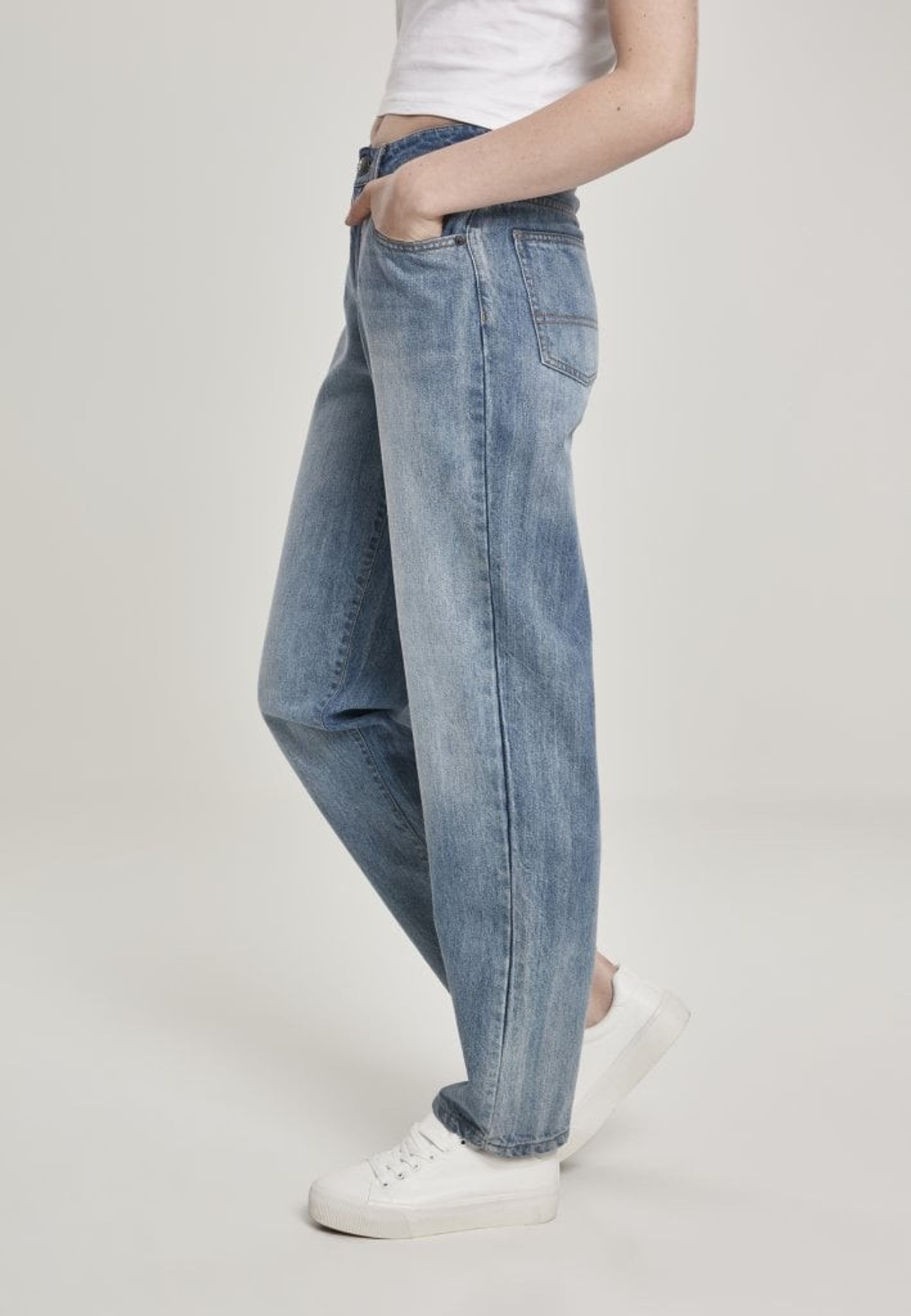 The length of the jeans is to the ankle and the pants have five pockets.