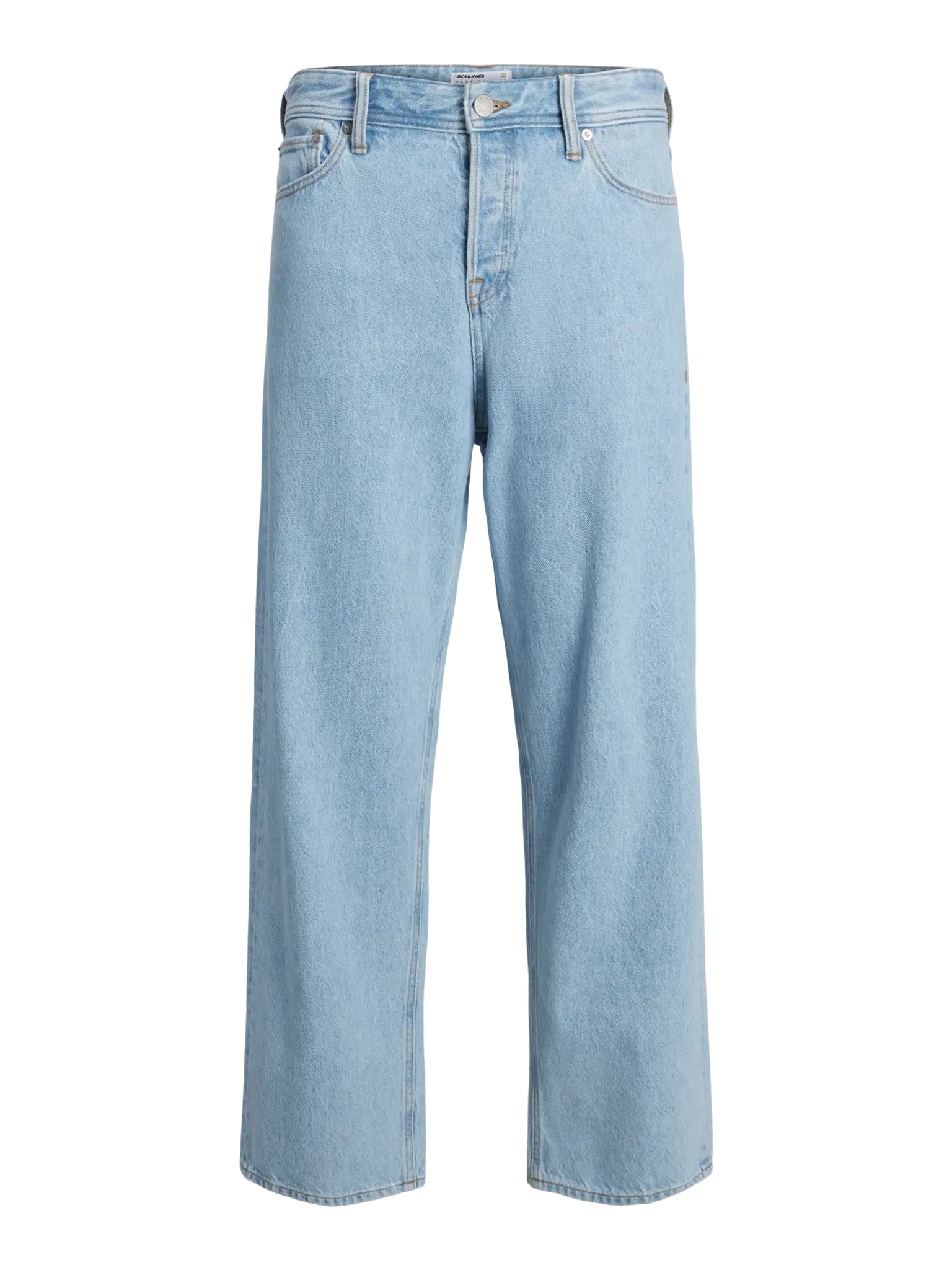 Passformen är lös över lår, knän och benslut, vilket skapar en ledig silhuett med maximal rörelsefrihet. Den ljusblå denimfärgen är behandlad med stonewash som ger ett blekt och välanvänt uttryck – perfekt för en modern vintageinspirerad stil.