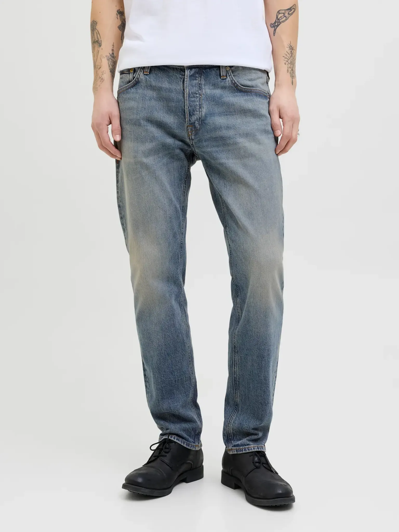- Tvätt/Finish: Stonewash för en blekt, sliten look