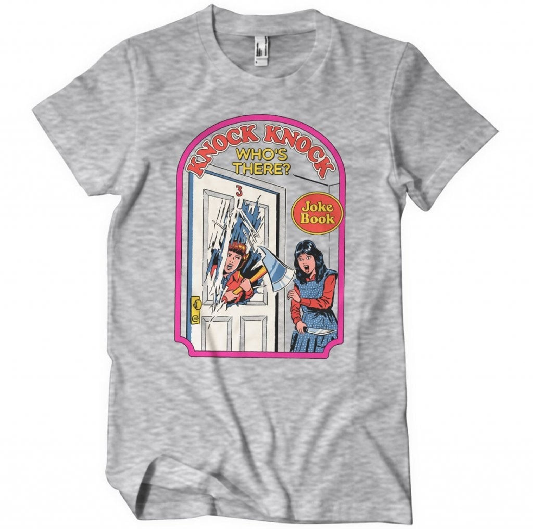 Steven Rhodes gives a new and morbid twist to the classic knock-knock joke with his work "Knock Knock Who's There?". This humorous "joke book" cover depicts an ominous figure literally bursting through the door like Johnny from the cult film The Shining, giving a new and literal meaning to the otherwise innocent introduction to a joke.