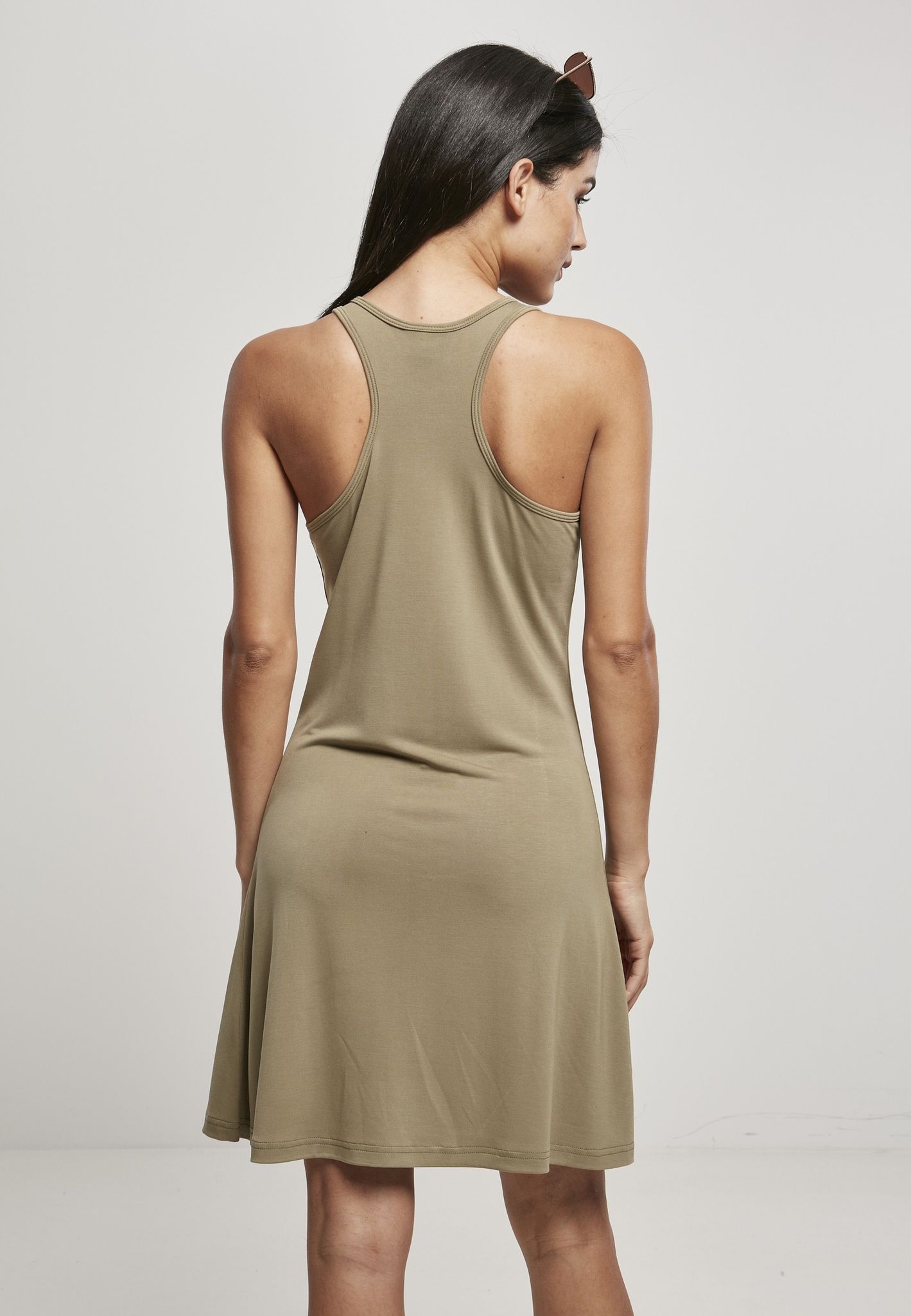 In the back is a cut that makes the shoulders bare, which gives the dress a sporty look.