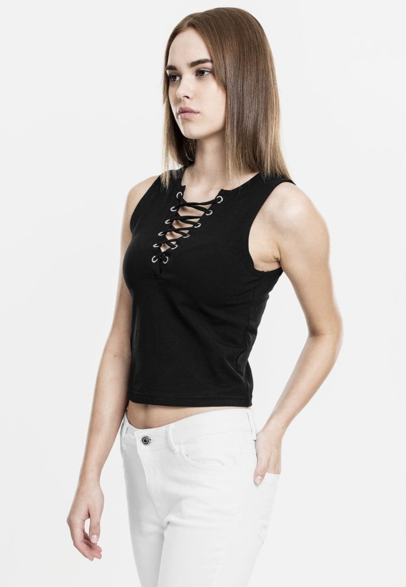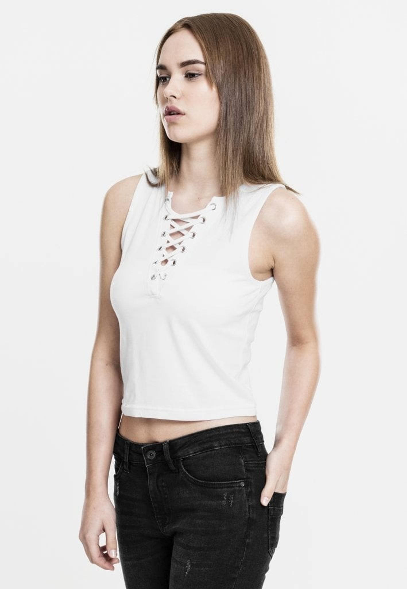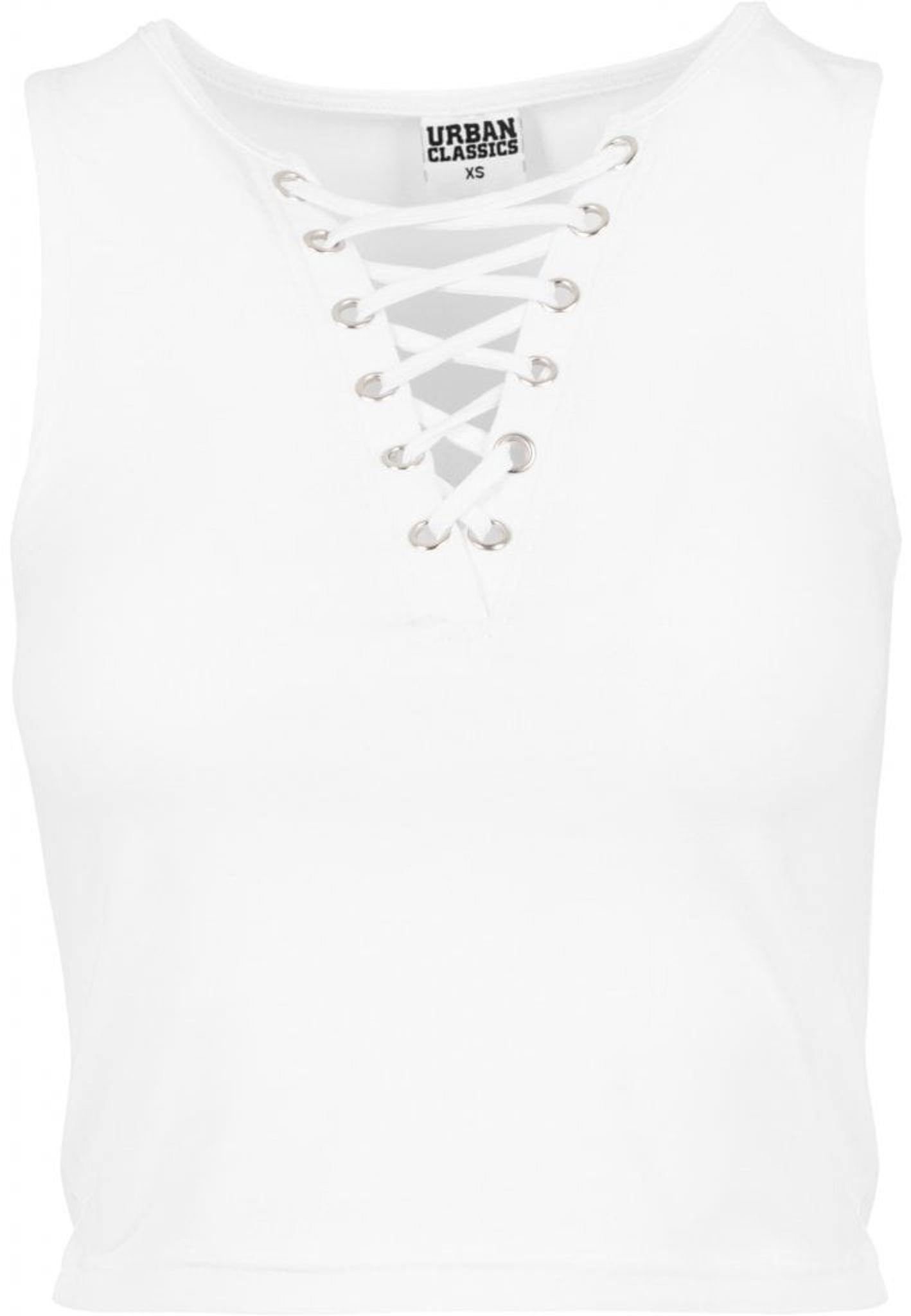 A short top with a braided lacing at the front.