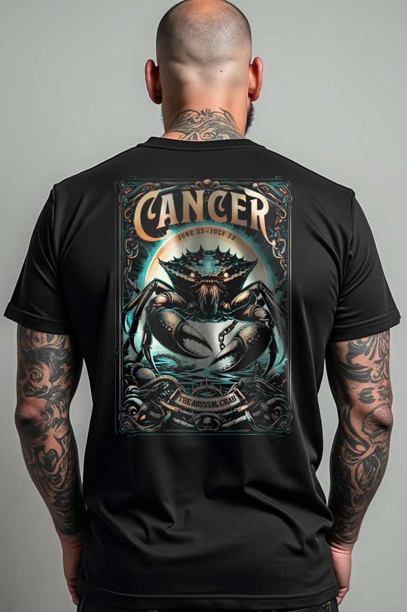 Bär ditt stjärntecken med stolthet – denna Kräfta T-shirt herr är skapad för dig som är född i känslornas och intuitionens tecken: Cancer. Ett vackert och detaljrikt tryck med texten "Cancer – The Abyssal Crab" ger tröjan en mystisk och kraftfull aura, perfekt för dig som rör dig mellan djupa emotioner och lojalitetens landskap.