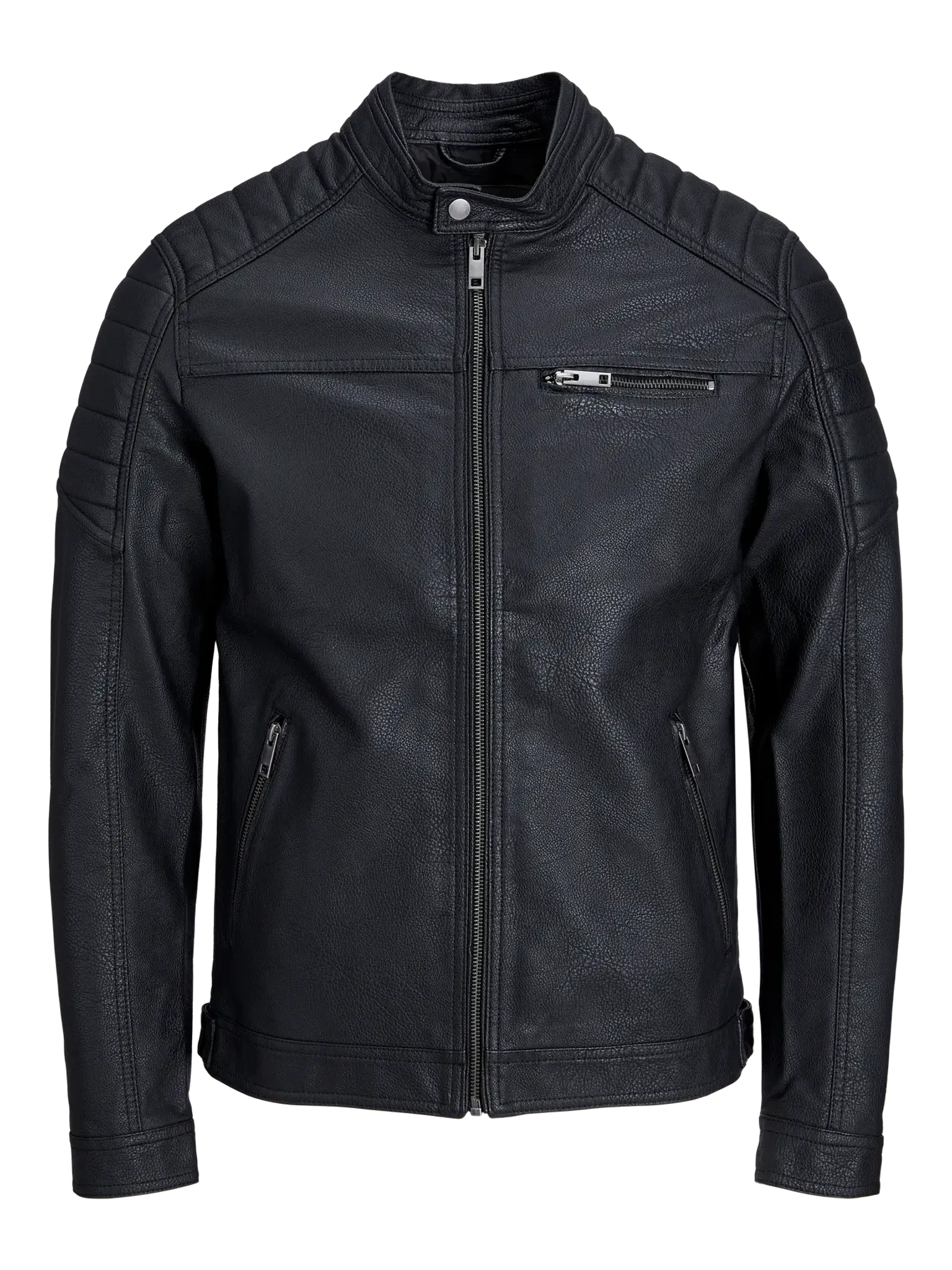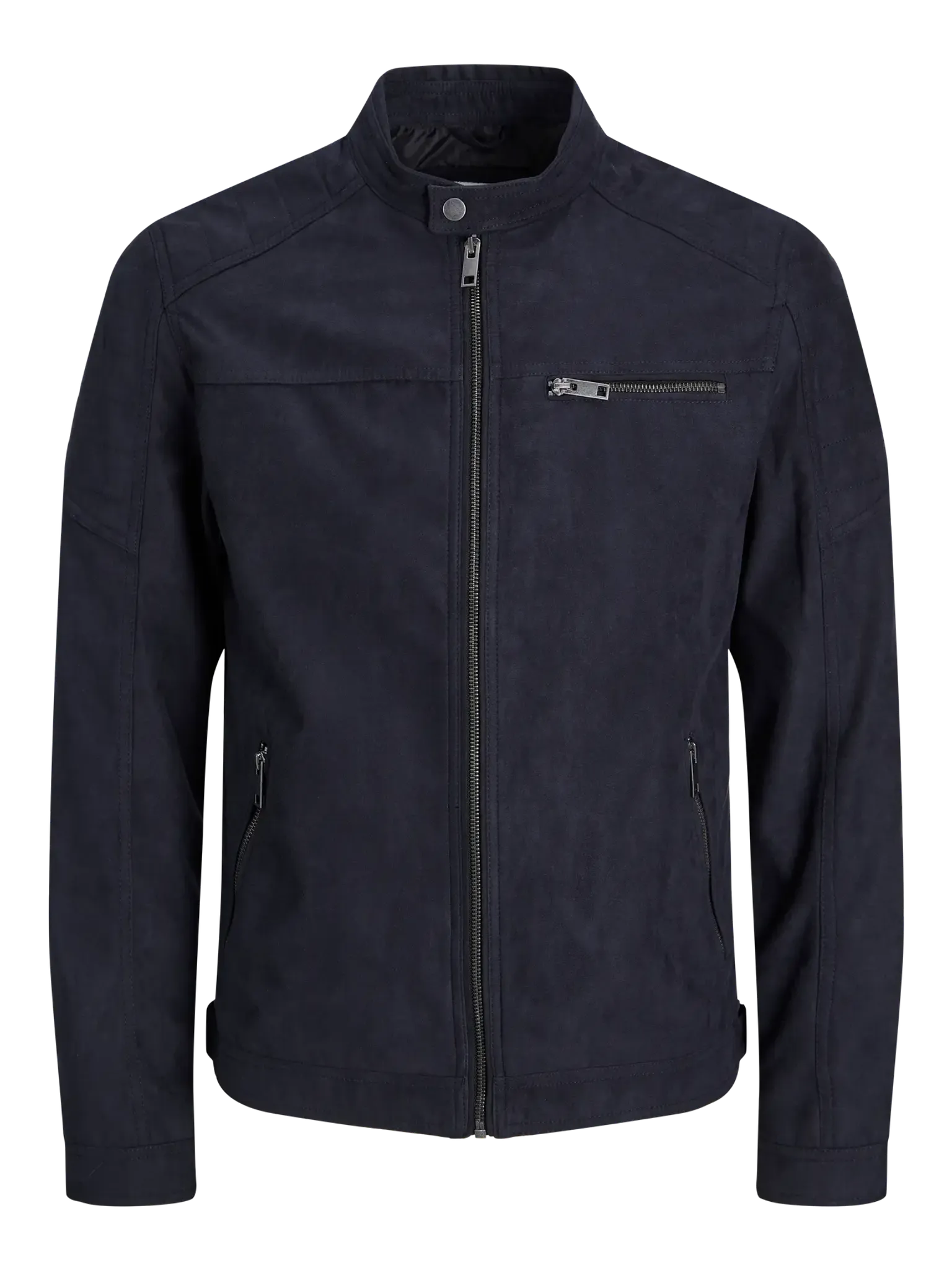 Denna jacka med bikerkrage är en stilren och praktisk lösning för vardagsbruk. Den har en modern design som passar bra i olika miljöer.