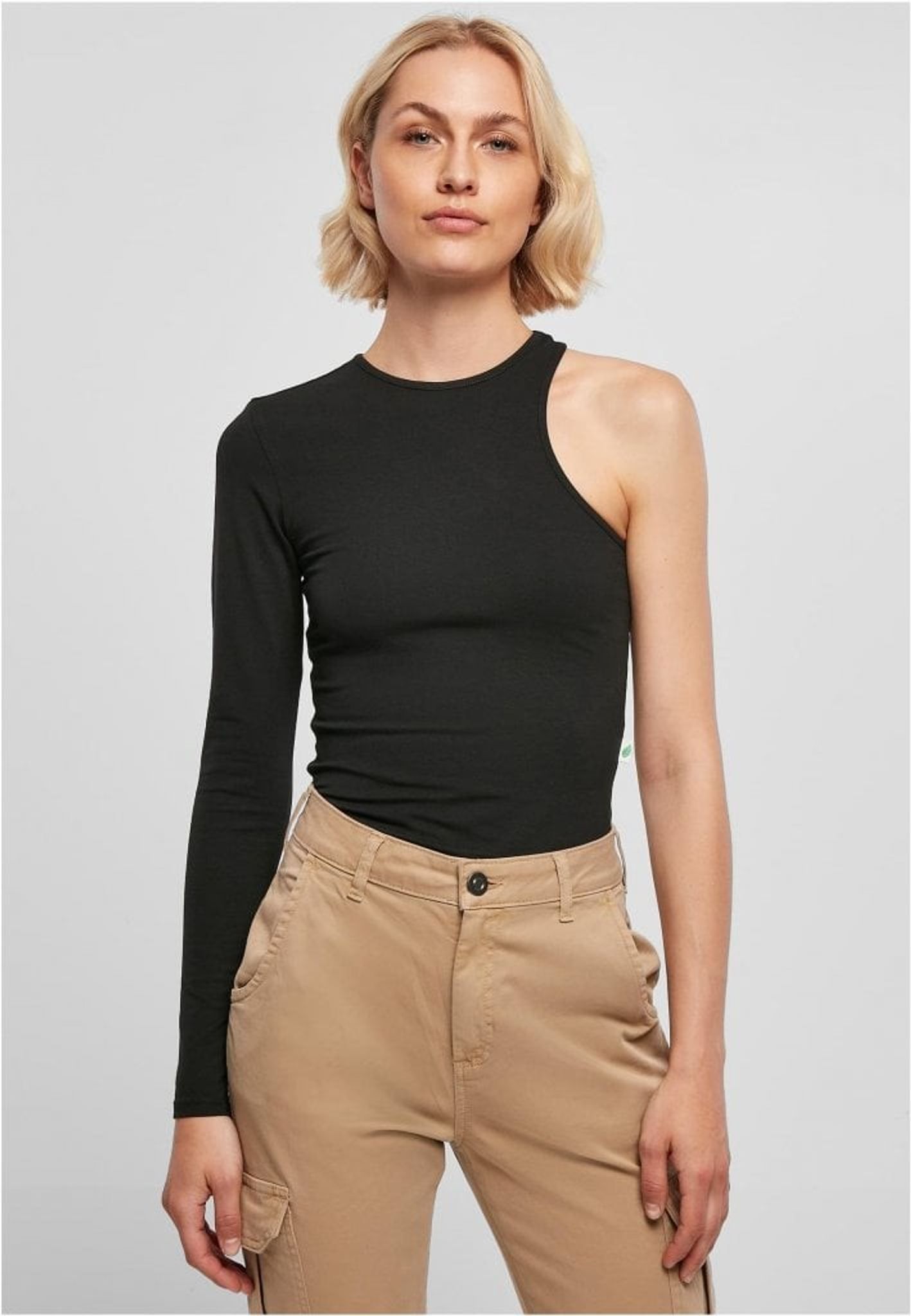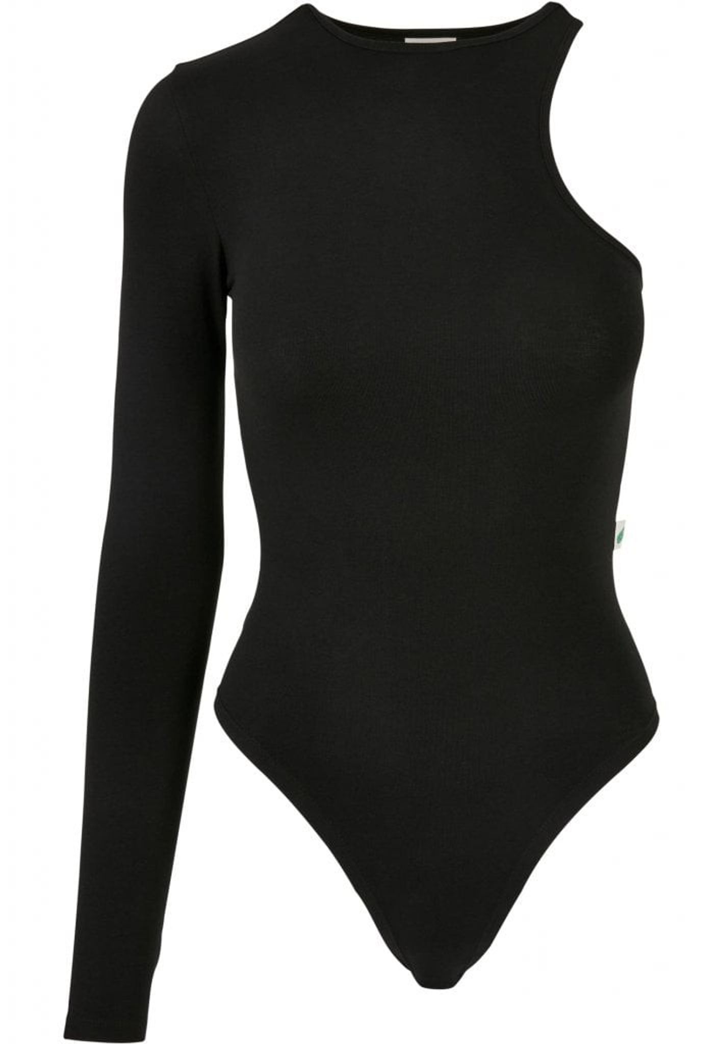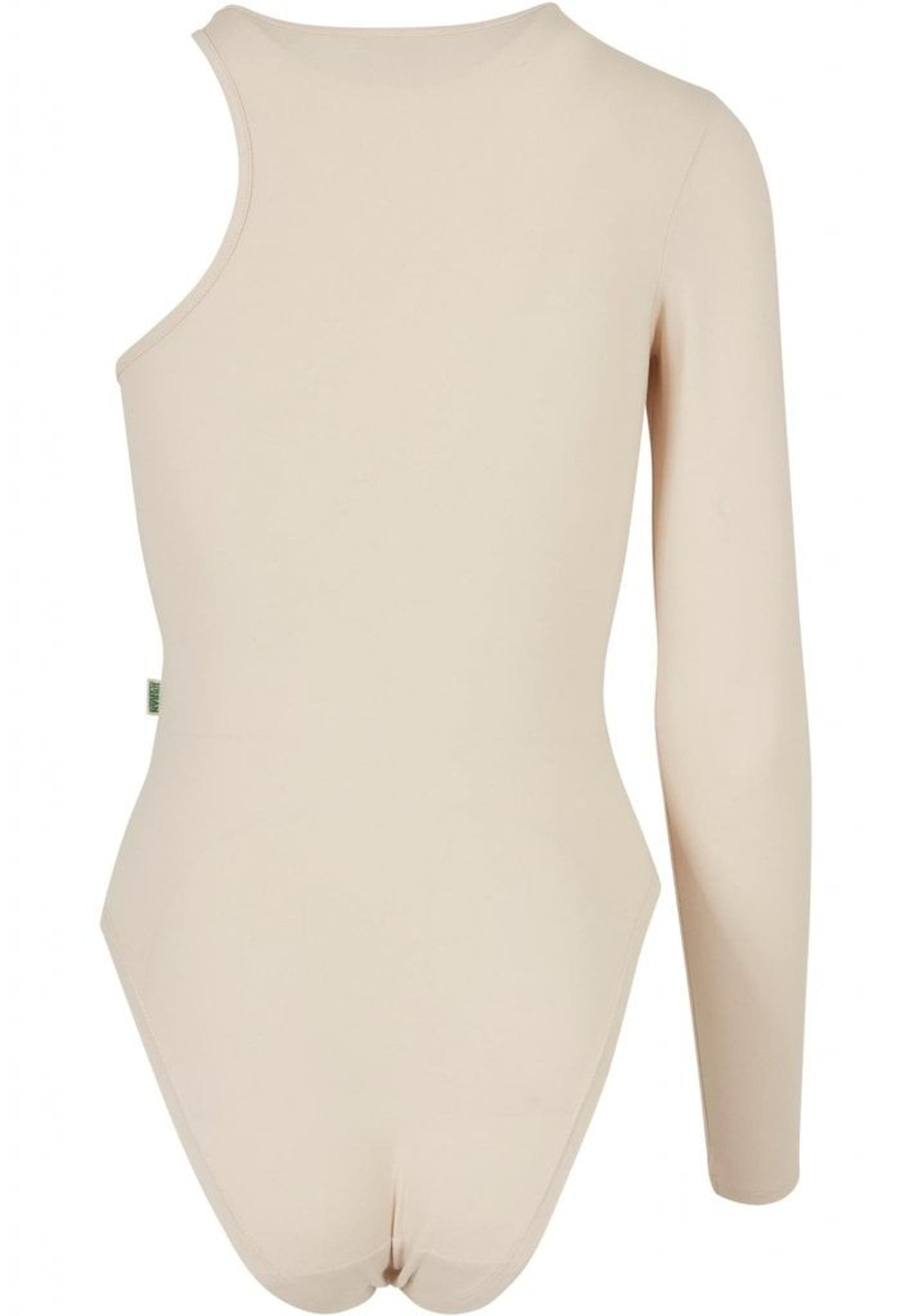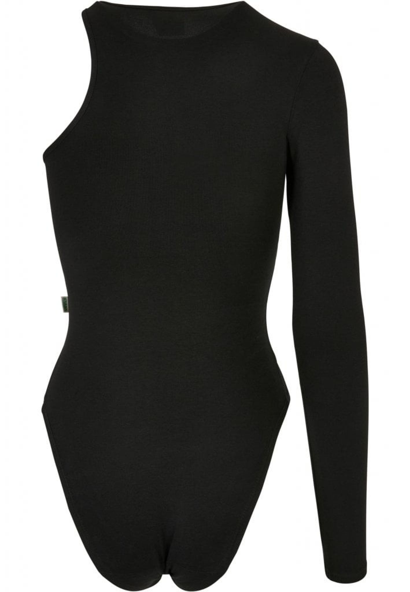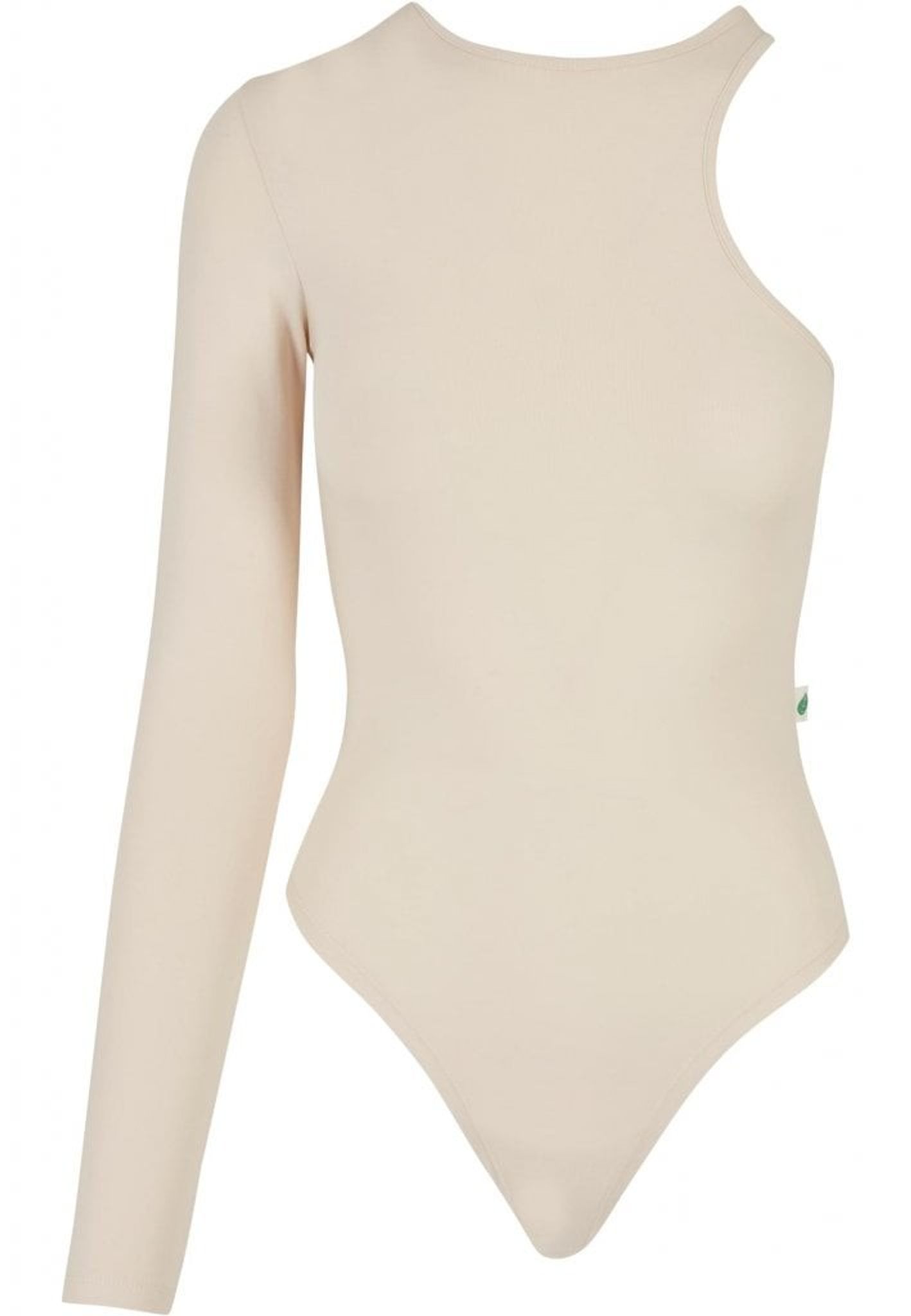 Off-the-shoulder racerback style bodysuit with a contrasting long sleeve on the other side makes this bodysuit a trendy statement. It has a round neck, is slim and made from comfortable organic cotton stretch jersey and elastane. The body is in one piece and fastens easily with metal snaps in the crotch.