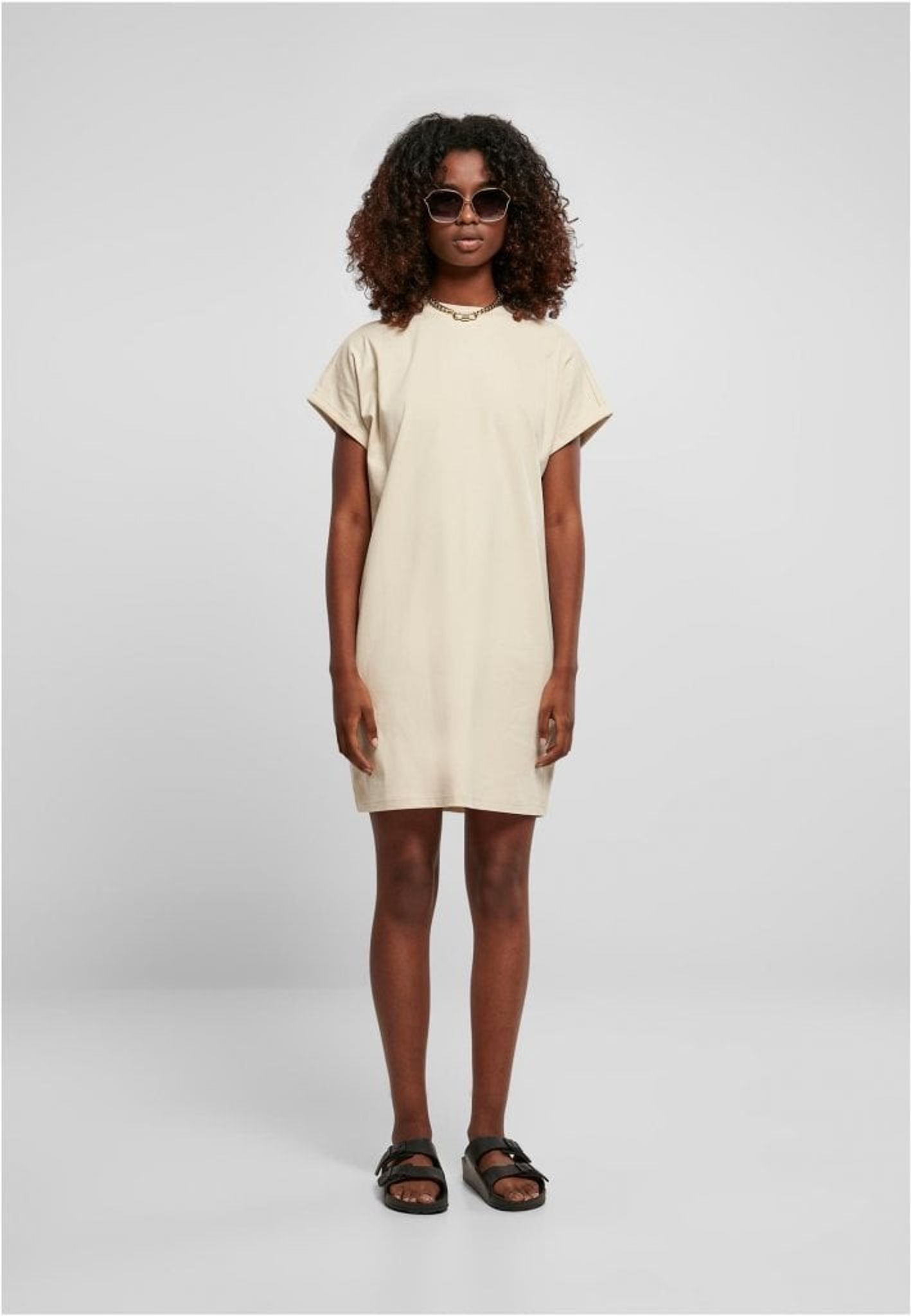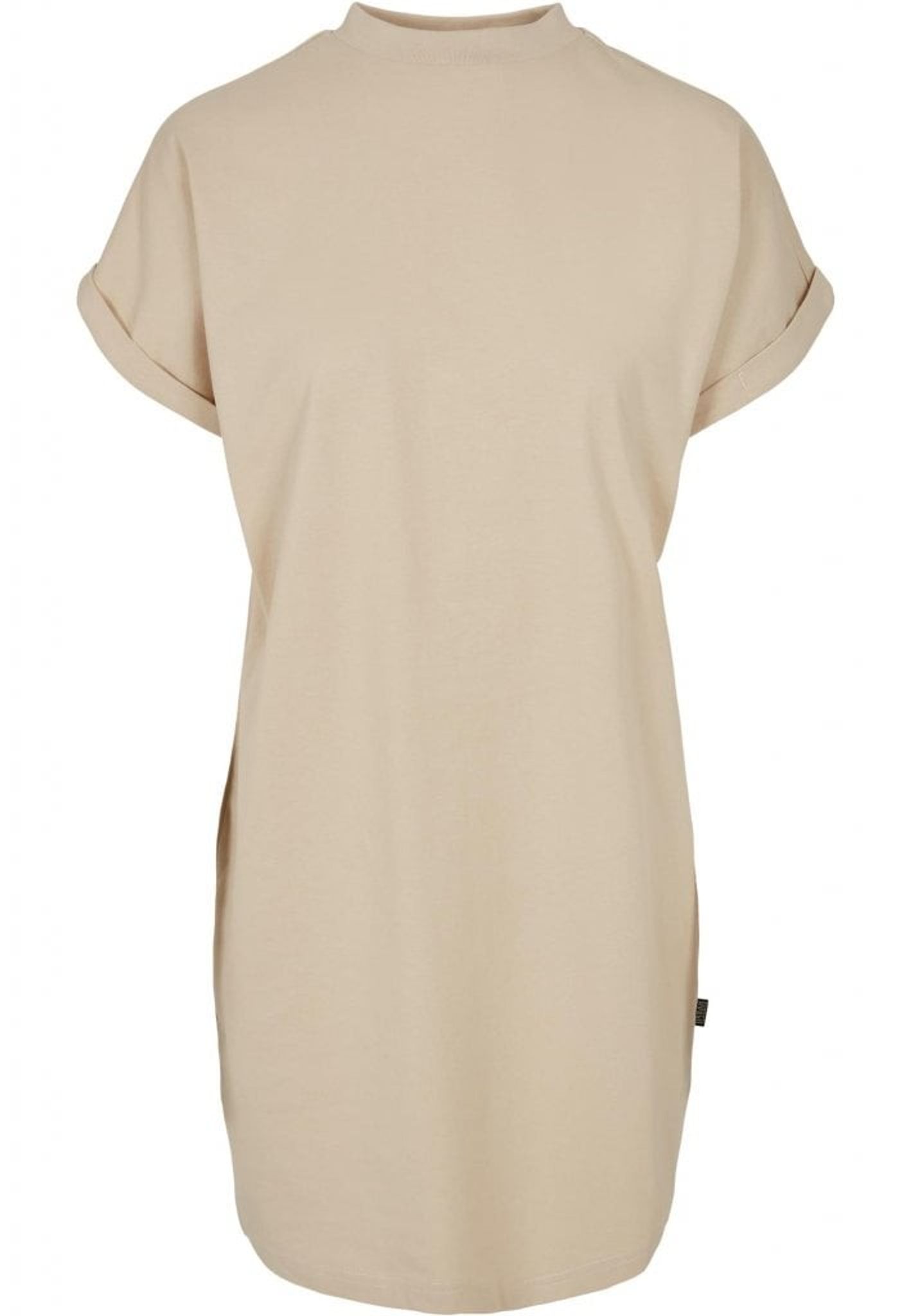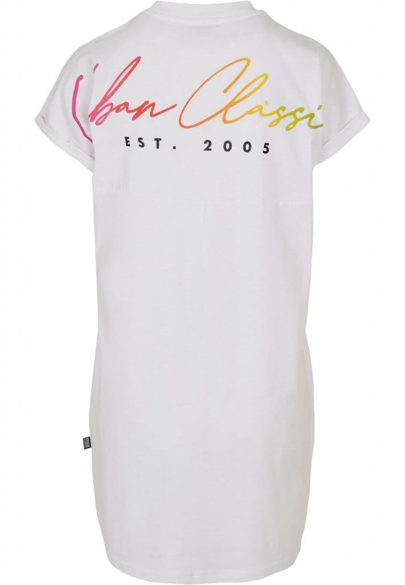 A stylish summer dress with rolled-up T-shirt sleeves and large print over the shoulders with Urban Classic's rainbow logo.