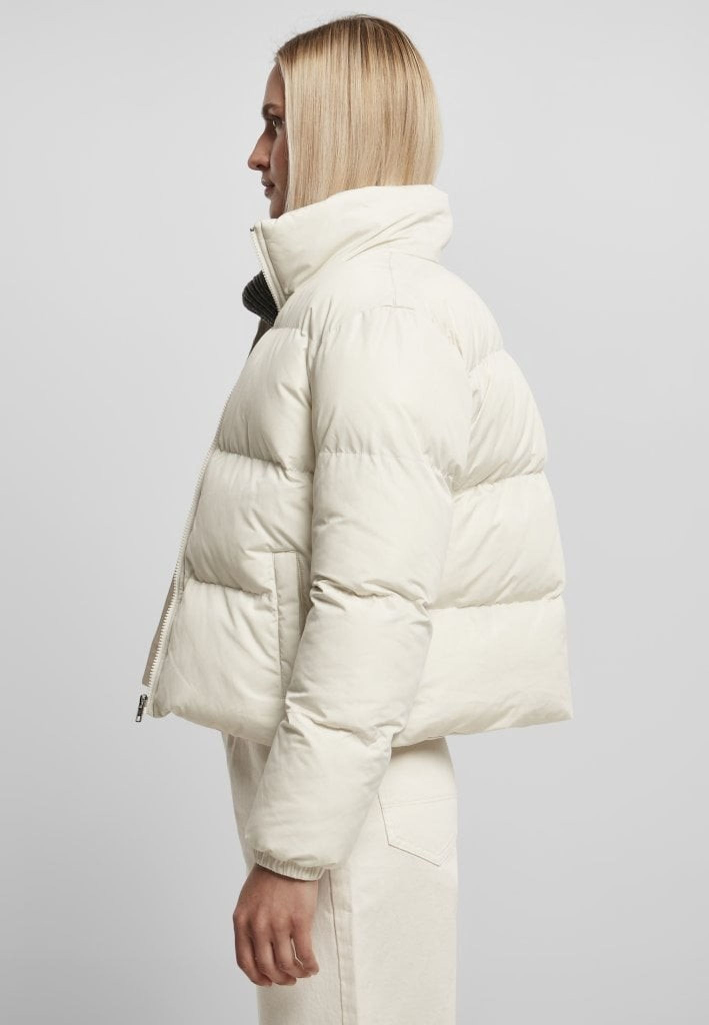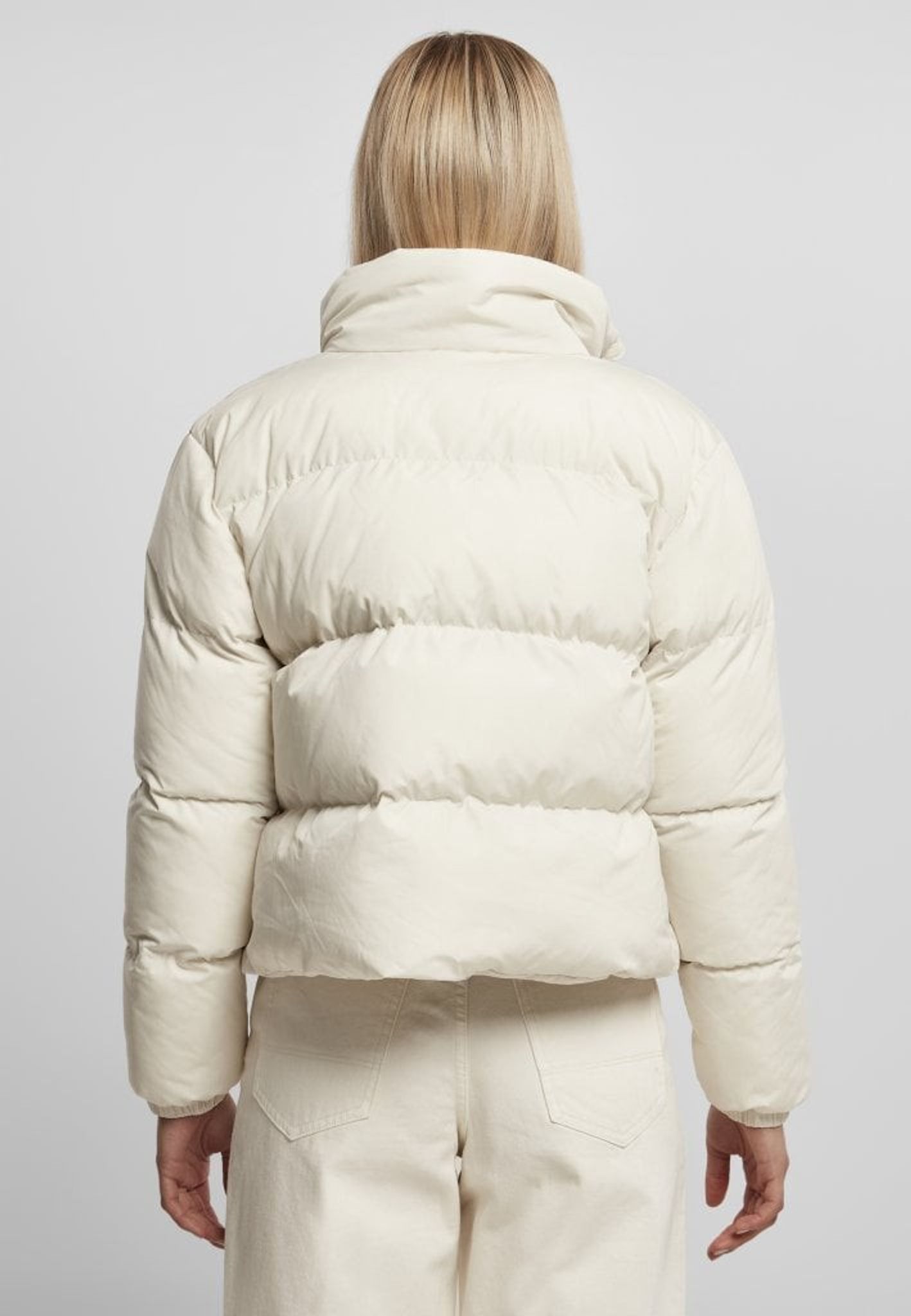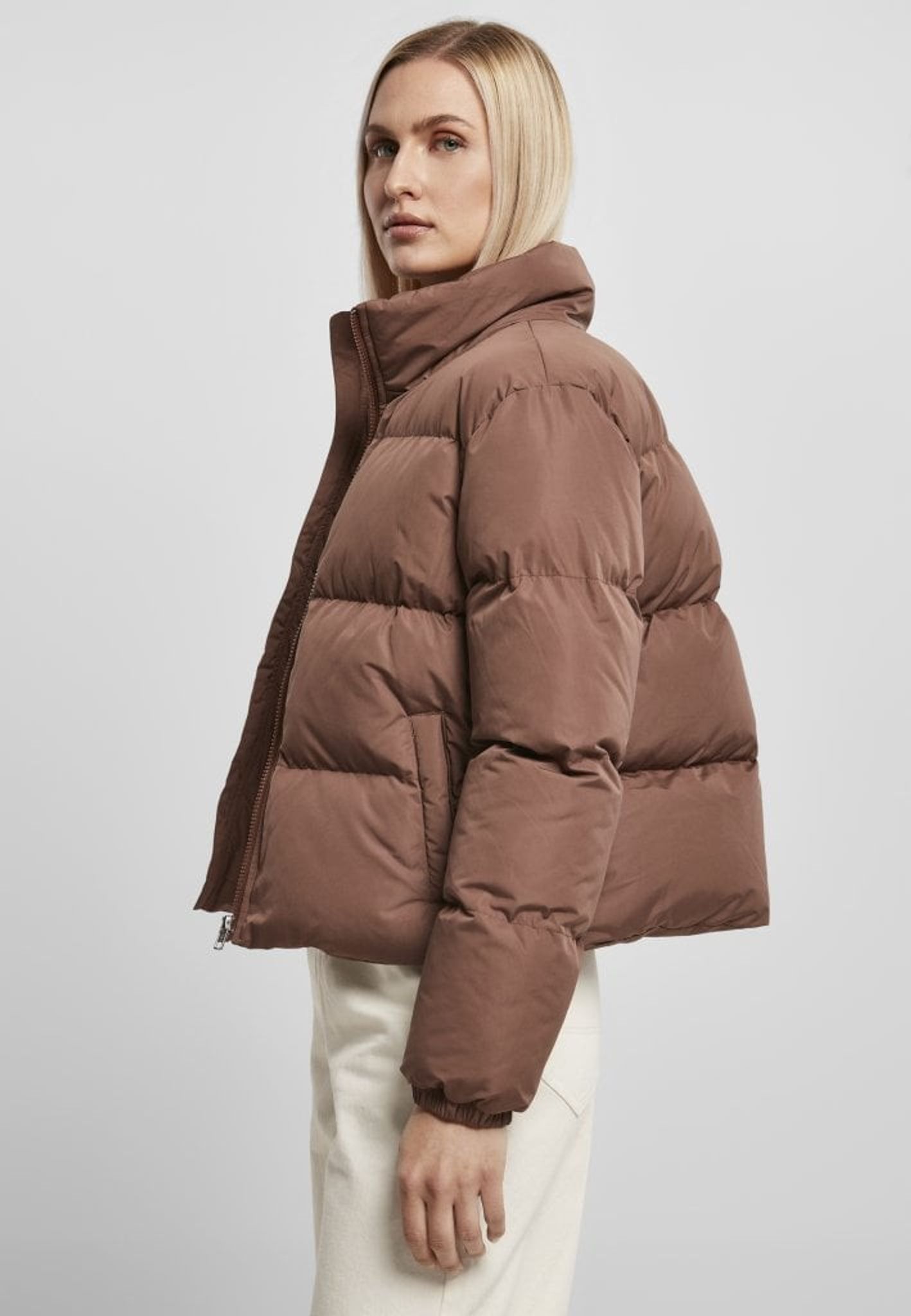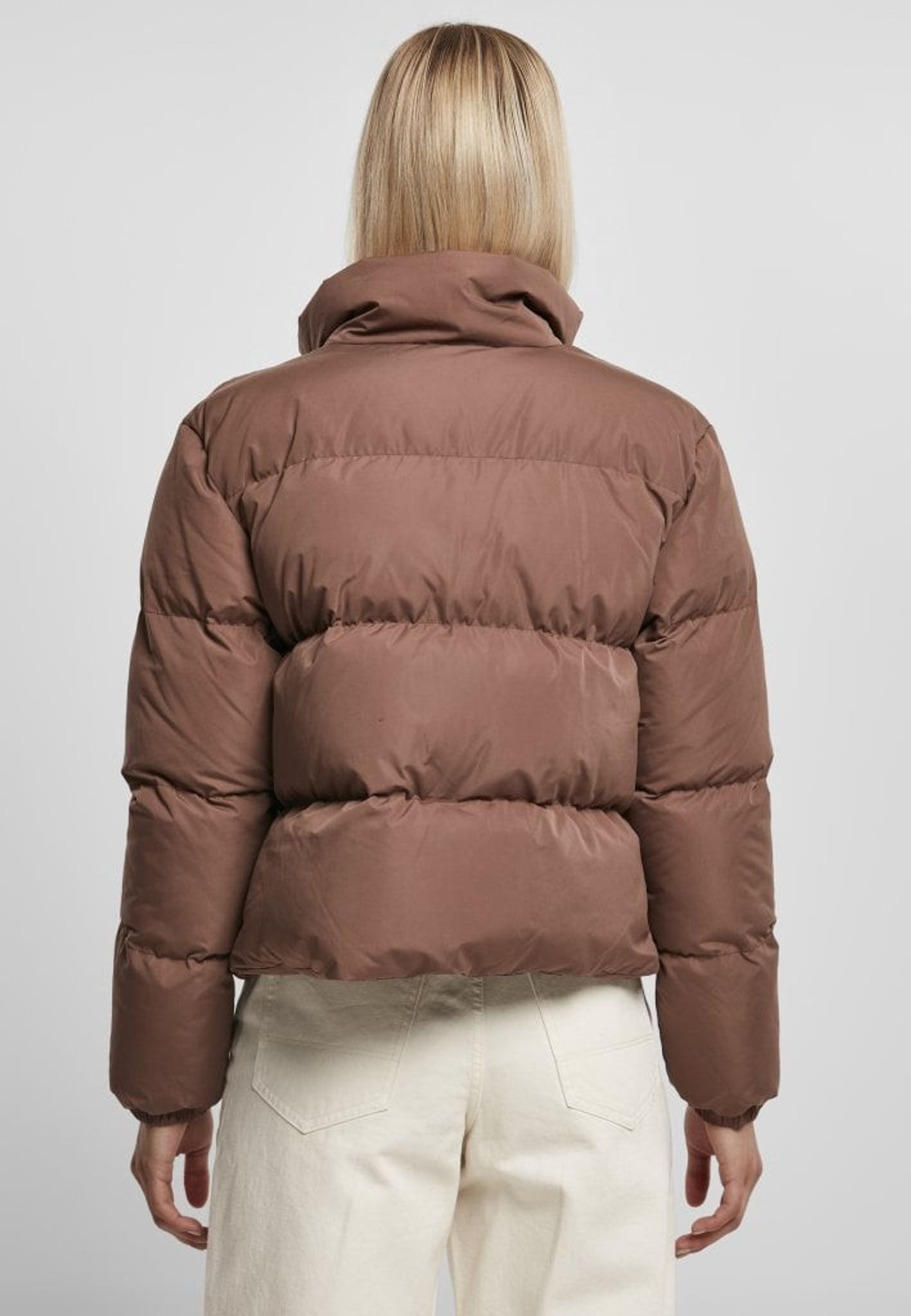 Ladies Short Peached Puffer Jacket.