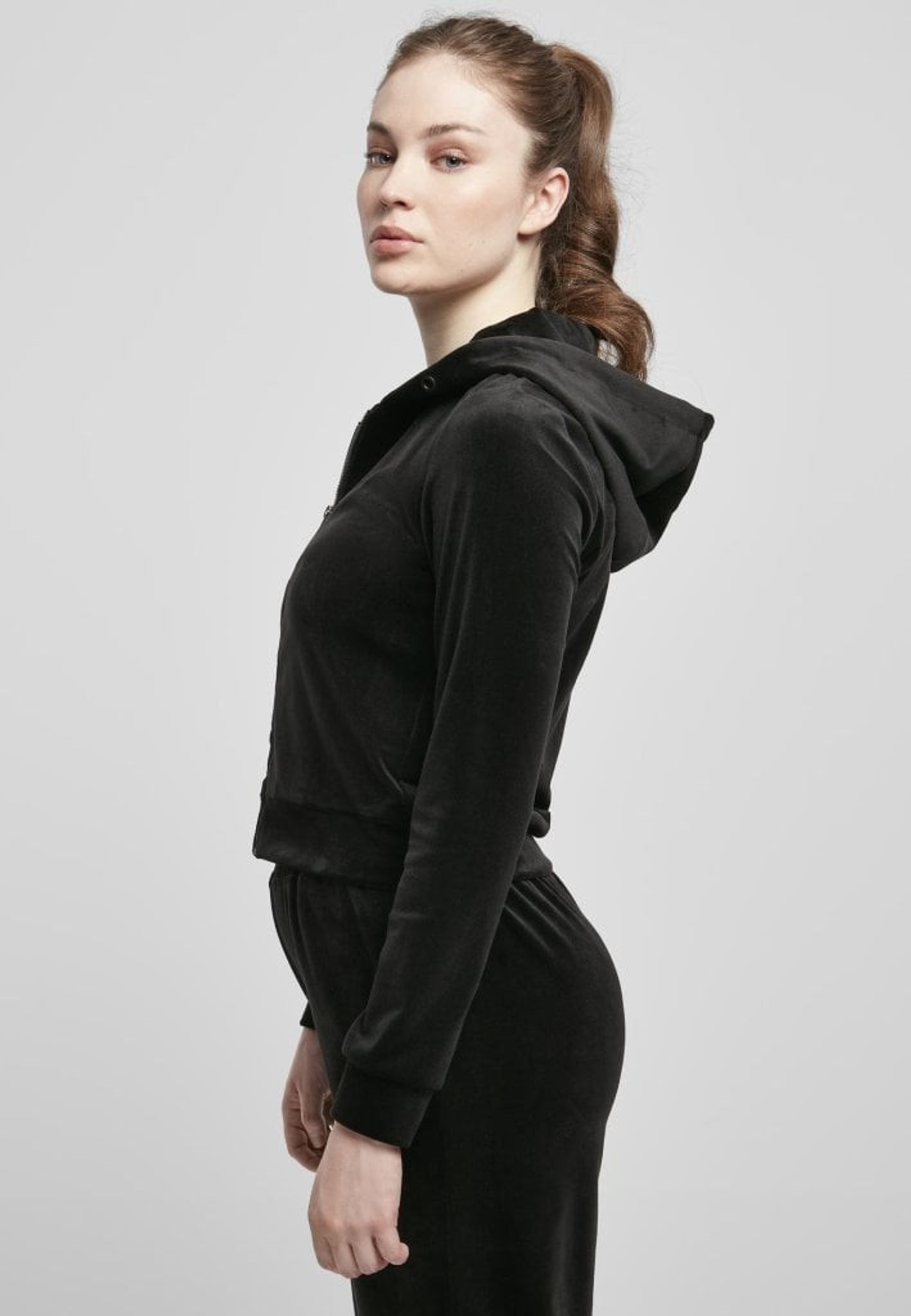 Ladies Short Velvet Zip Hoody