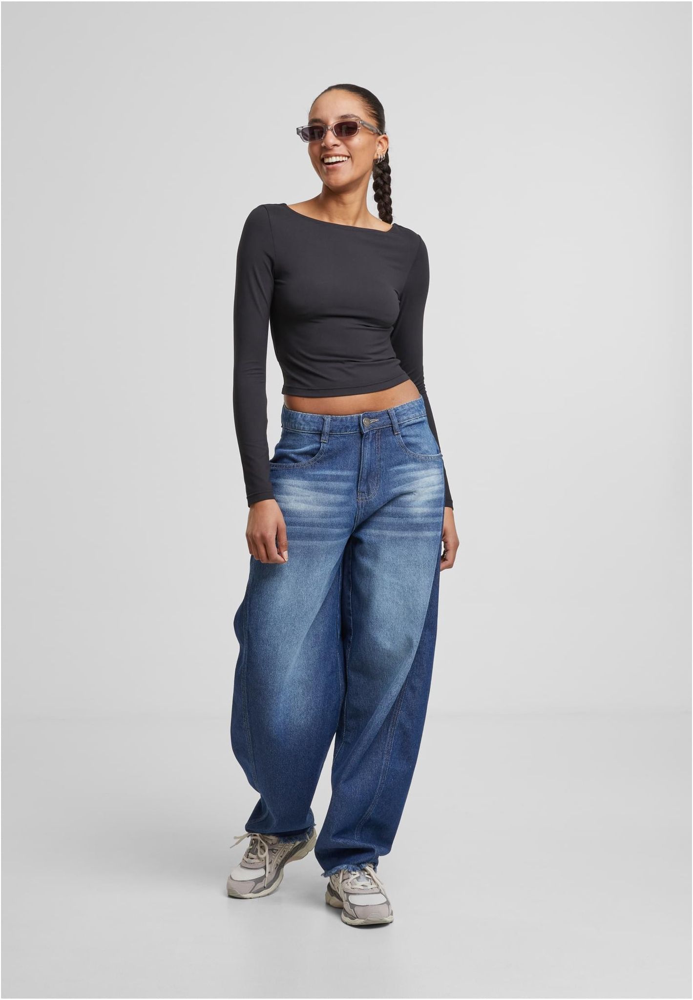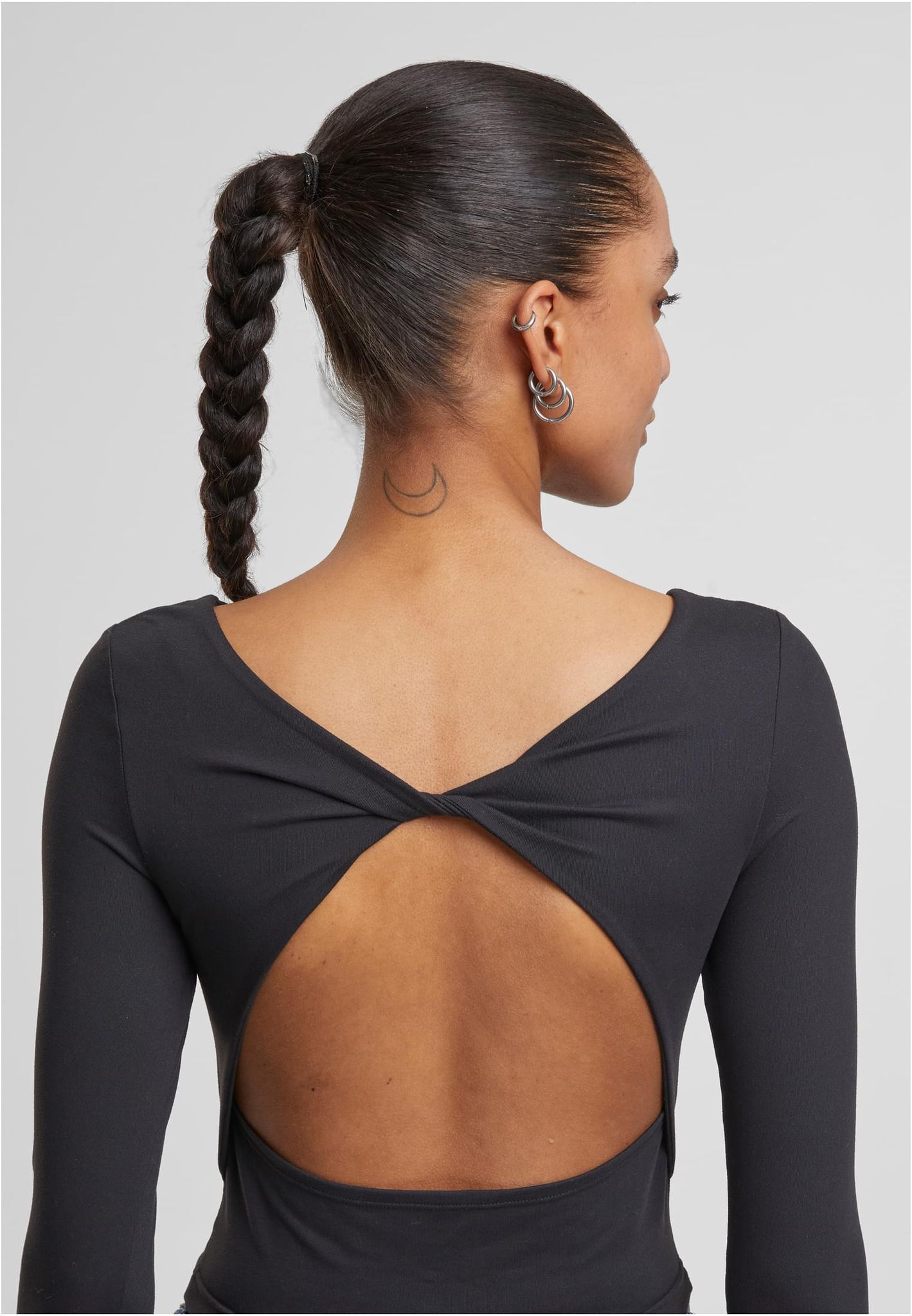 Ladies Slim Fit Longsleeve öppen rygg T-shirt för dam – svart