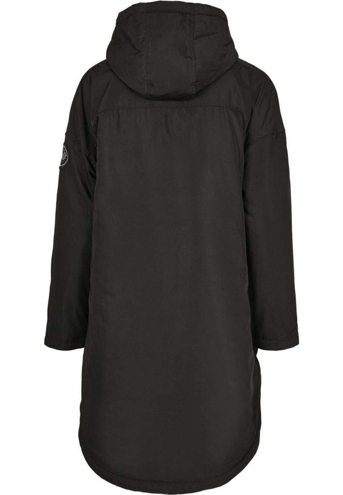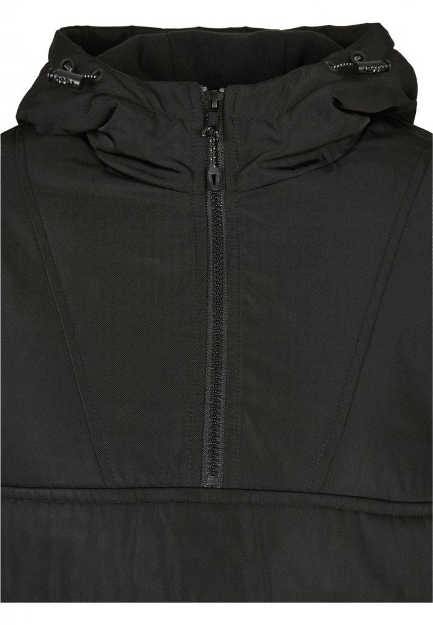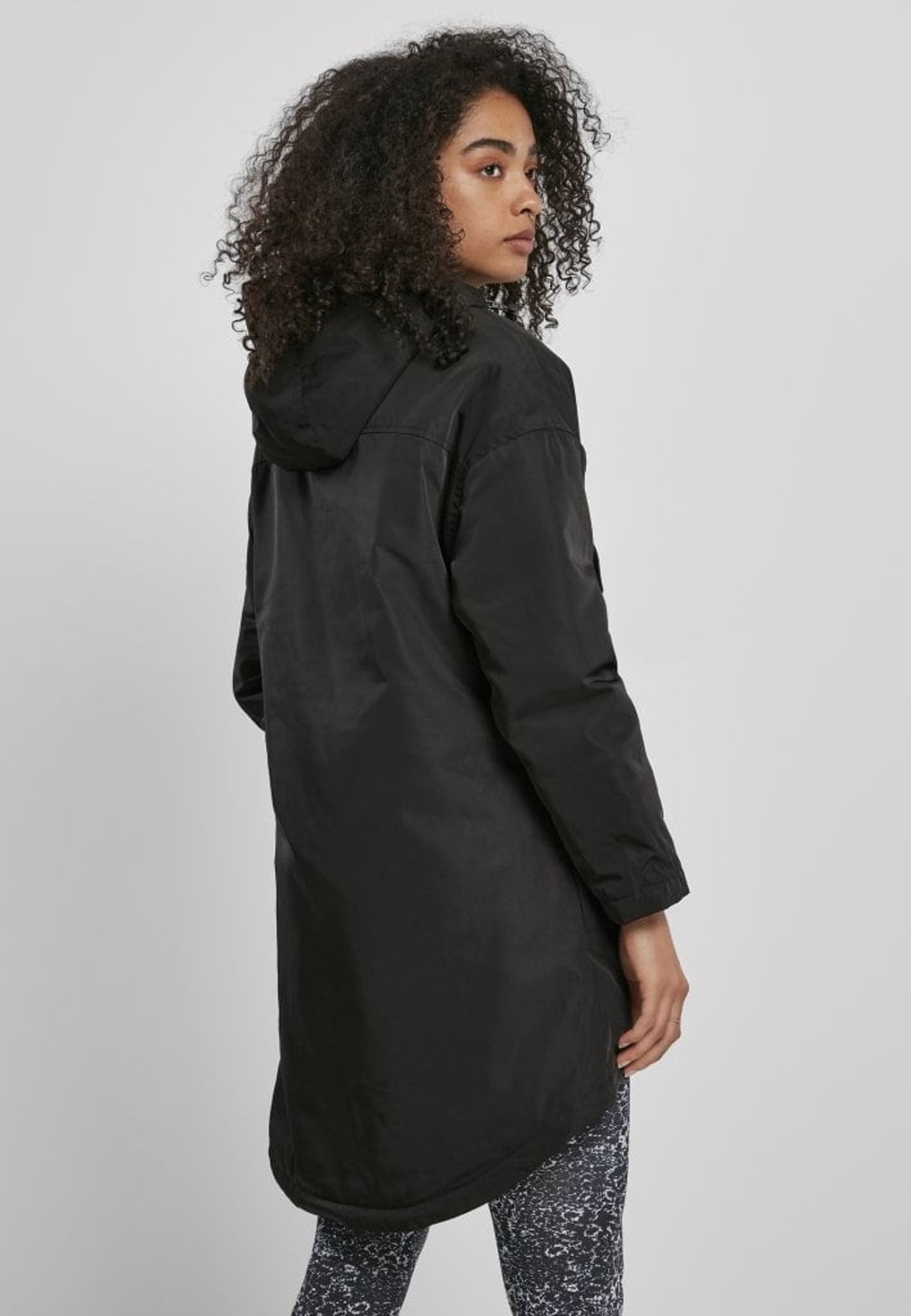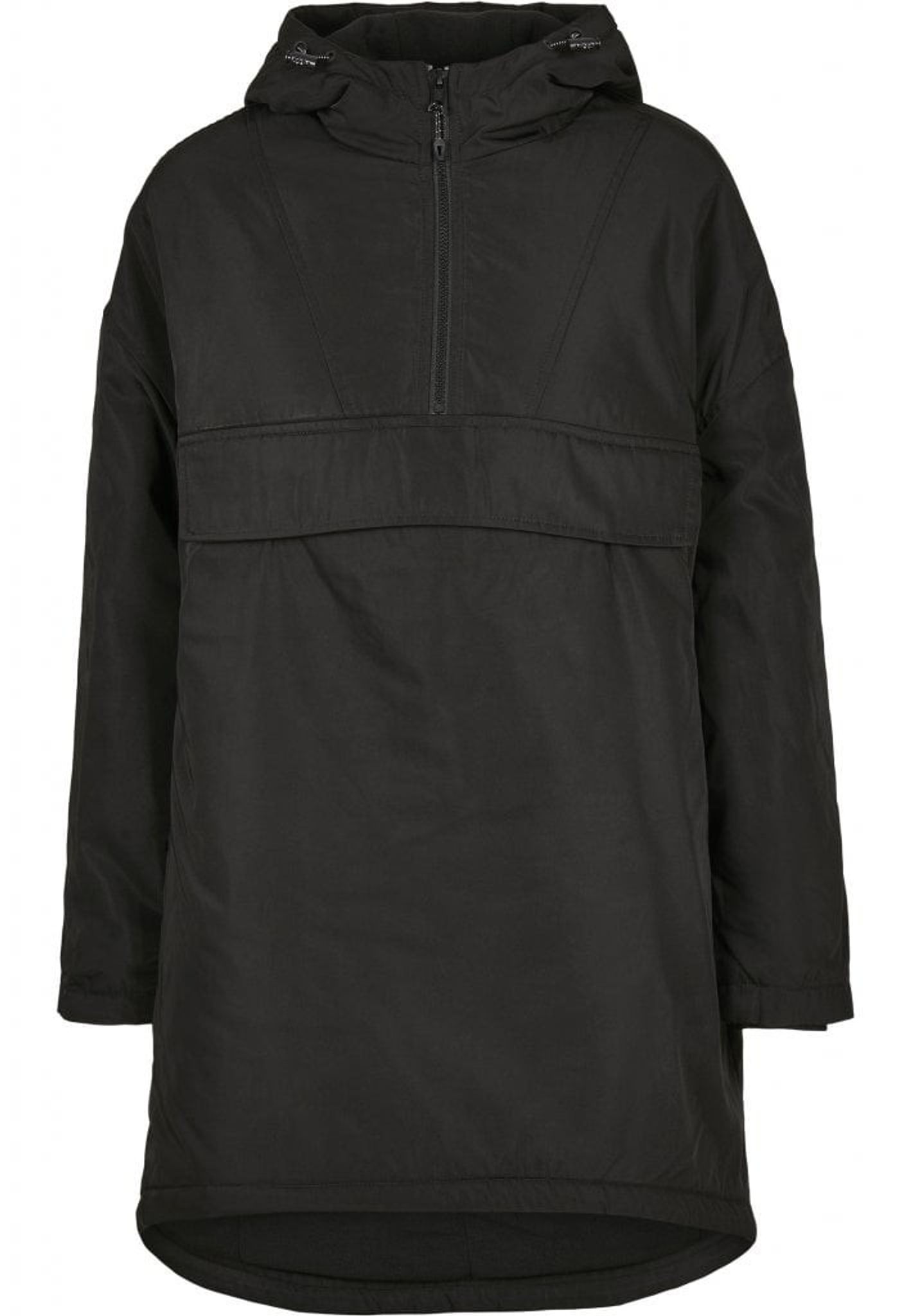 The jacket is lightly lined and has a drawstring both at the bottom and in the hood.