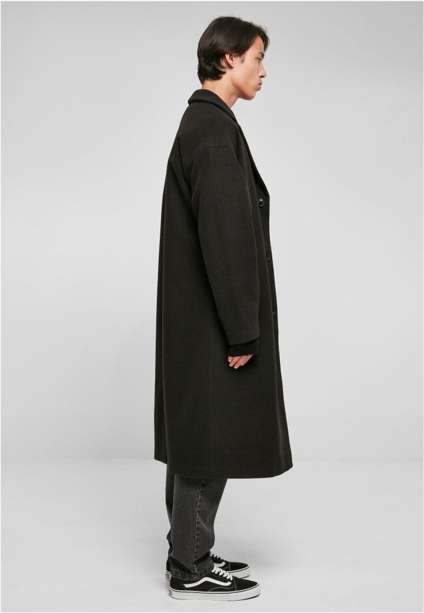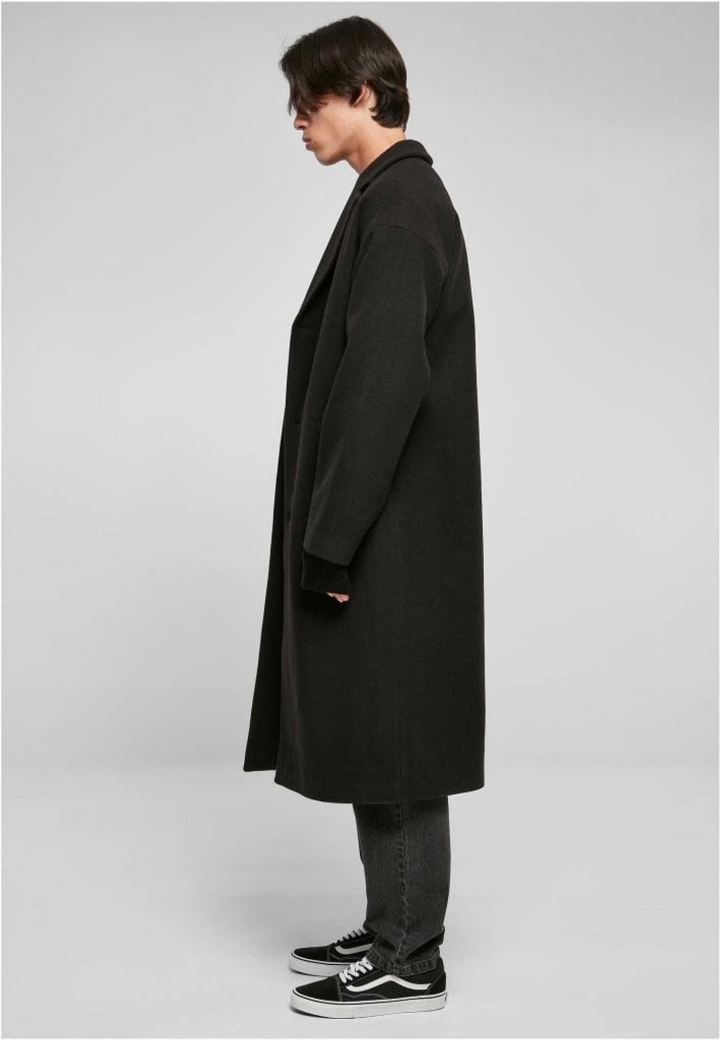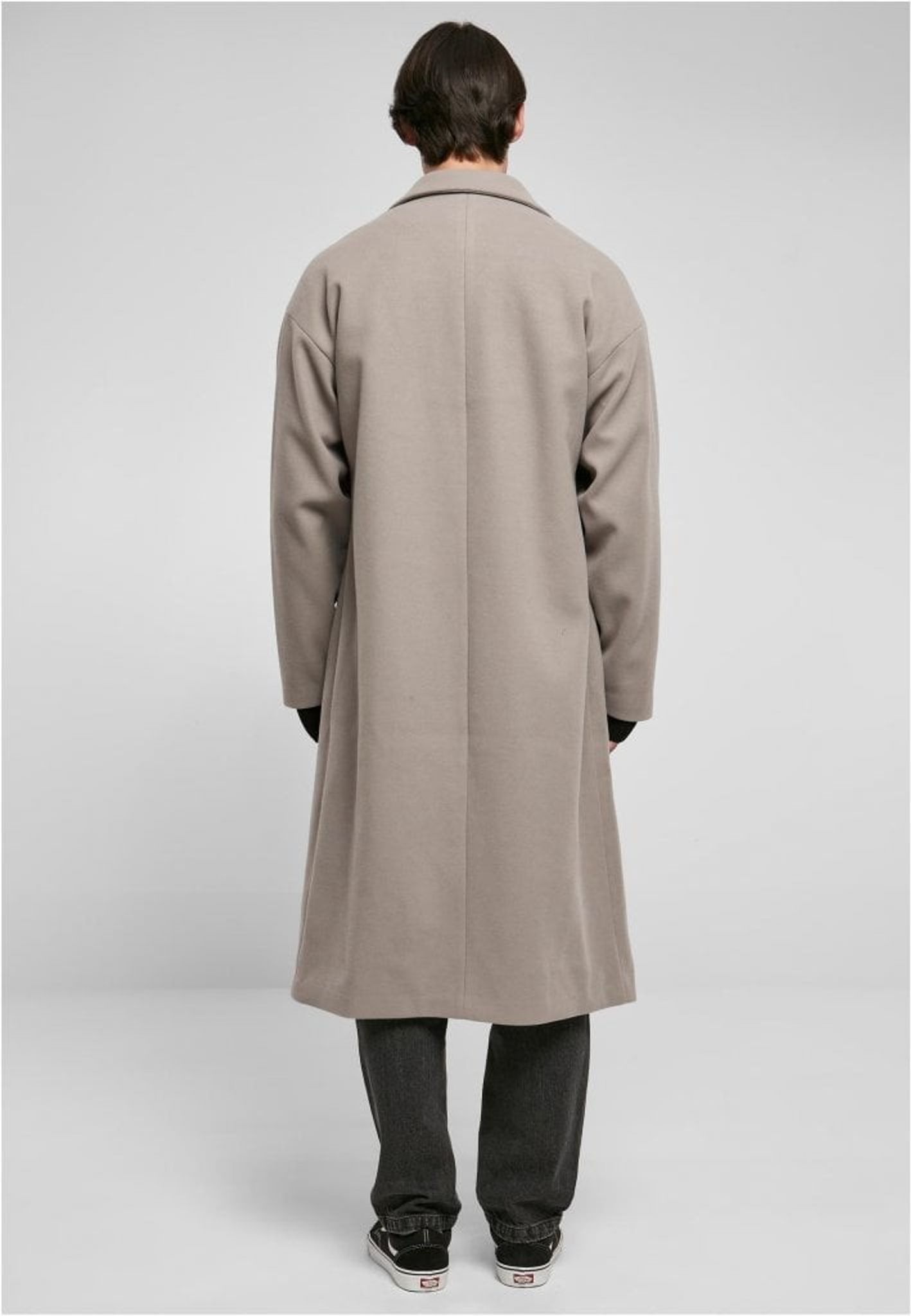 A long rock for men with a relaxed and oversize fit with heavily extended shoulders that give a modern touch to the otherwise classic look. In addition, it is provided with a large stroke. A pocket on the inside and two passport pockets on the outside complete the masculine look. The rock is lined with taffeta and reaches over your knees.