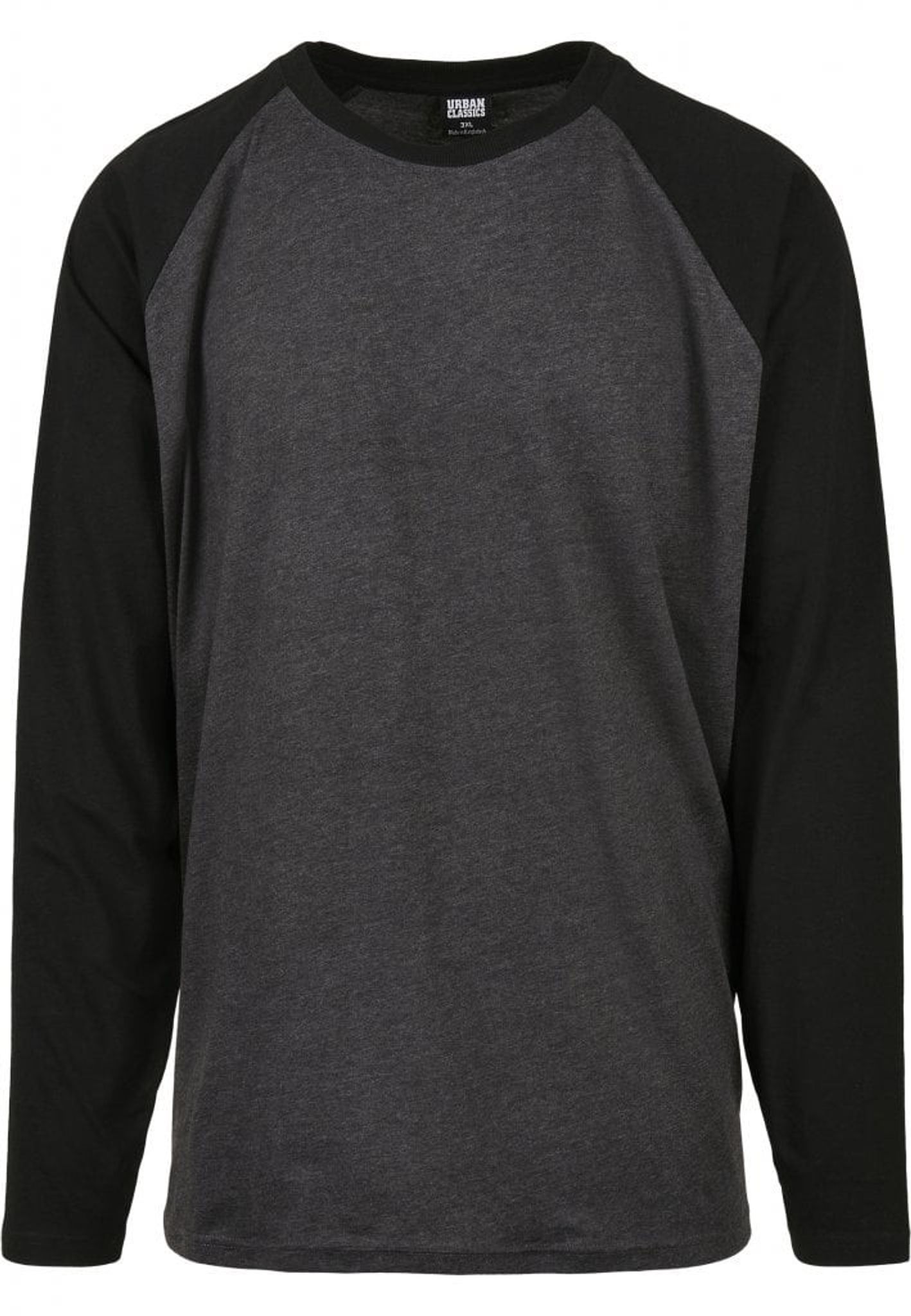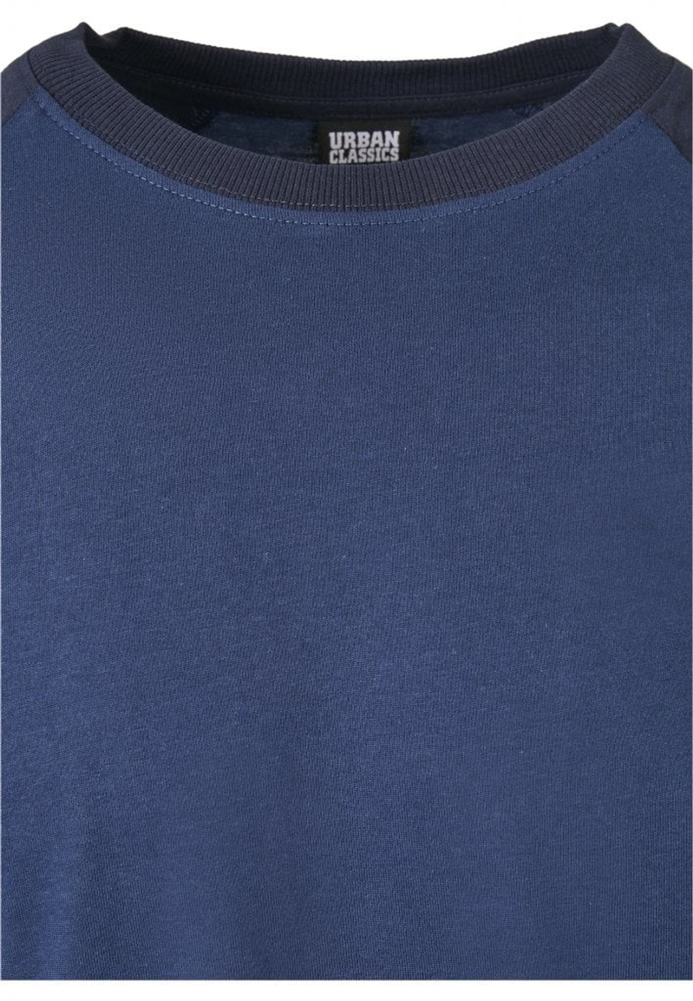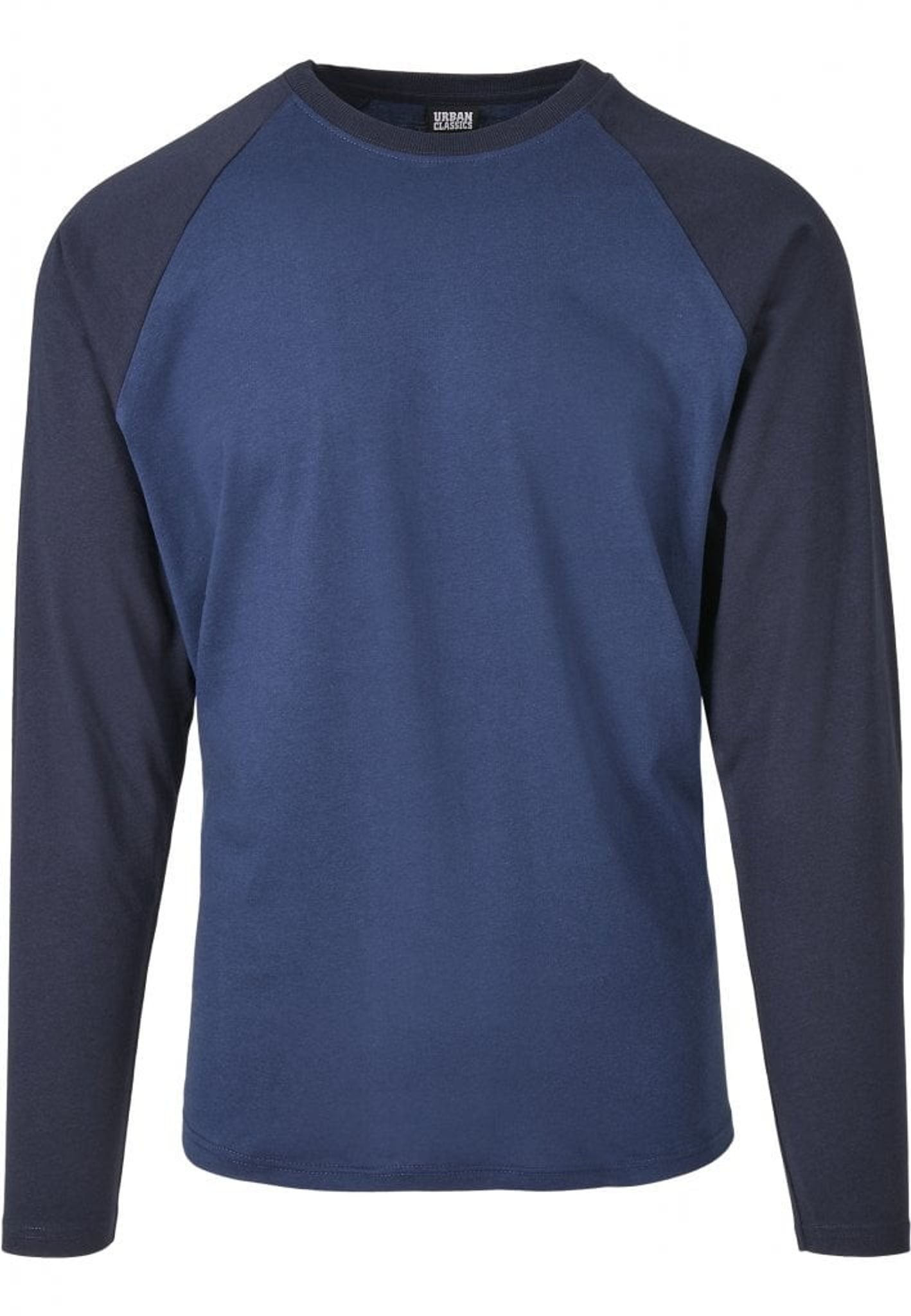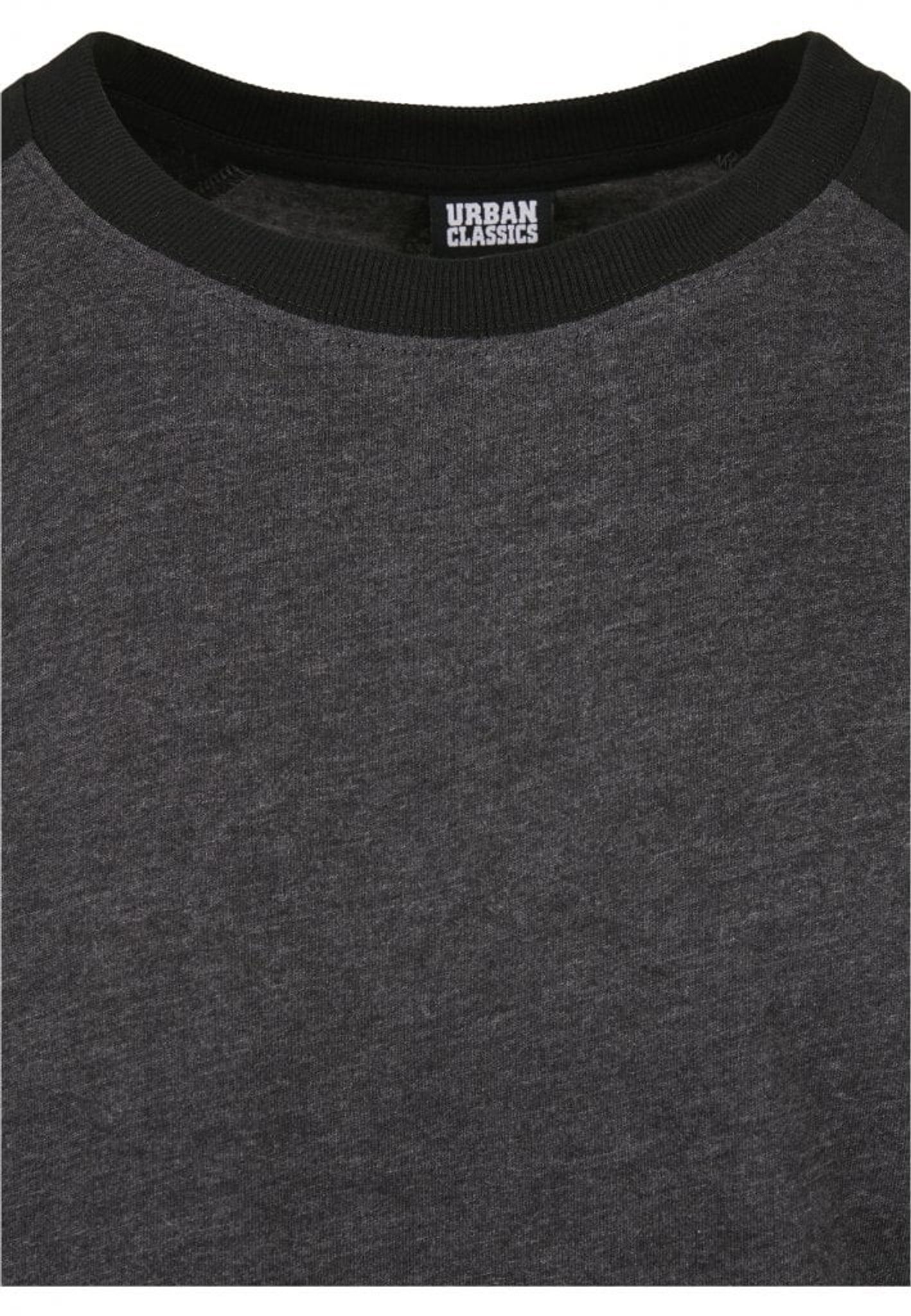 A sweater with a raglan arm and in two colors.